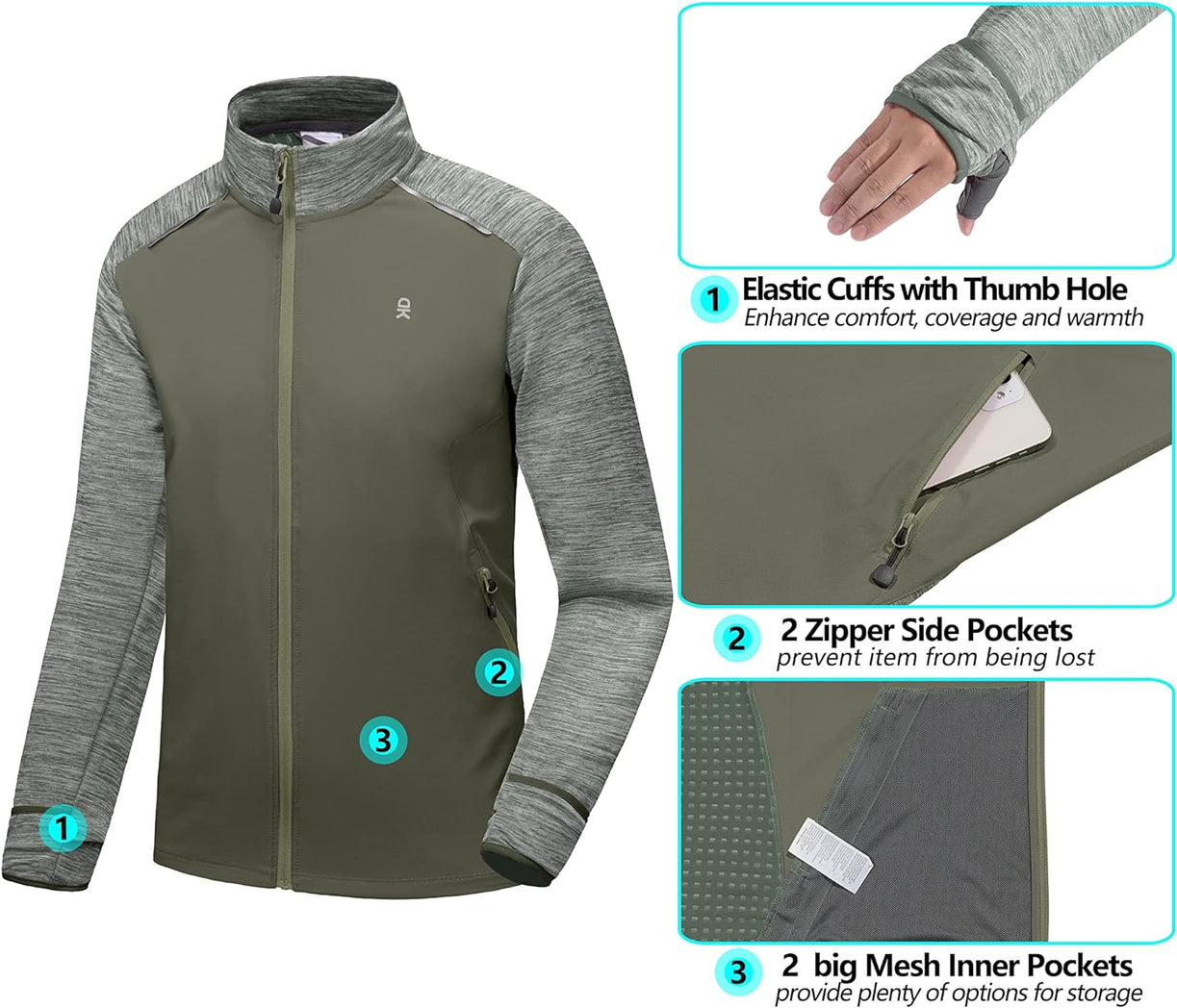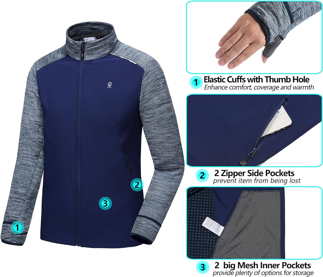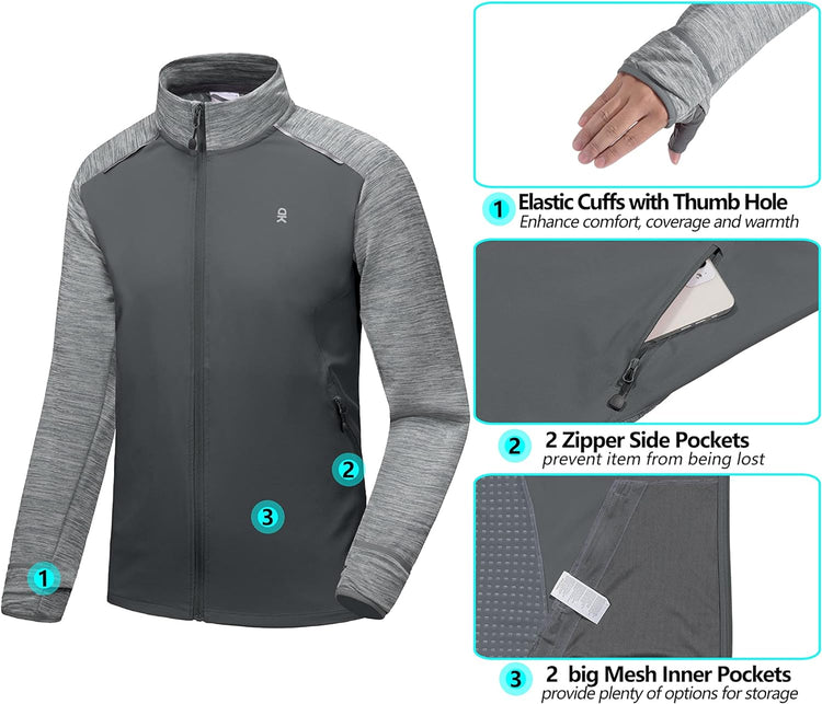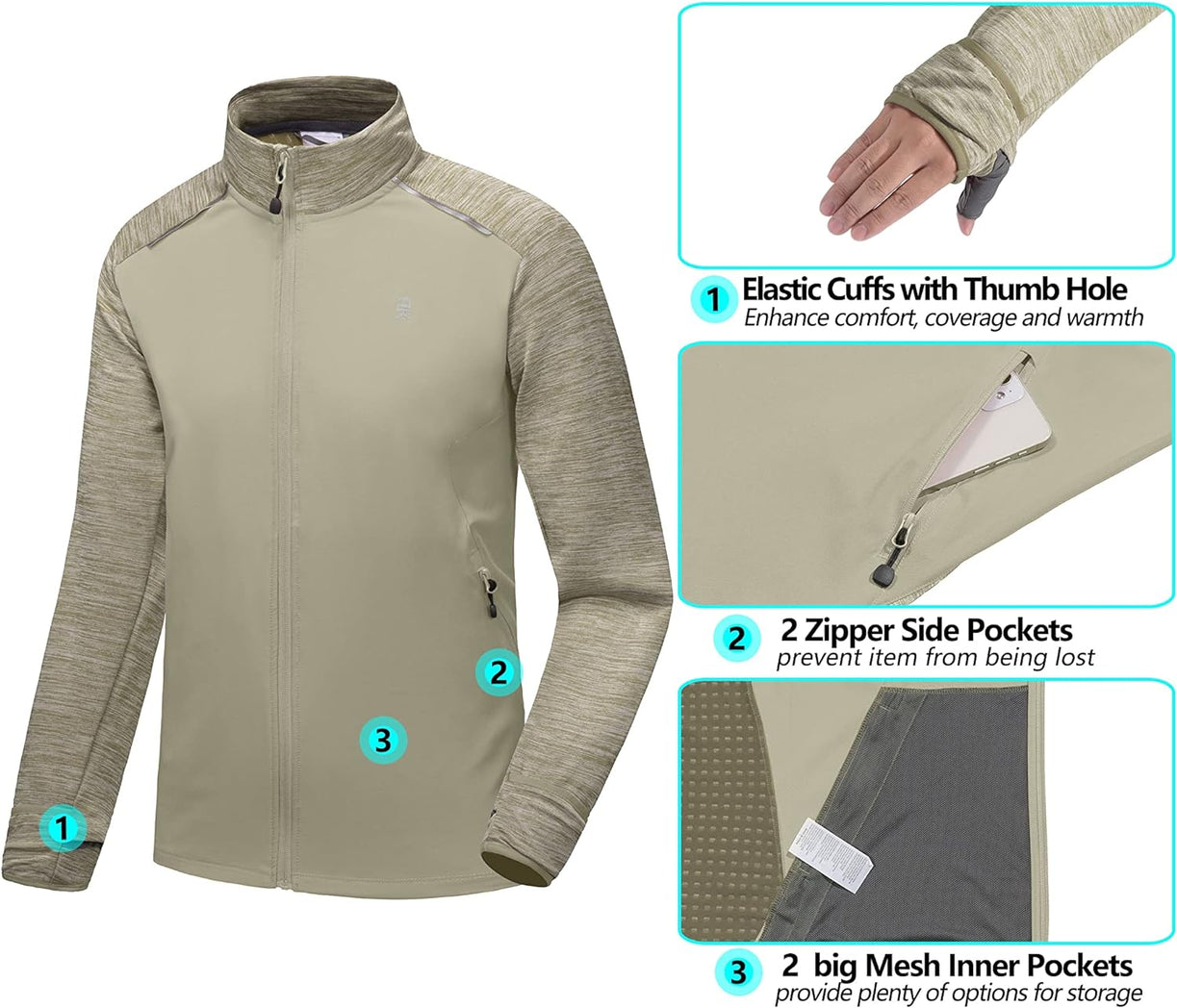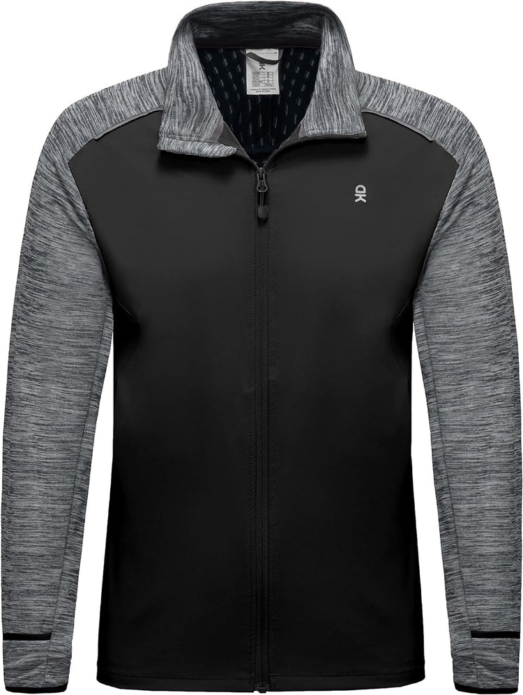 Little Donkey Andy Men's Quick Dry Warm Lightweight Running Jacket Full Zip Thermal Hybrid Thumbholes Golf Track Jacket