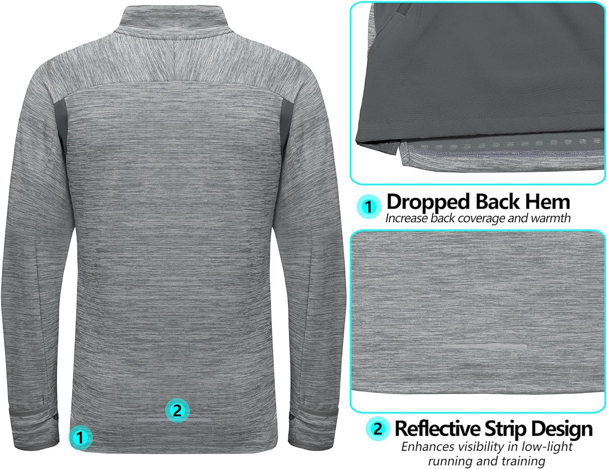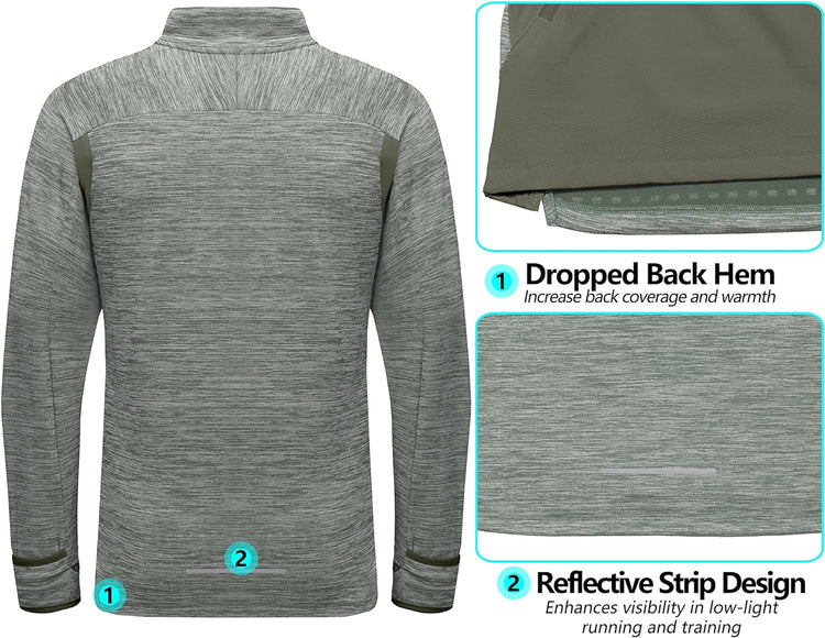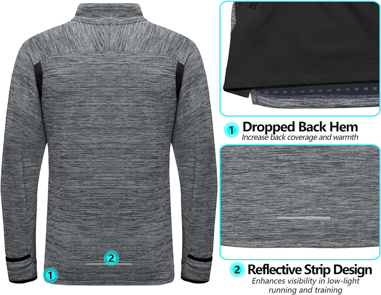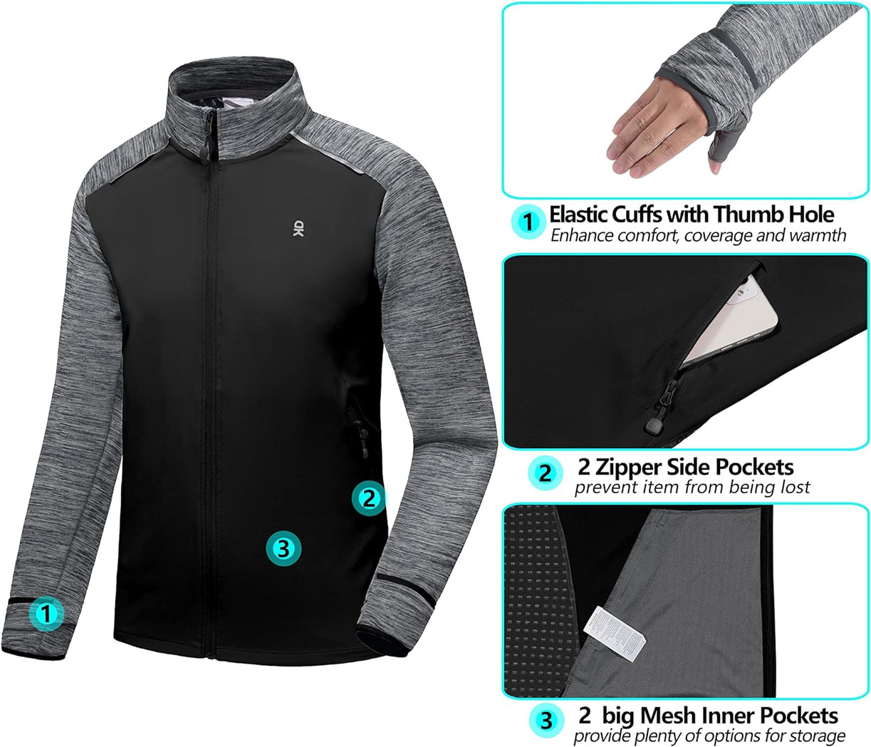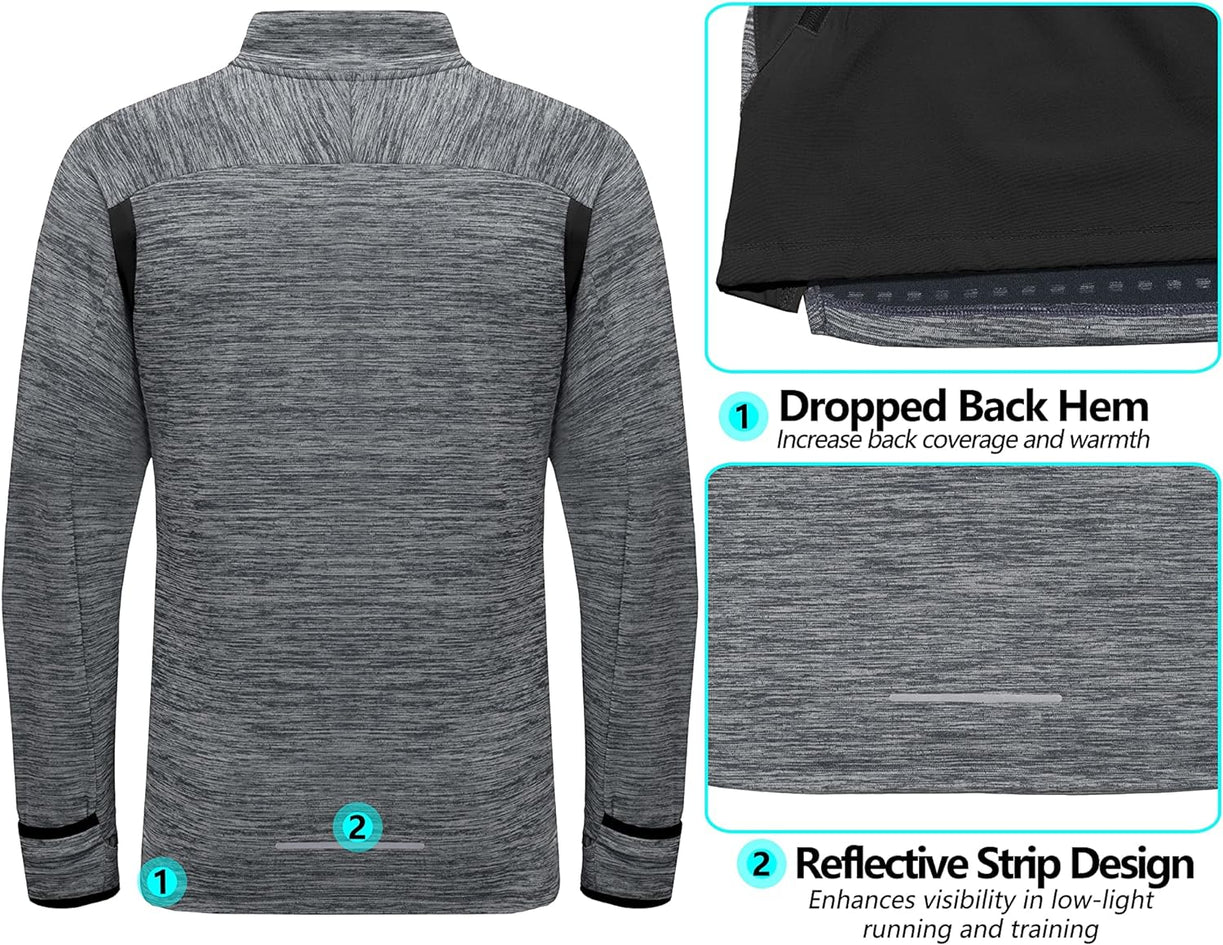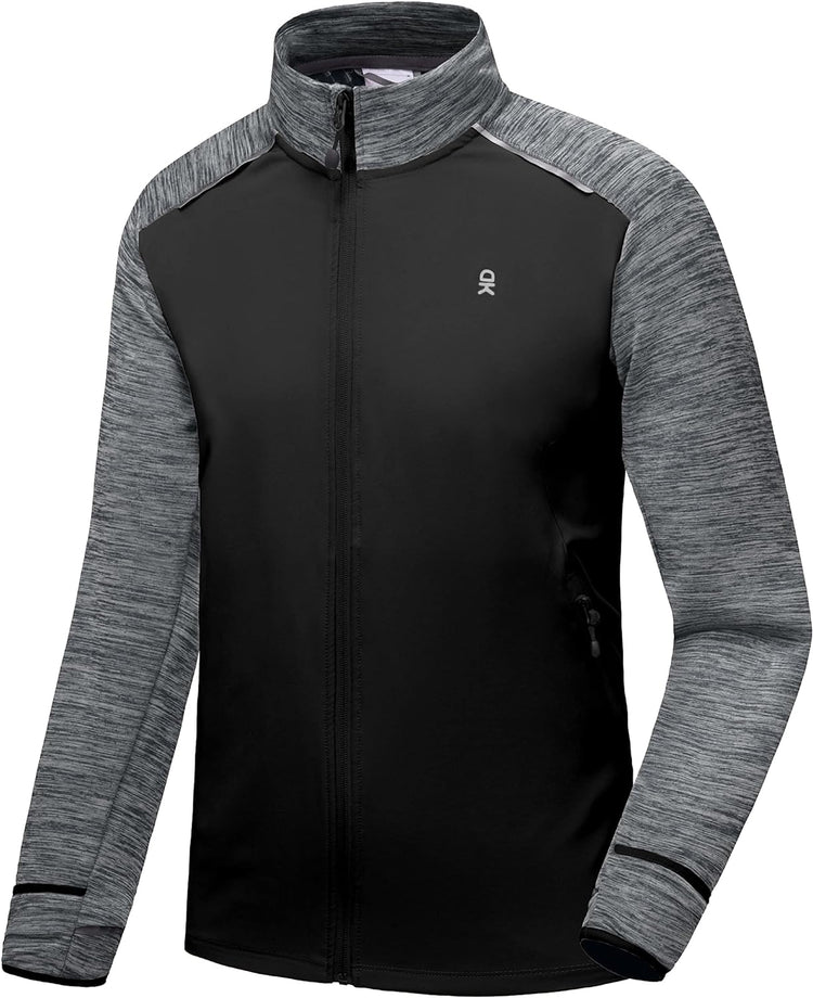 Little Donkey Andy Men's Quick Dry Warm Lightweight Running Jacket Full Zip Thermal Hybrid Thumbholes Golf Track Jacket