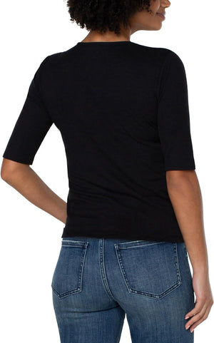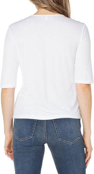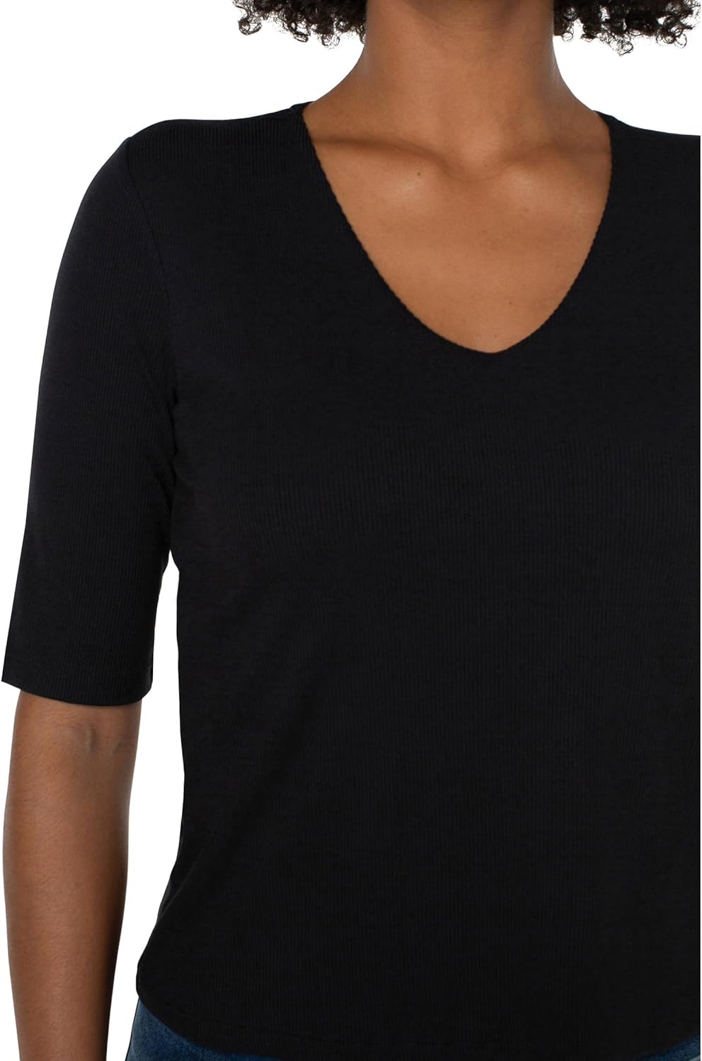 Liverpool Women's Double Layer V-Neck 1/2 Sleeve Rib Knit Top