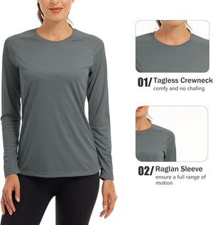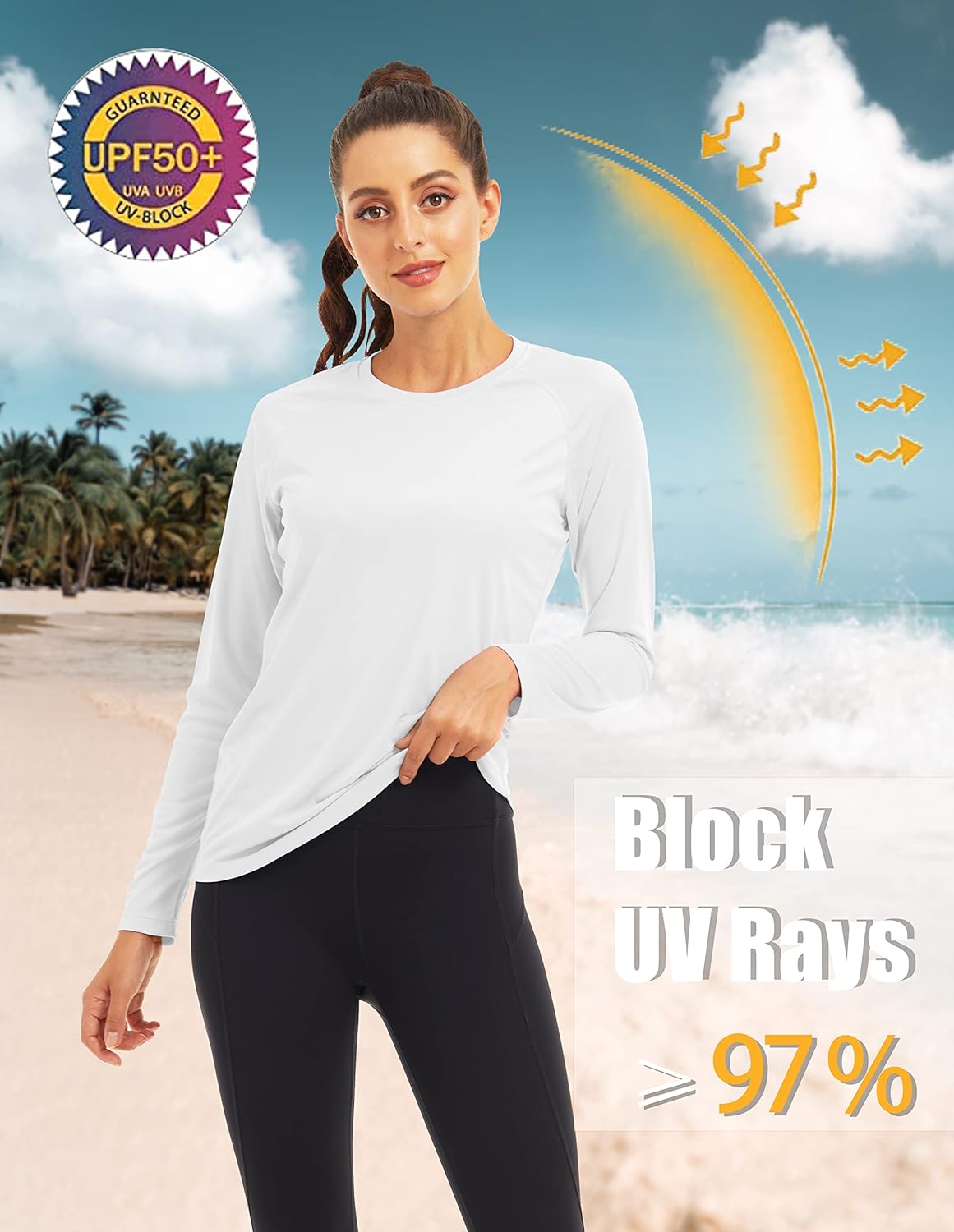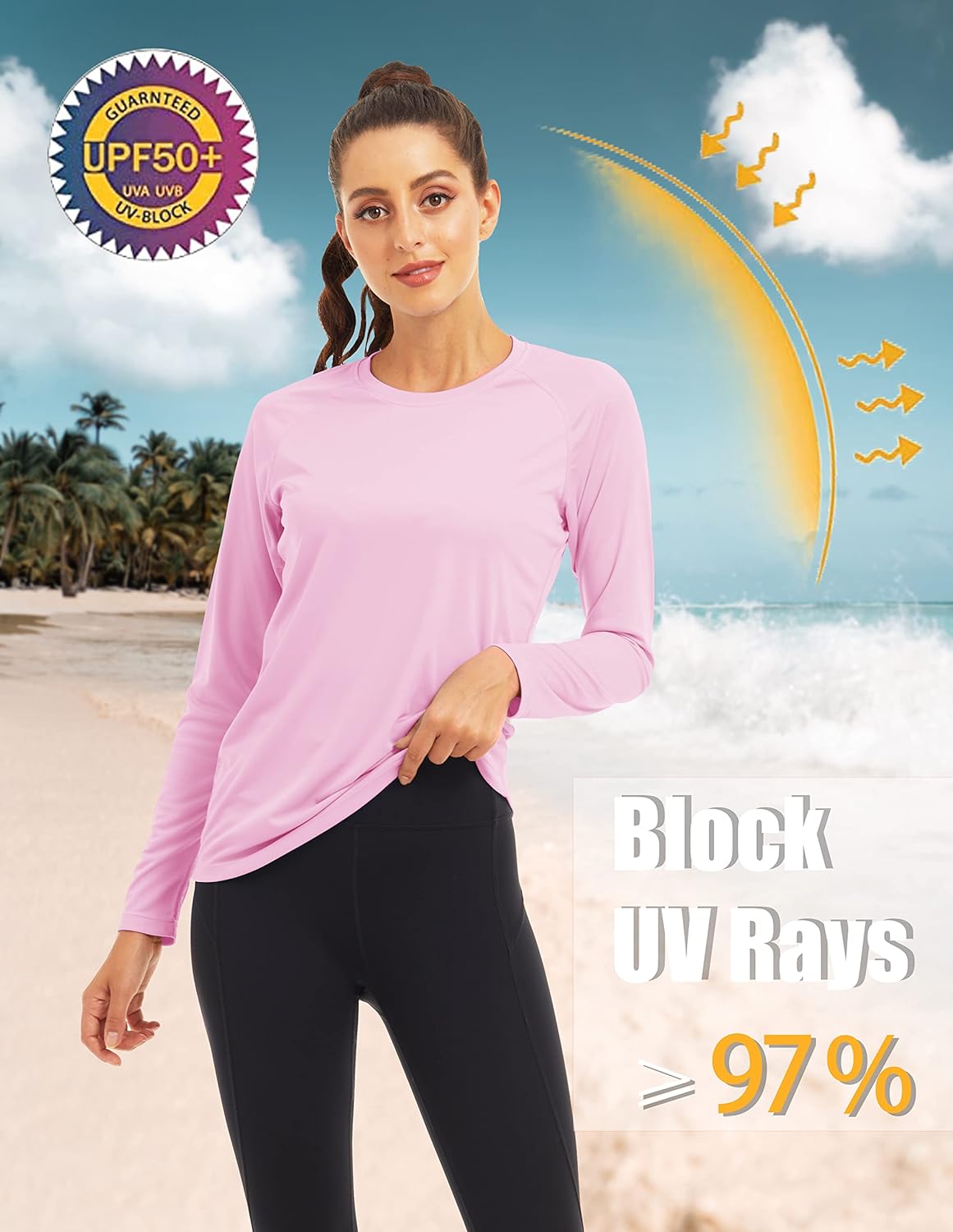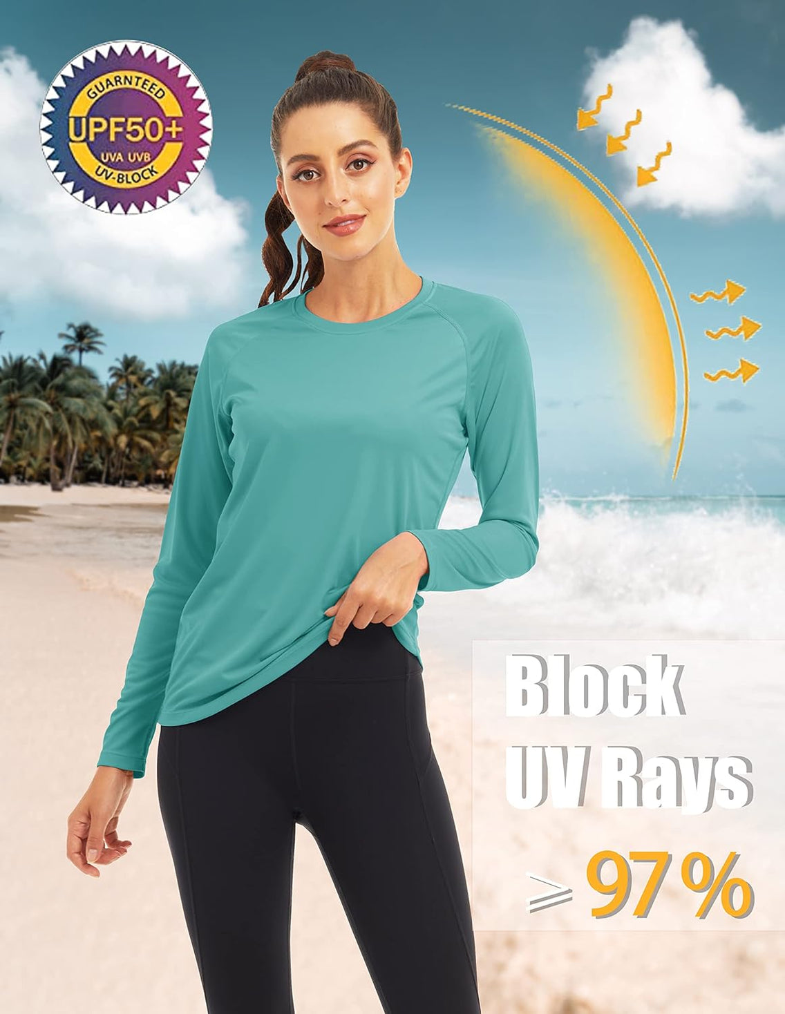MAGCOMSEN Women's Long Sleeve Shirts UPF 50+ Sun Protection Shirts for Hiking Fishing Workout Rash Guard