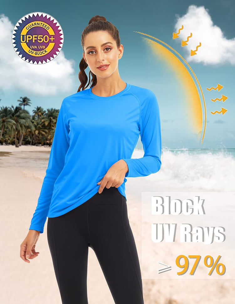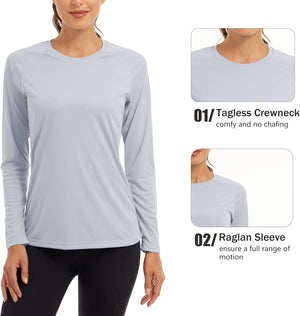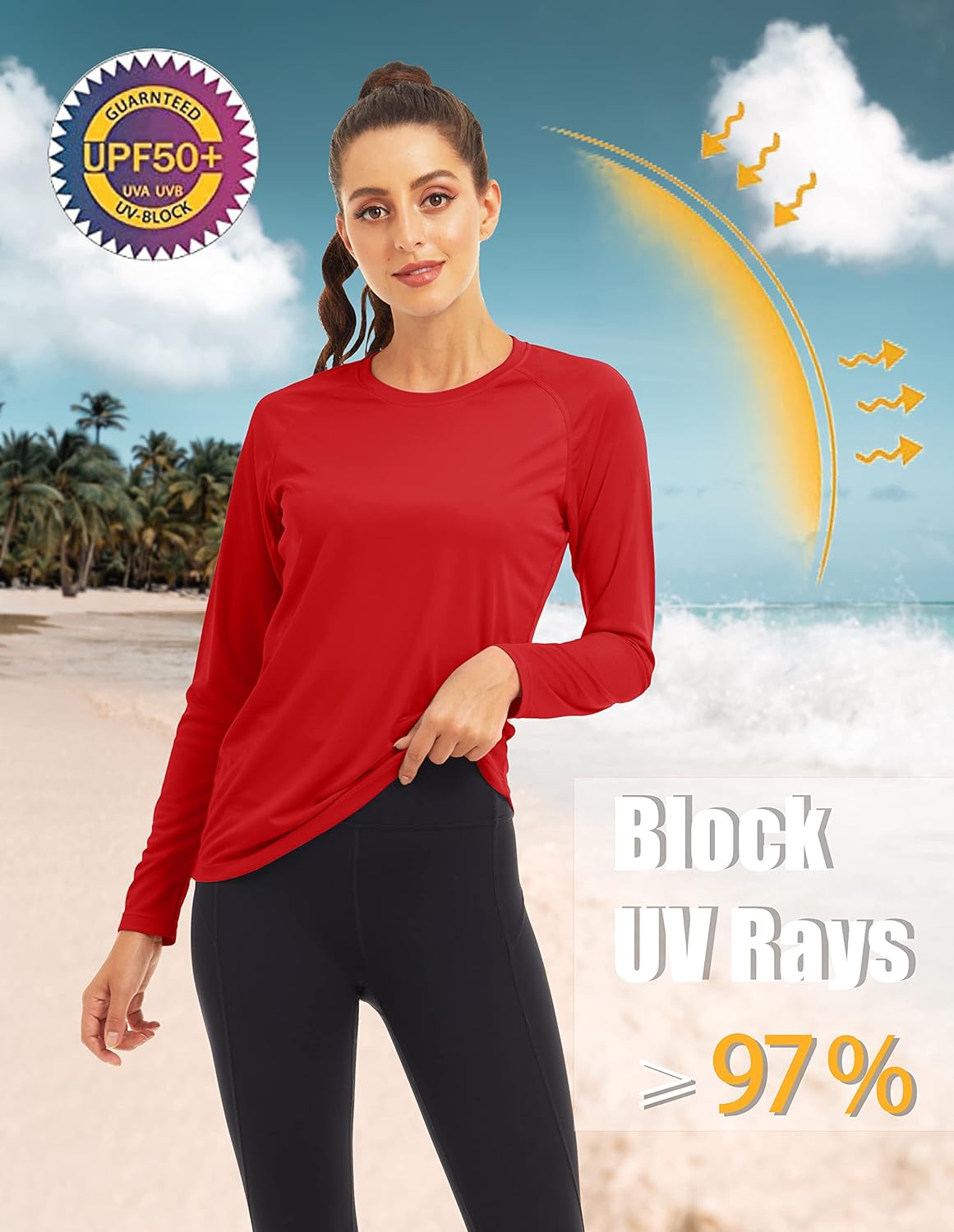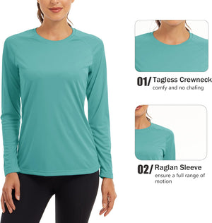 MAGCOMSEN Women's Long Sleeve Shirts UPF 50+ Sun Protection Shirts for Hiking Fishing Workout Rash Guard