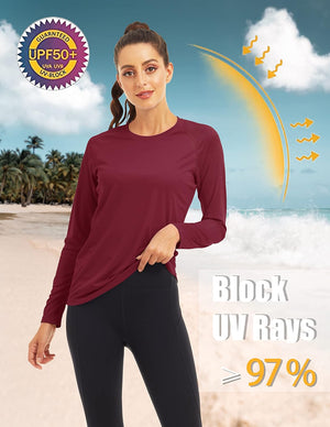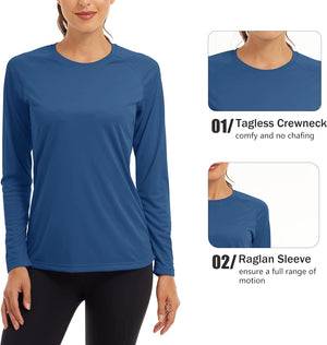 MAGCOMSEN Women's Long Sleeve Shirts UPF 50+ Sun Protection Shirts for Hiking Fishing Workout Rash Guard