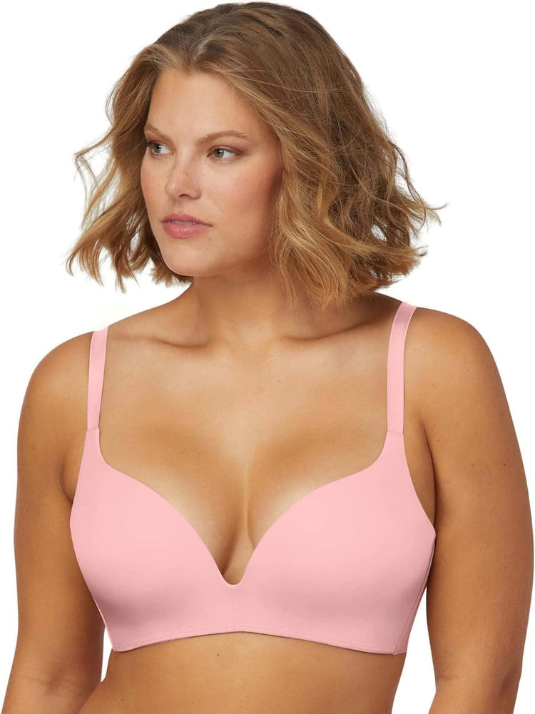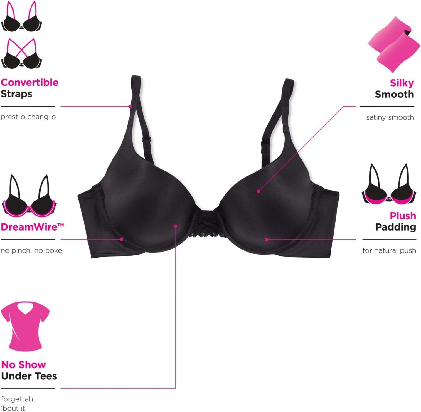This no-poke underwire push-up bra delivers the shapely push-up support you want without the poking or pinching you don't. It's all done with our cushioned Dreamwire™ technology that encases the underwires between plush foam and soft outer fabric for unmatched underwire comfort. Satiny cups provide no-show smoothness under tees and other knits, with a touch of feminine lace at the center. Plus, it offers convertible convenience, transforming from traditional straight straps to crisscross wear in an instant. Available in sizes for everyone – 32A to 40D – we think you'll agree that this comfy Dreamwire style is, well, dreamy.