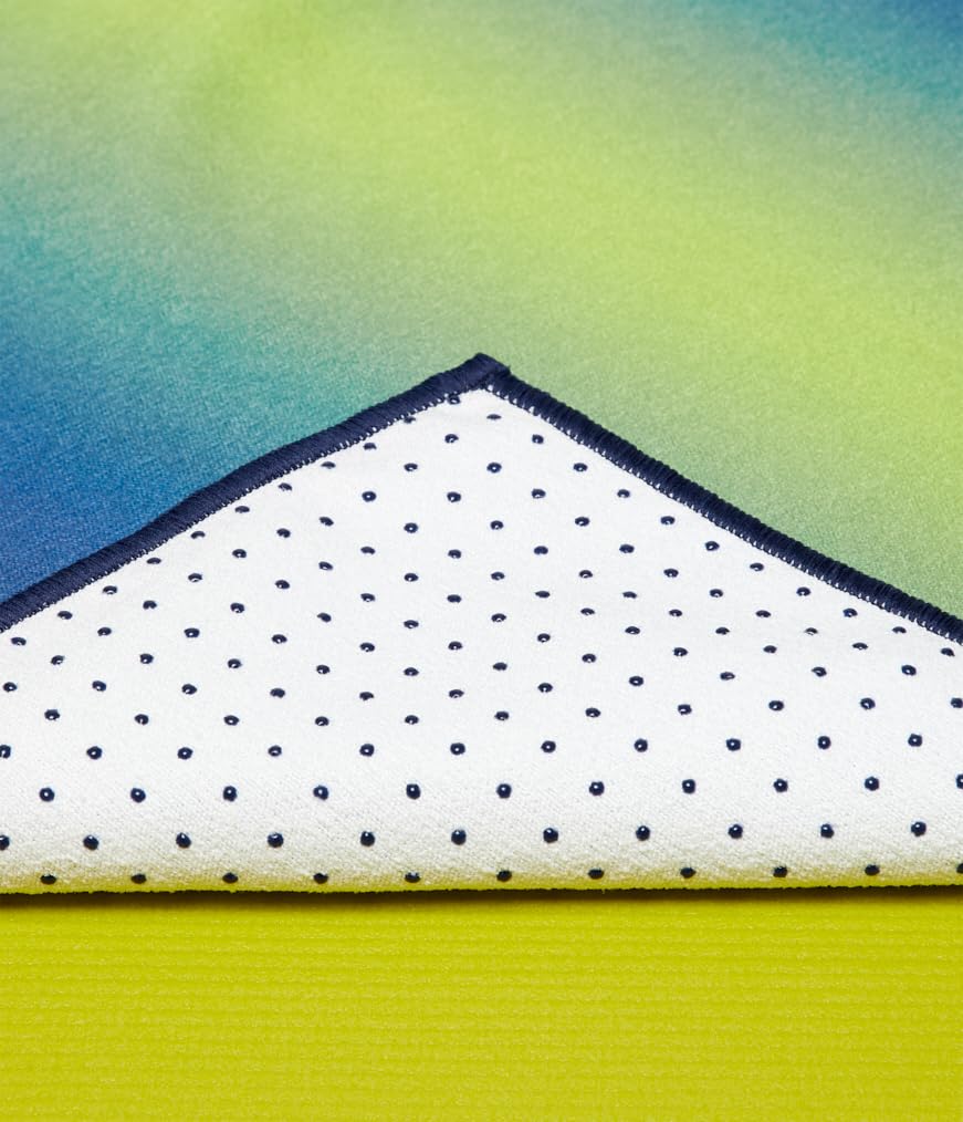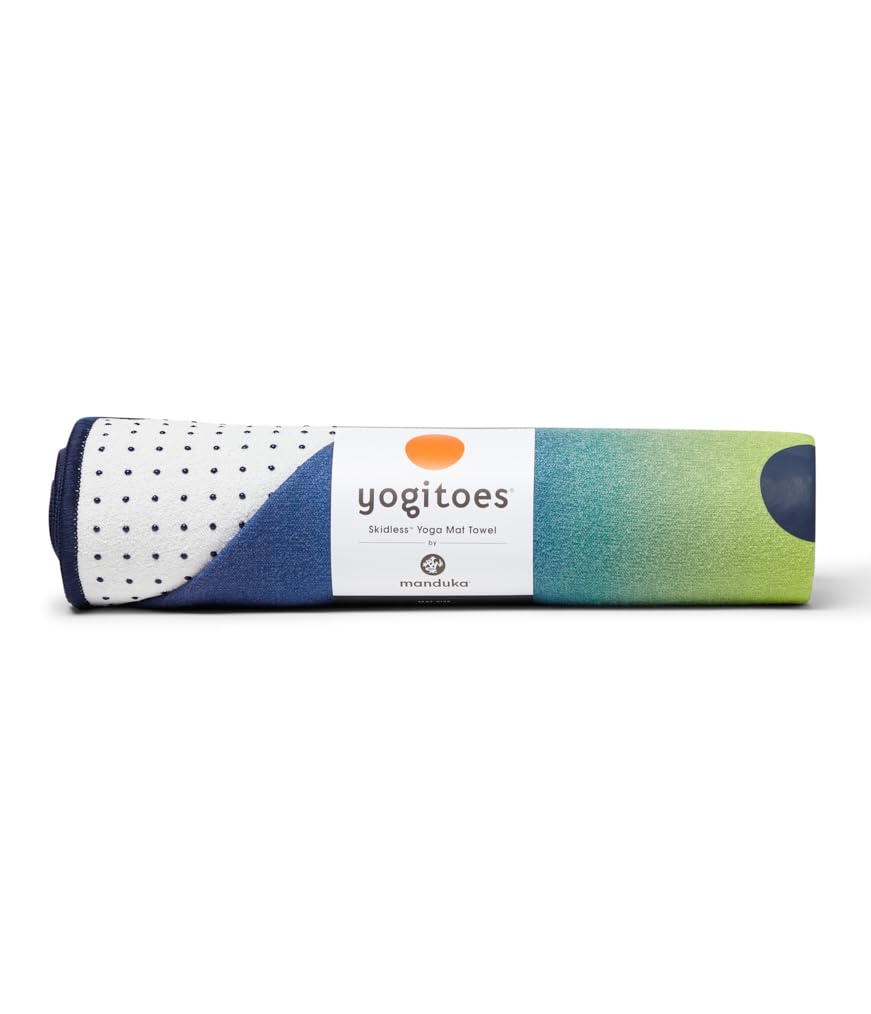 The manduka Yogitoes Skidless Towels are durable enough to take anywhere: the beach, the gym, Pilates or traveling. Ideal for hot yoga or any super sweaty practice, utilizing silicone nubs to grip your mat and keep you in place. Ideal for hot yoga: highly absorbent, non-slip + sweat wicking. Sustainable, soft, hygienic, and absorbent. Grips mat with patented Skidless Technology that uses 100% silicone nubs. Made from 4+ recycled plastic water bottles. All dyes are free of AZO, lead, and heavy-metals. 30% recycled polyester, 60% polyester, 10% nylon. Machine wash, tumble dry.