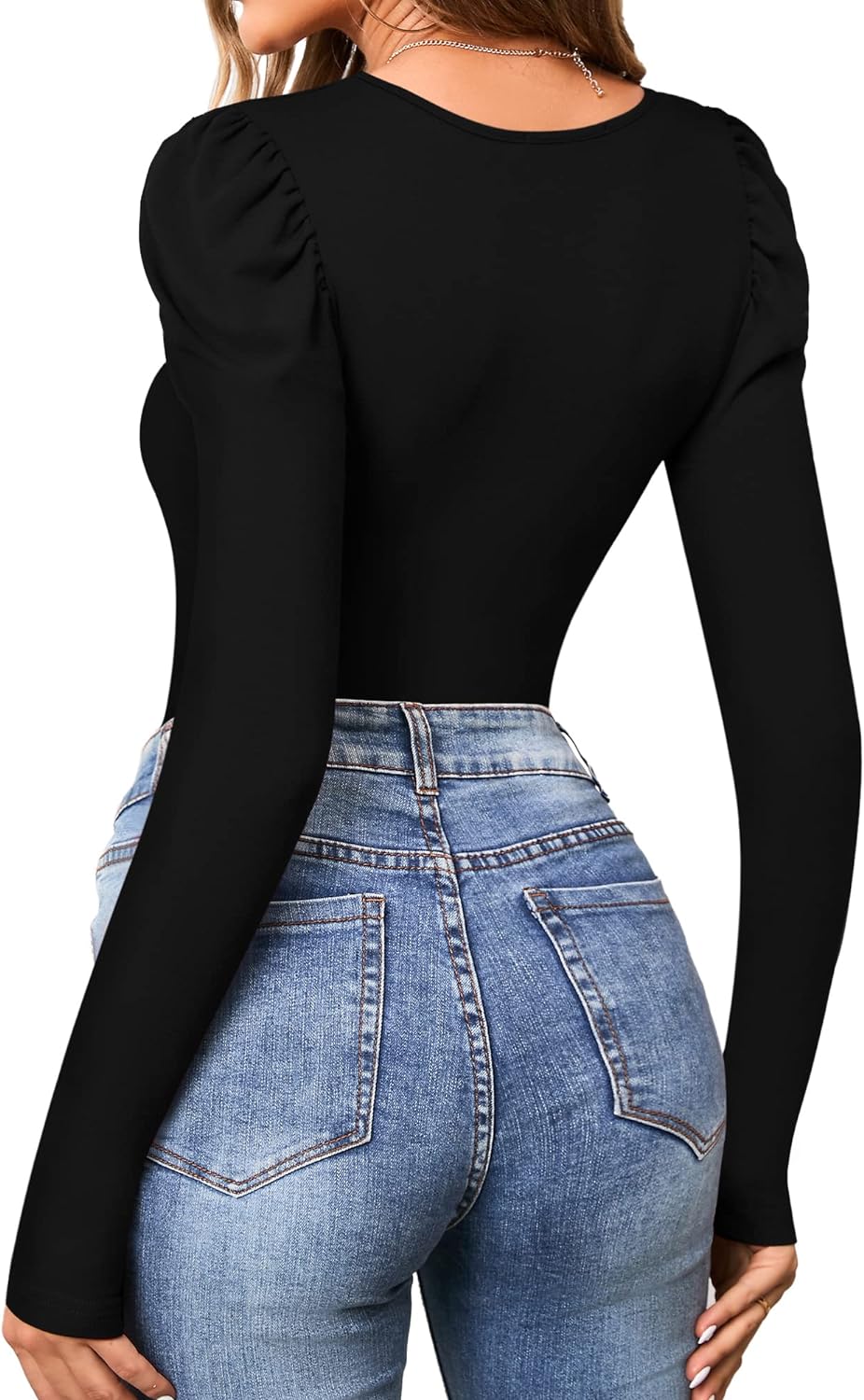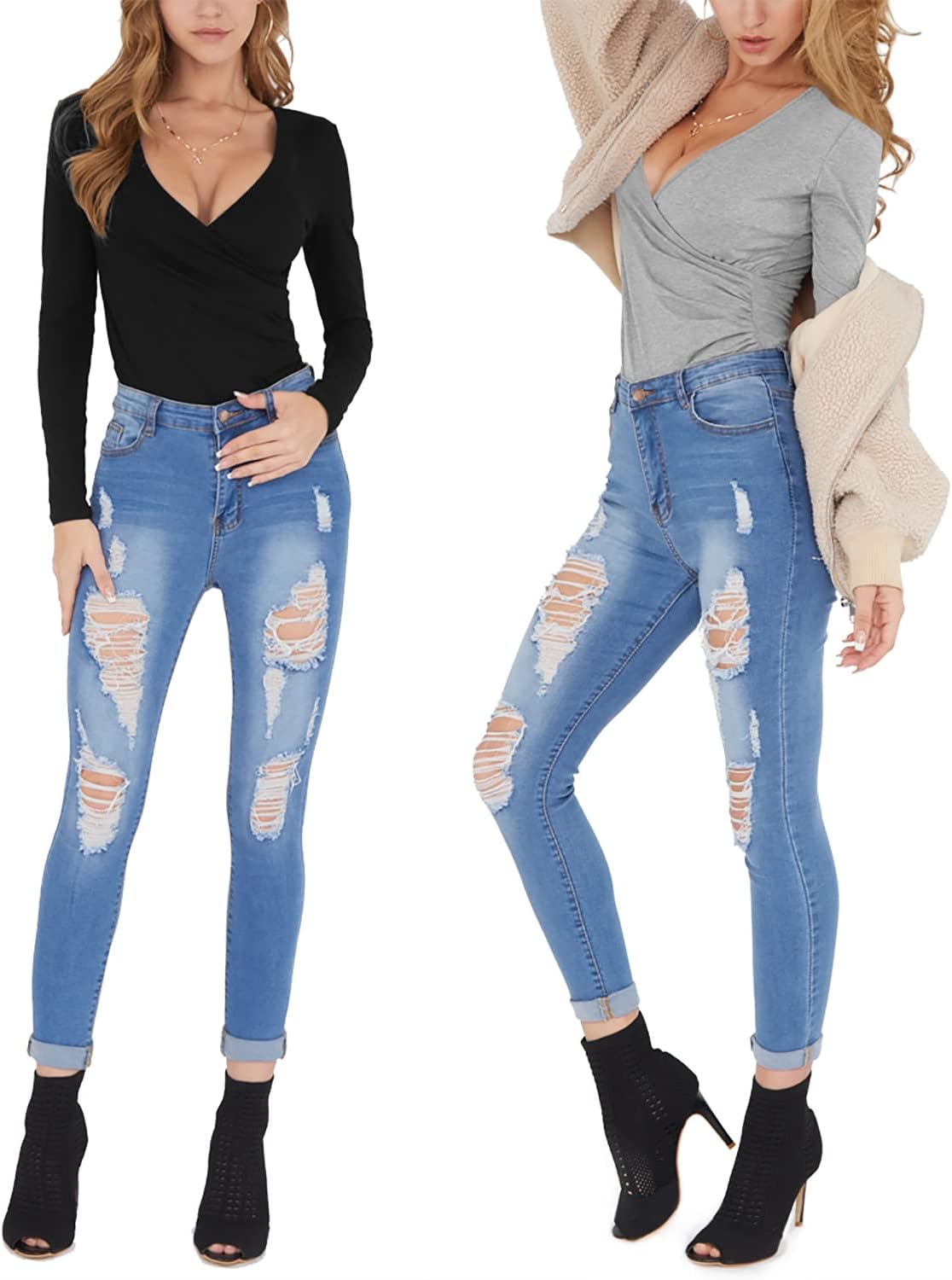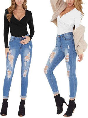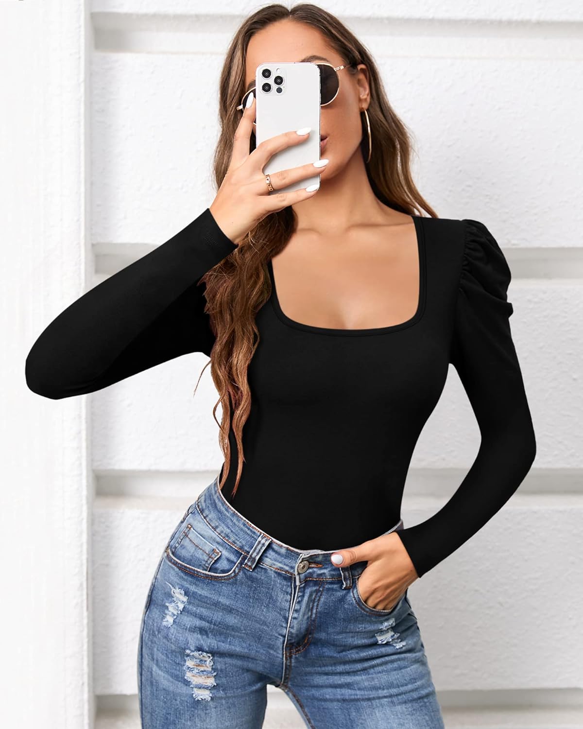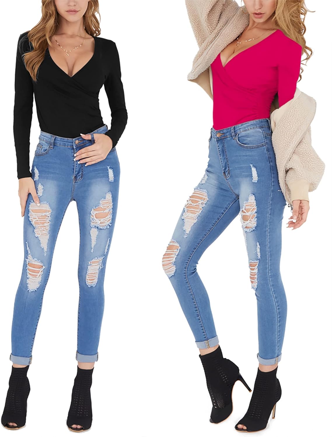 MANGOPOP Women's Cross Wrap Ruched Plunge Neck Deep V Long Sleeve Short Sleeve Bodysuits