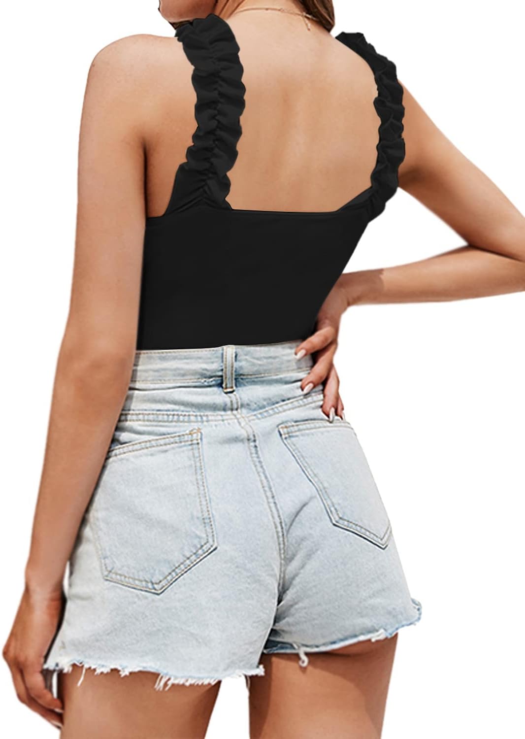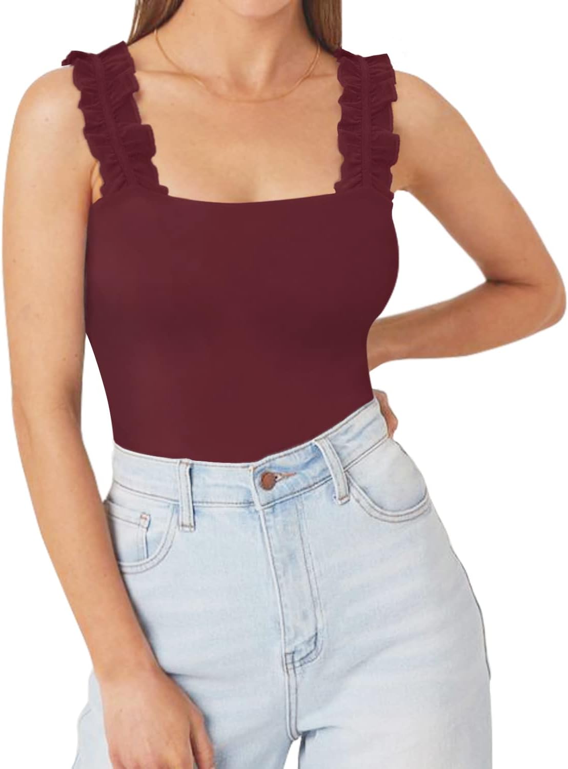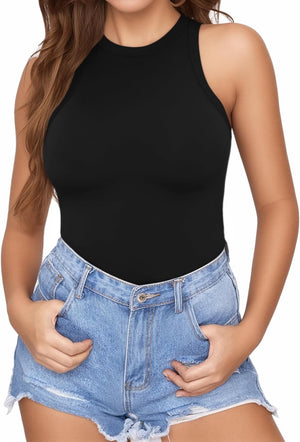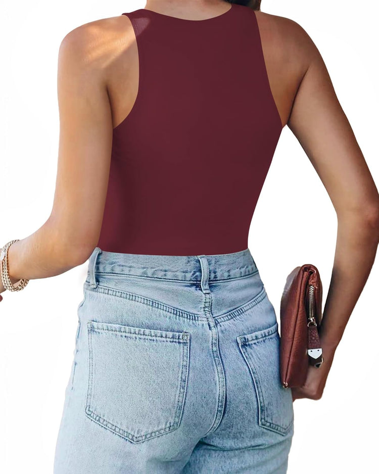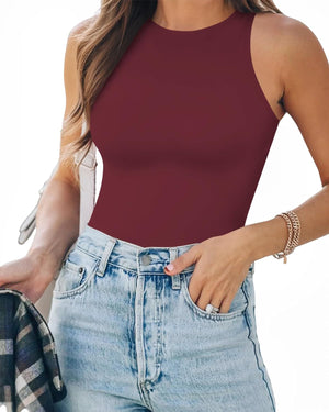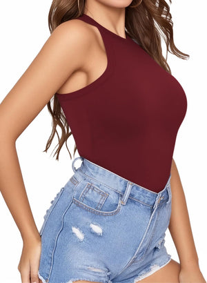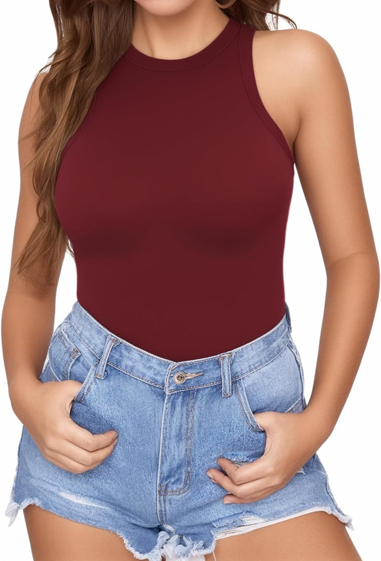 MANGOPOP Women's Scoop Neck / V Neck / Halter Racerback Tank Top Bodysuits Jumpsuits