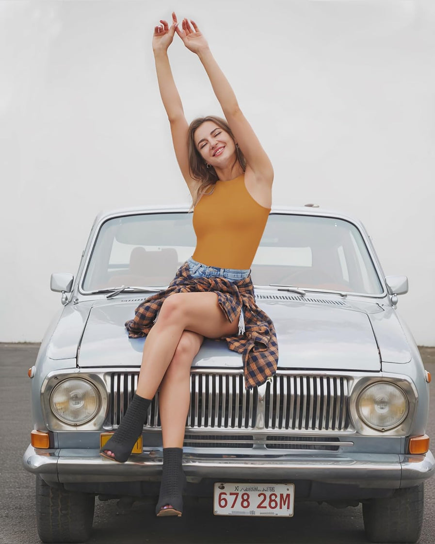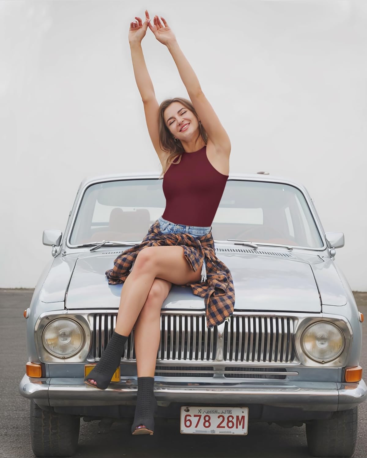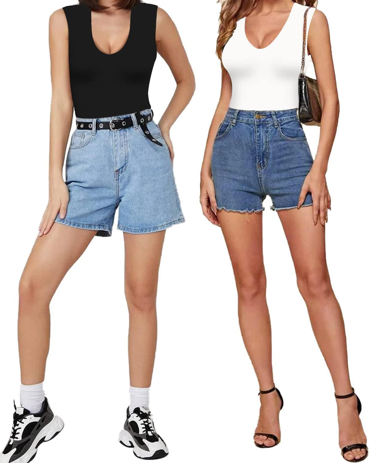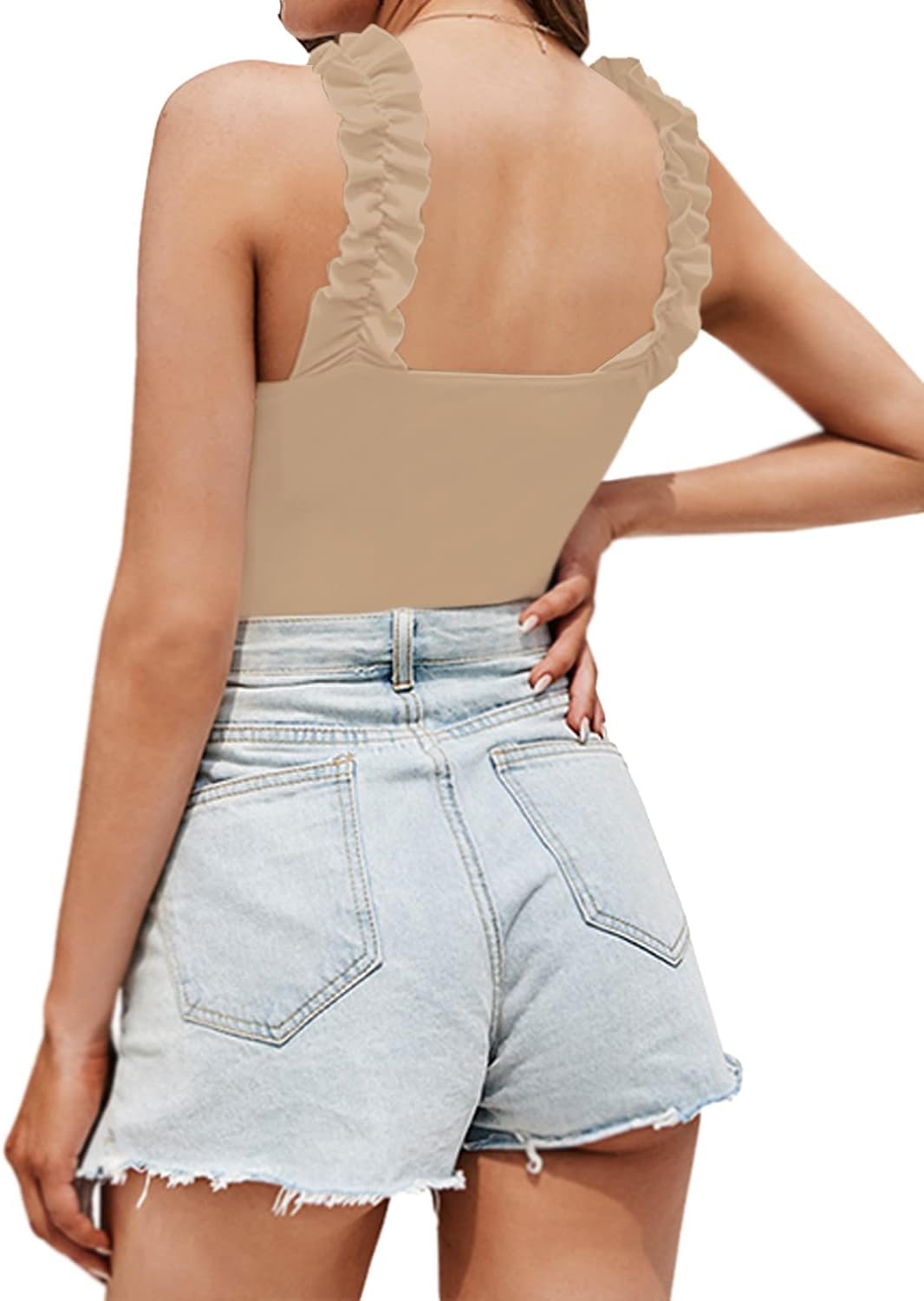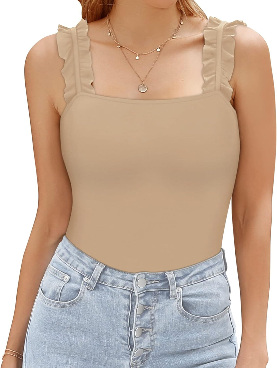 MANGOPOP Women's Scoop Neck / V Neck / Halter Racerback Tank Top Bodysuits Jumpsuits