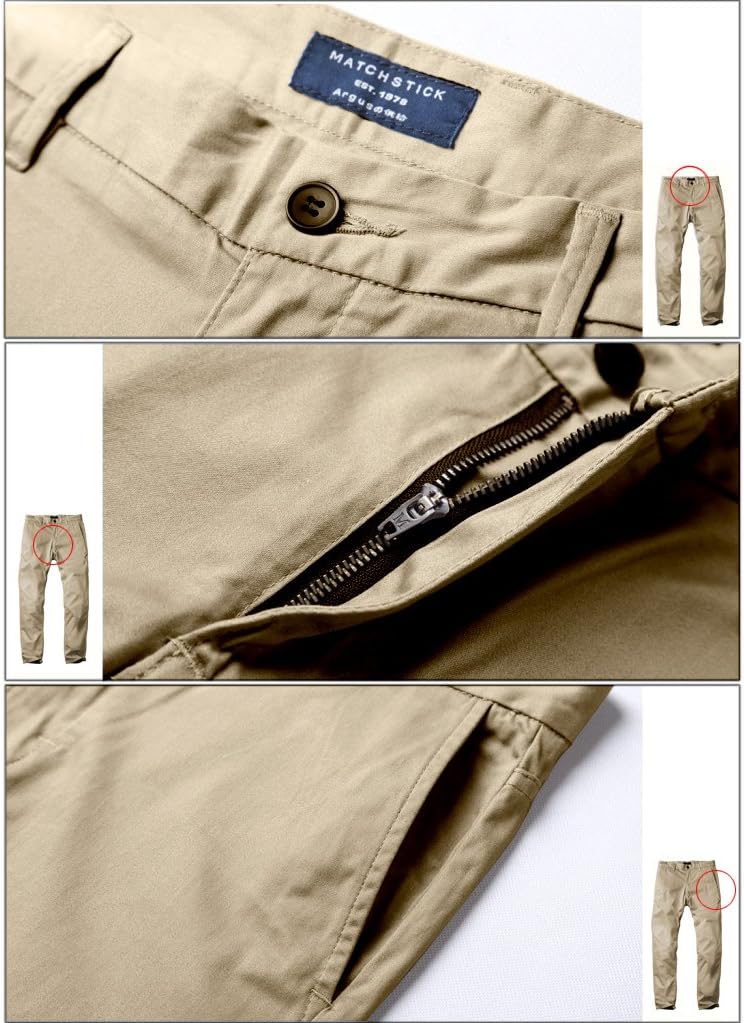 Match garments men's breathable chino pants is designed with straight leg cutting & dual stitch details, which will be the most comfortable and durable pants you'll ever wear. Must-have style for work&casual wear in spring and autumn.