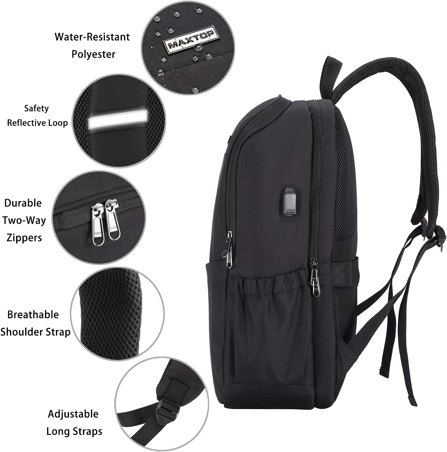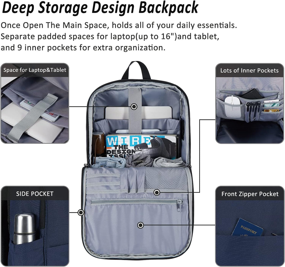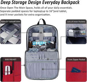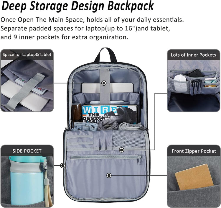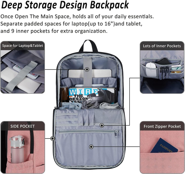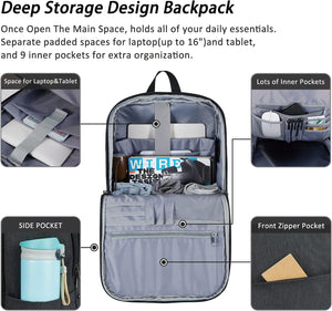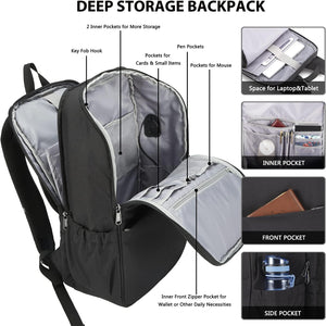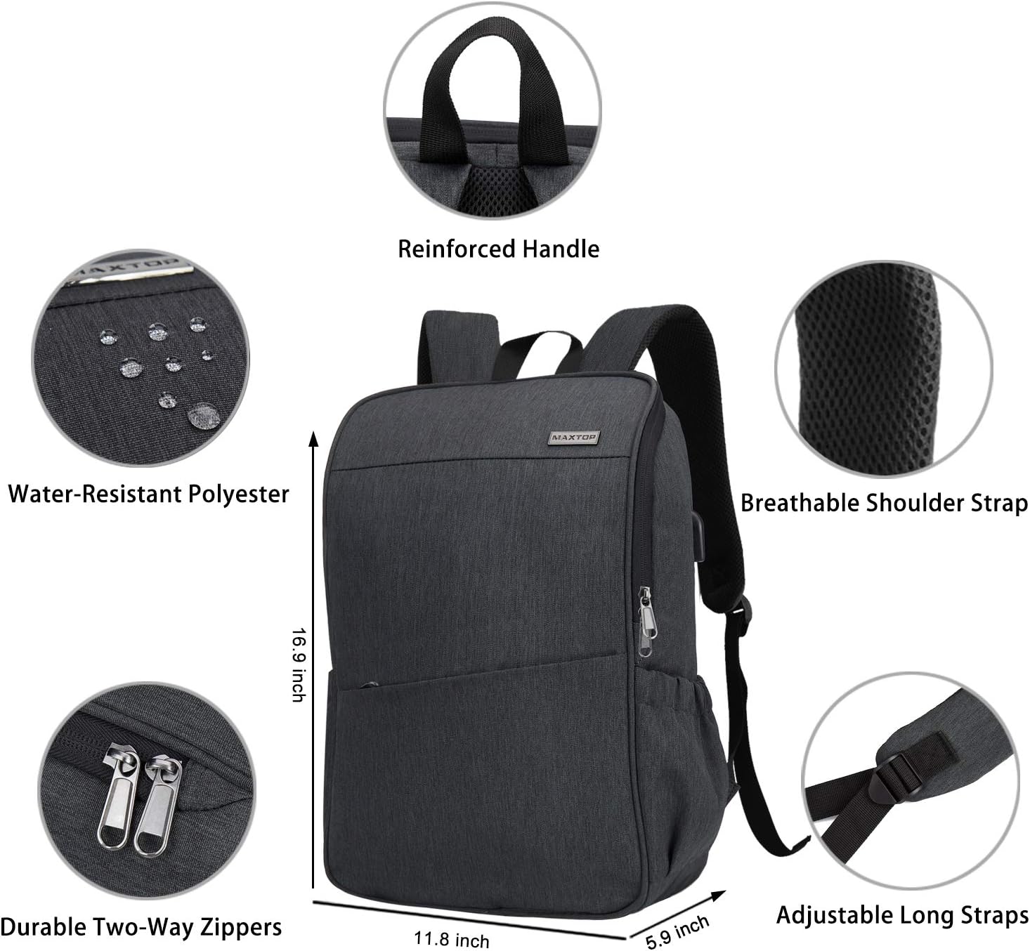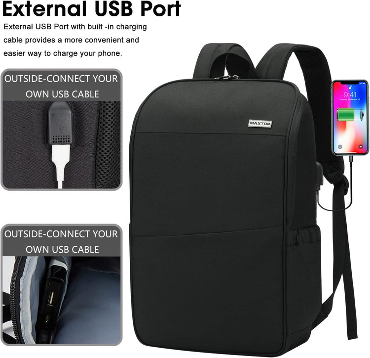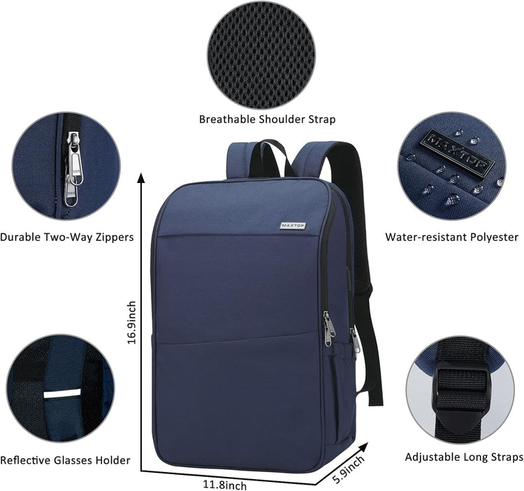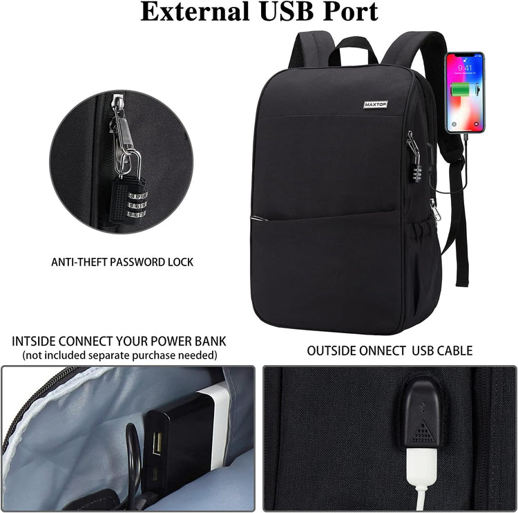 MAXTOP Deep Storage Laptop Backpack with USB Charging Port Water Resistant College Computer Bookbag 16 Inch Laptop