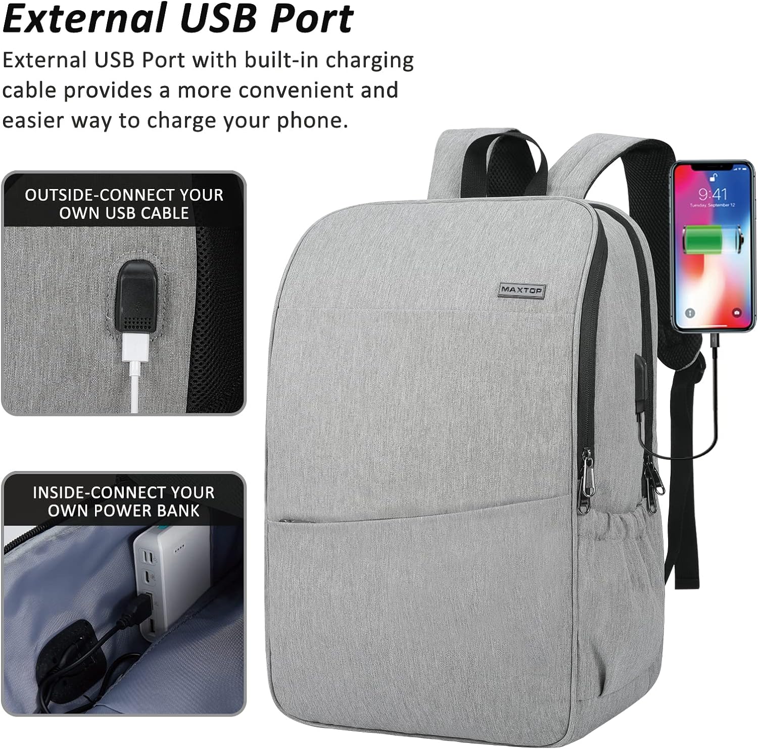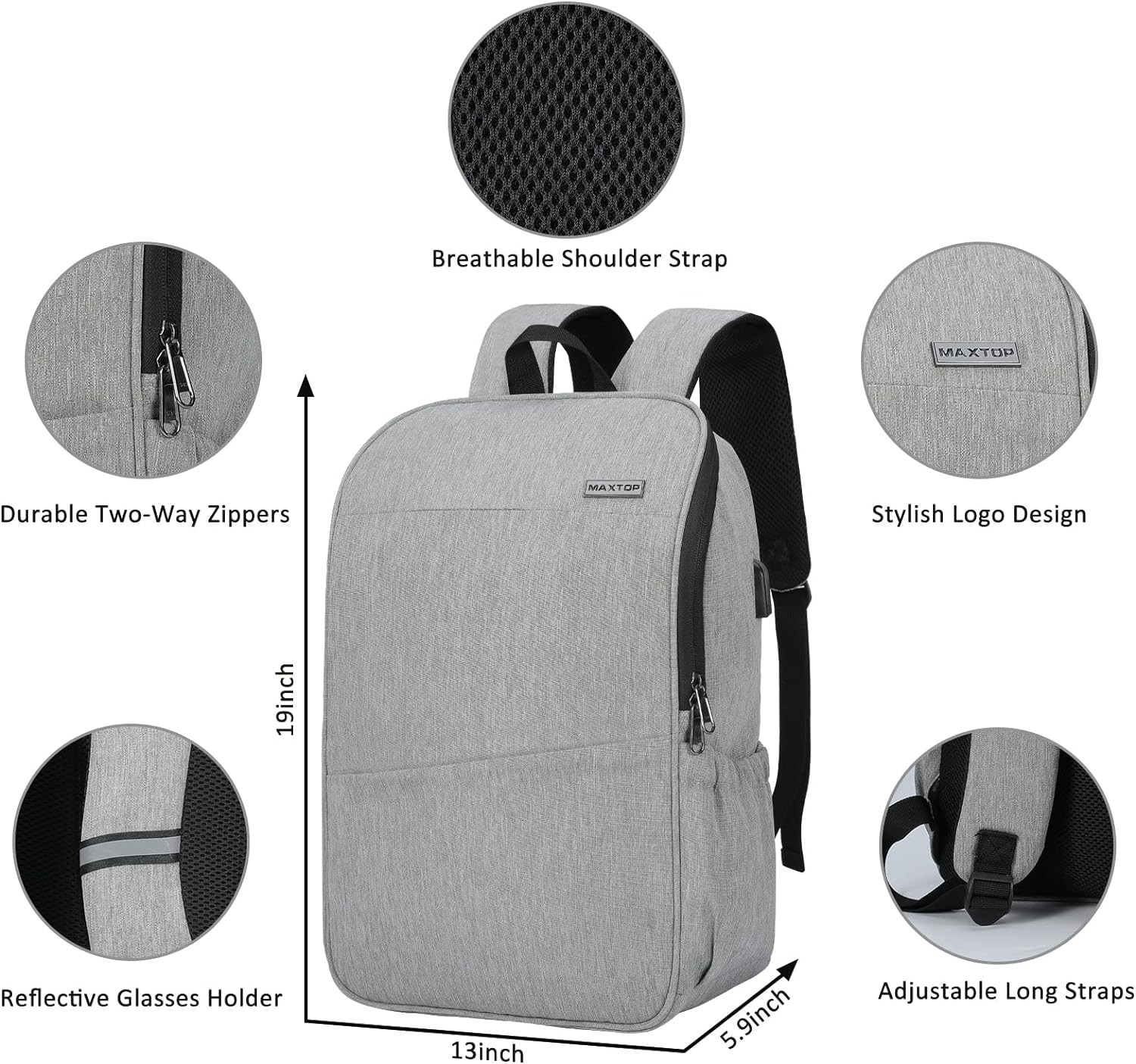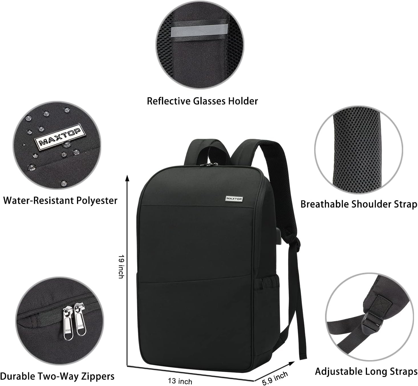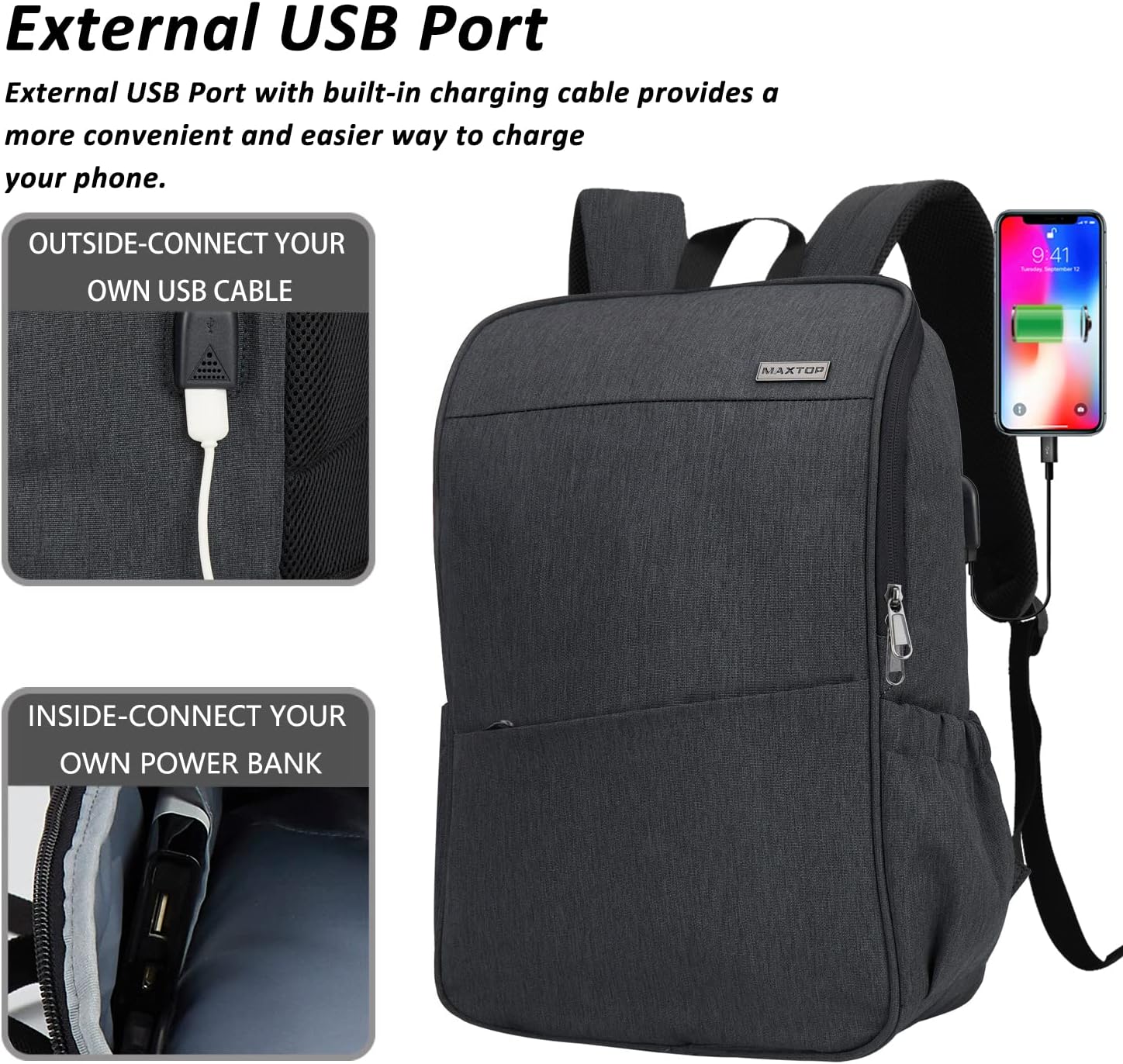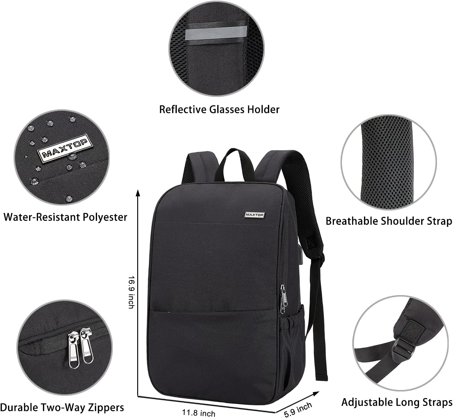 MAXTOP Deep Storage Laptop Backpack with USB Charging Port Water Resistant College Computer Bookbag 16 Inch Laptop