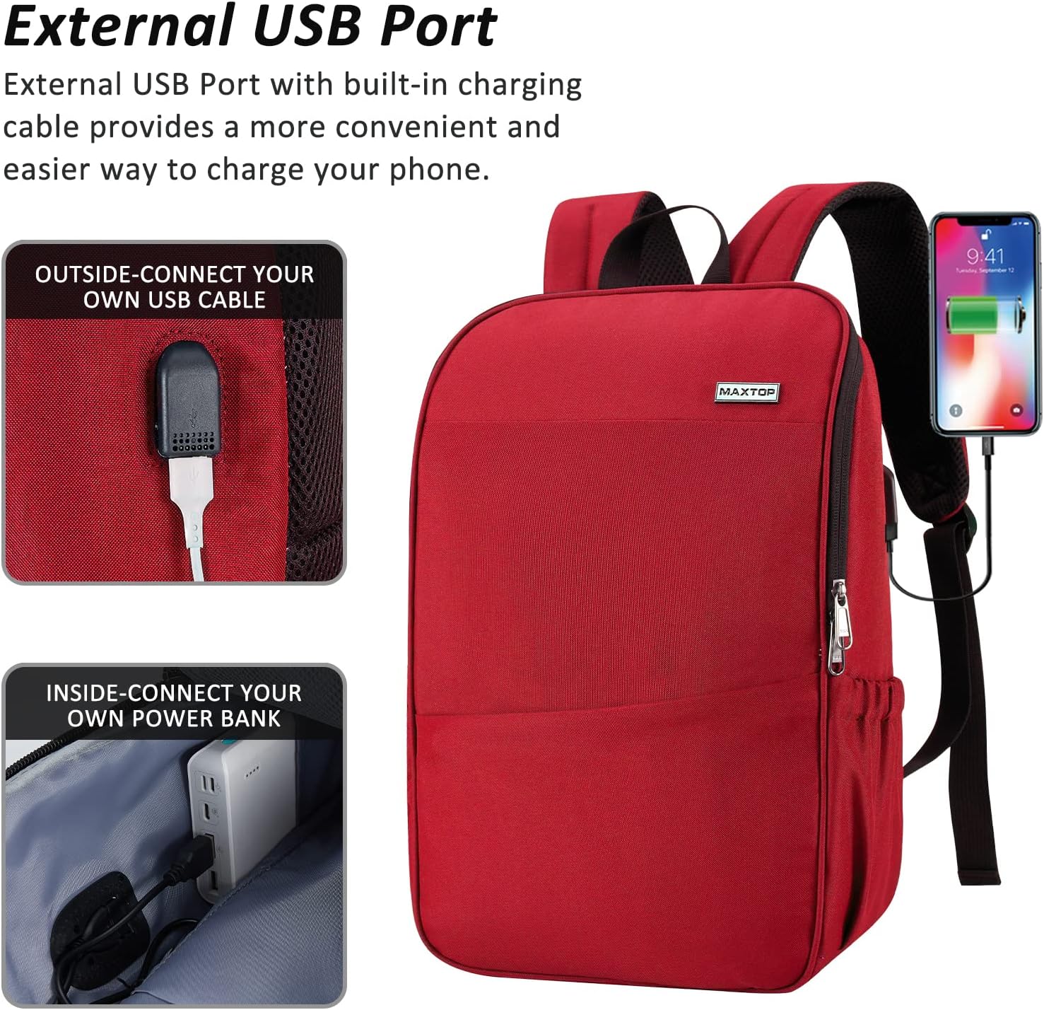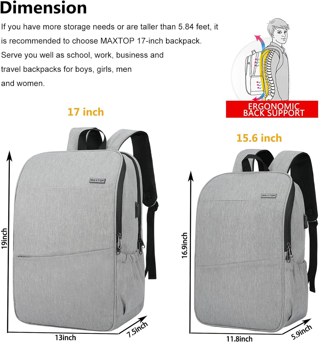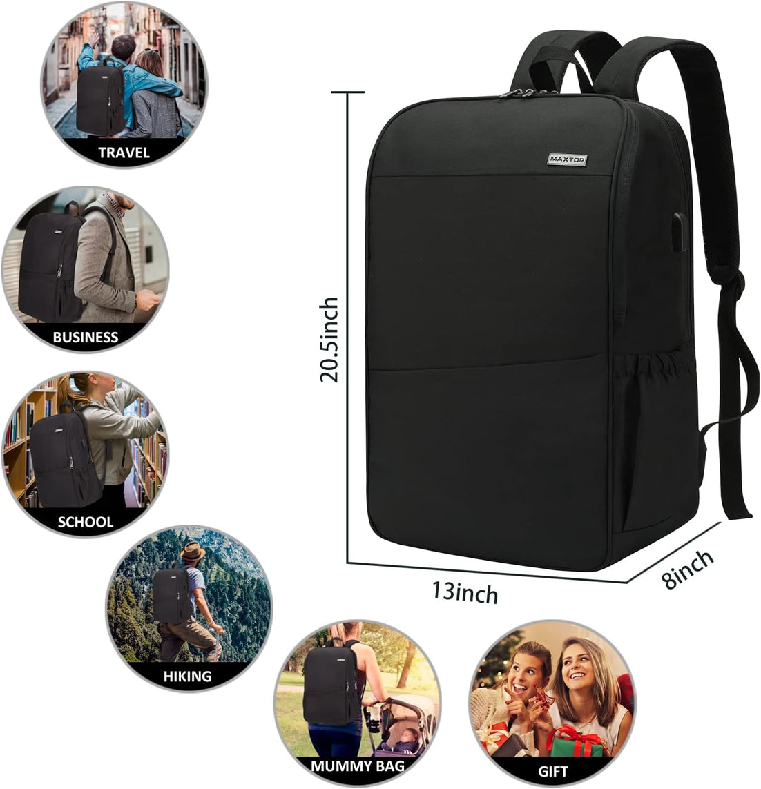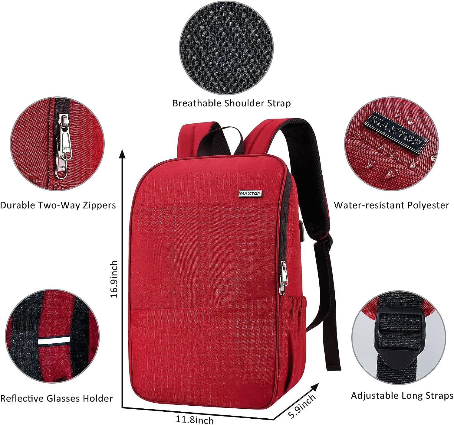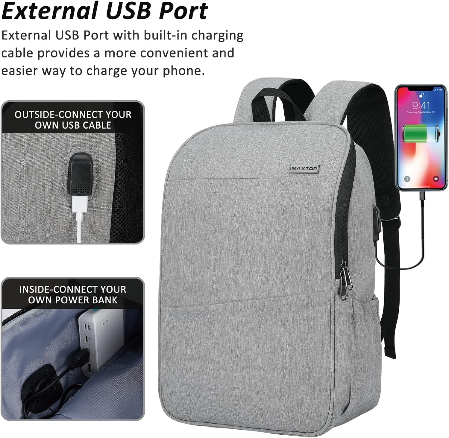 MAXTOP Deep Storage Laptop Backpack with USB Charging Port Water Resistant College Computer Bookbag 16 Inch Laptop