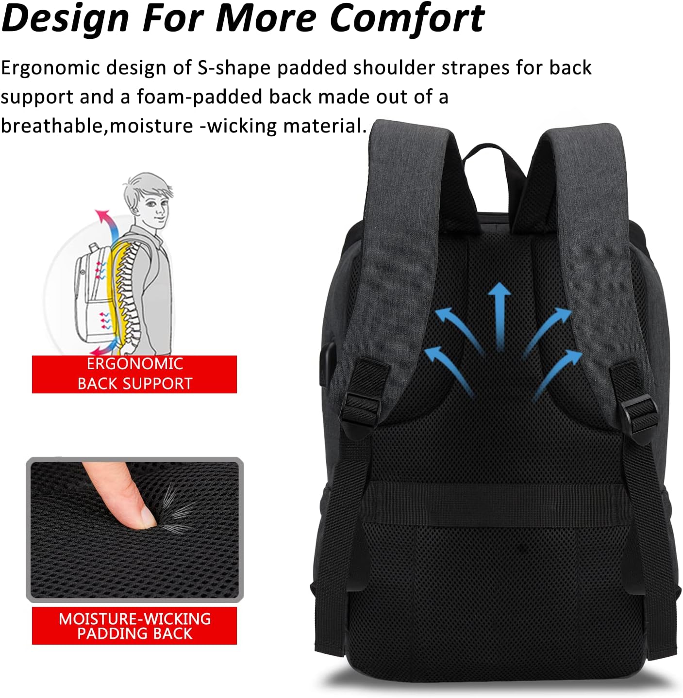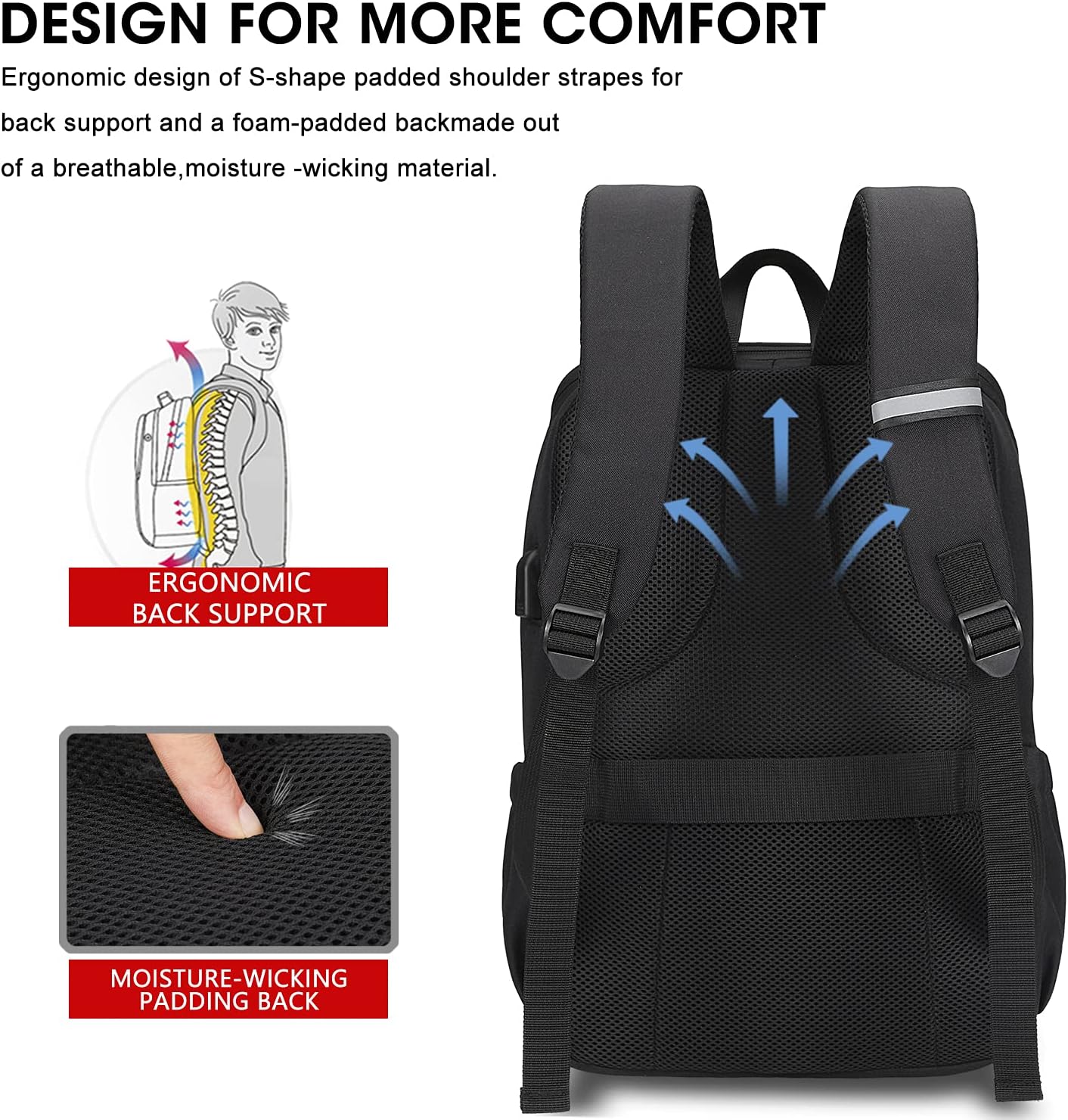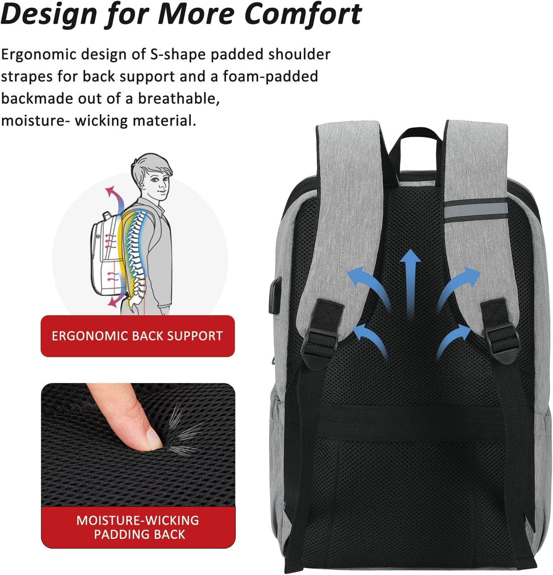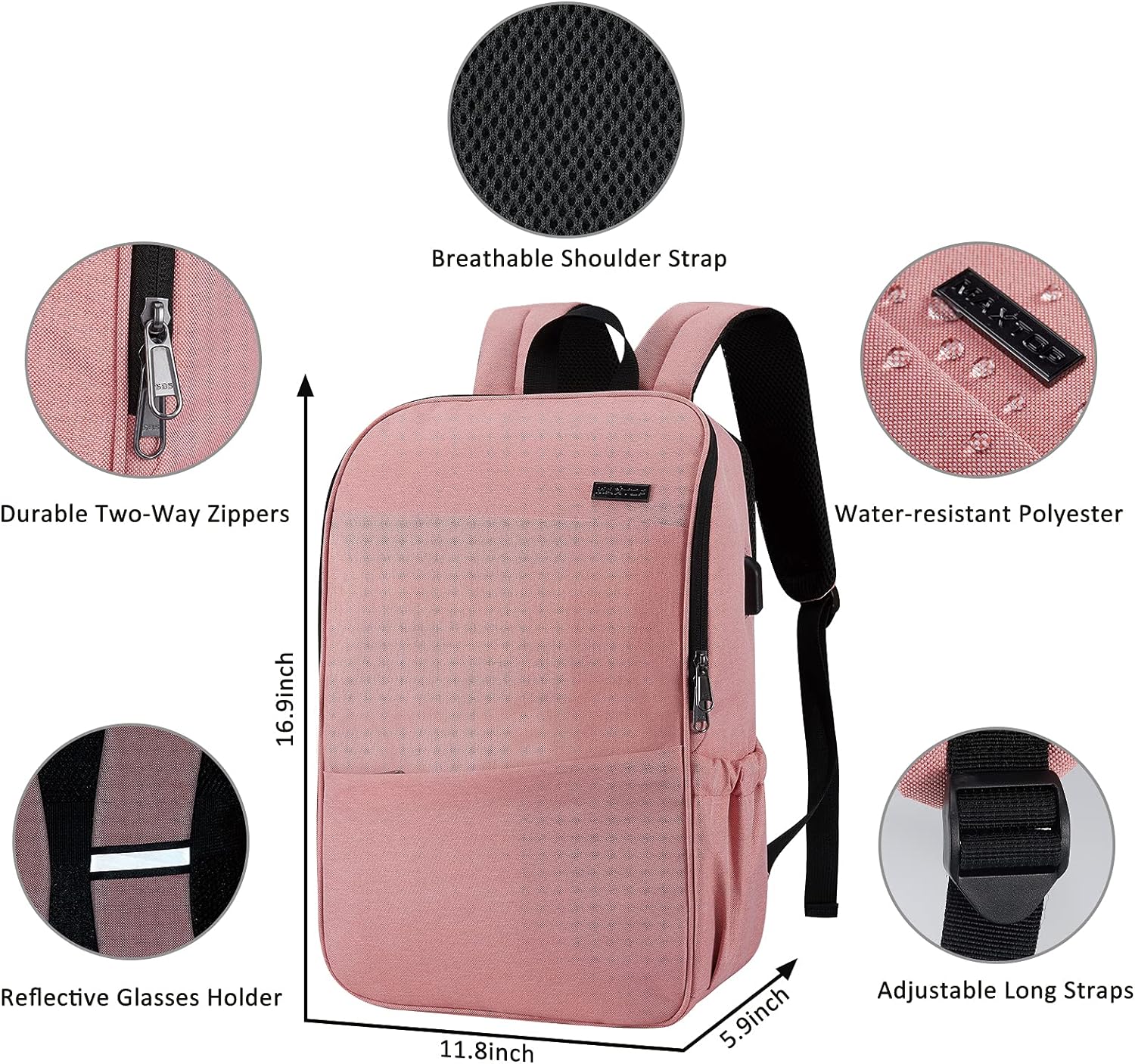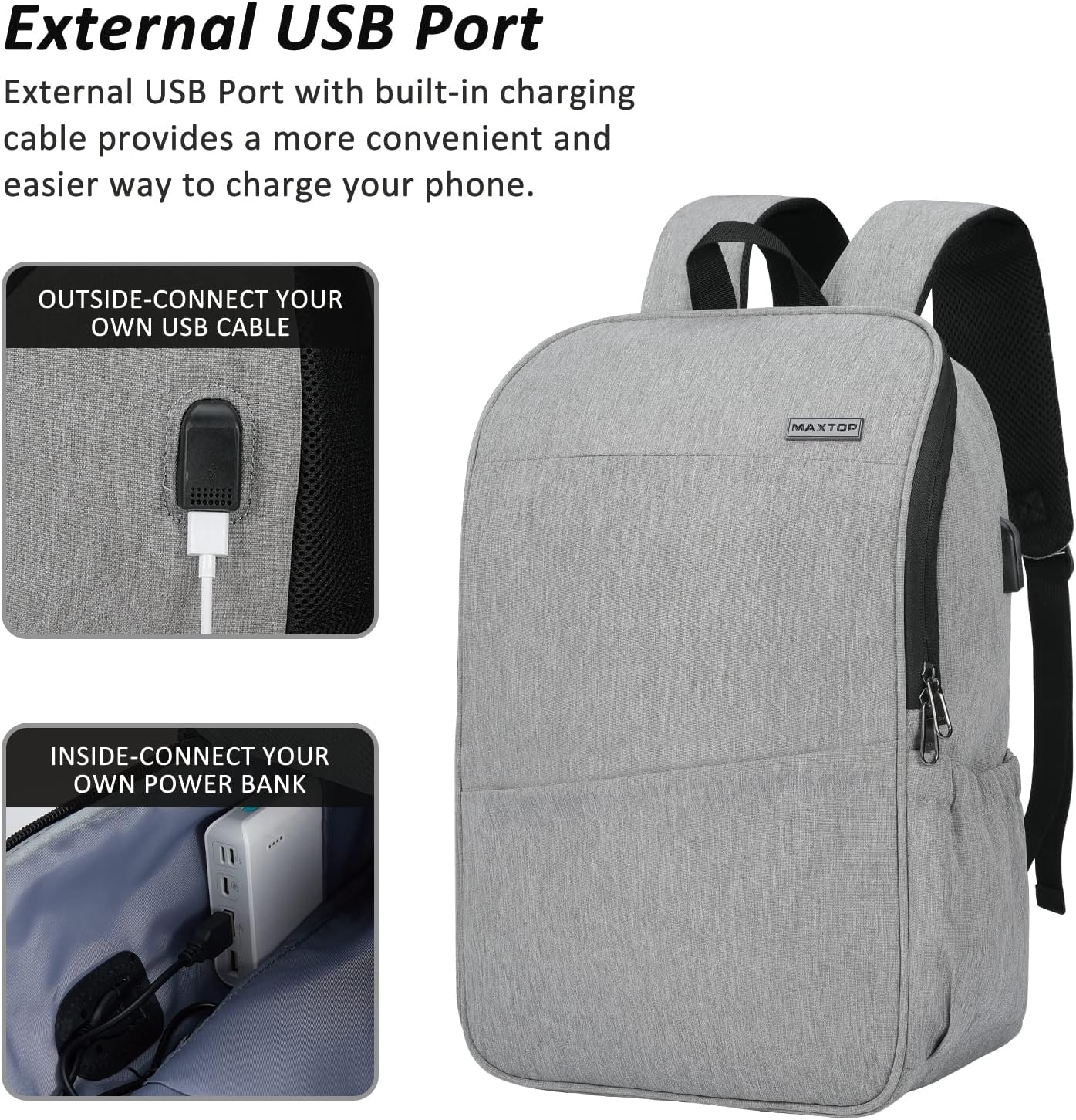 MAXTOP Deep Storage Laptop Backpack with USB Charging Port Water Resistant College Computer Bookbag 16 Inch Laptop