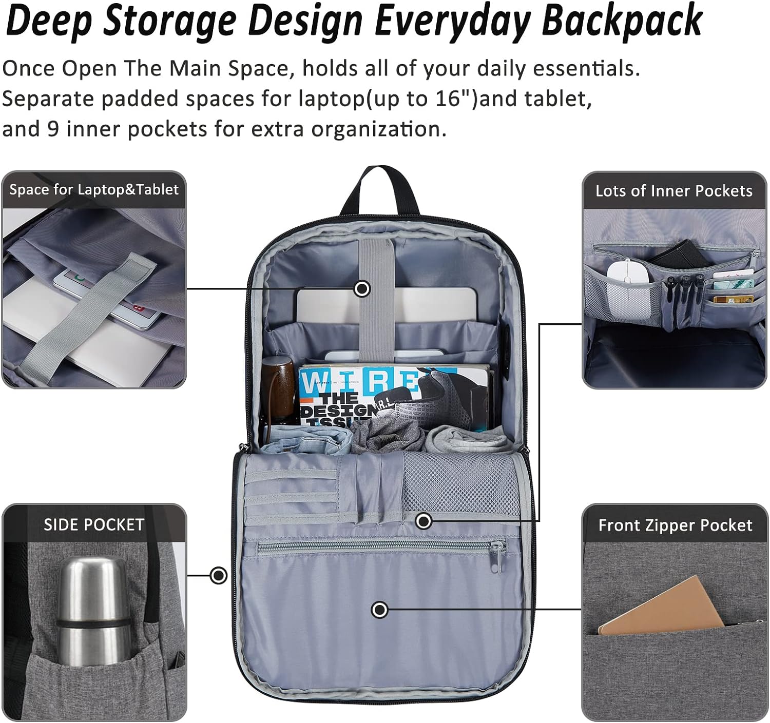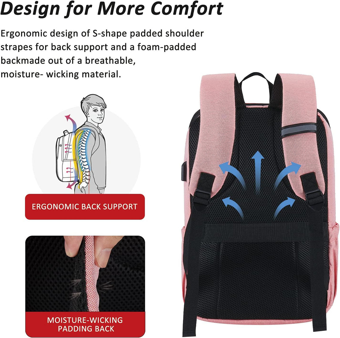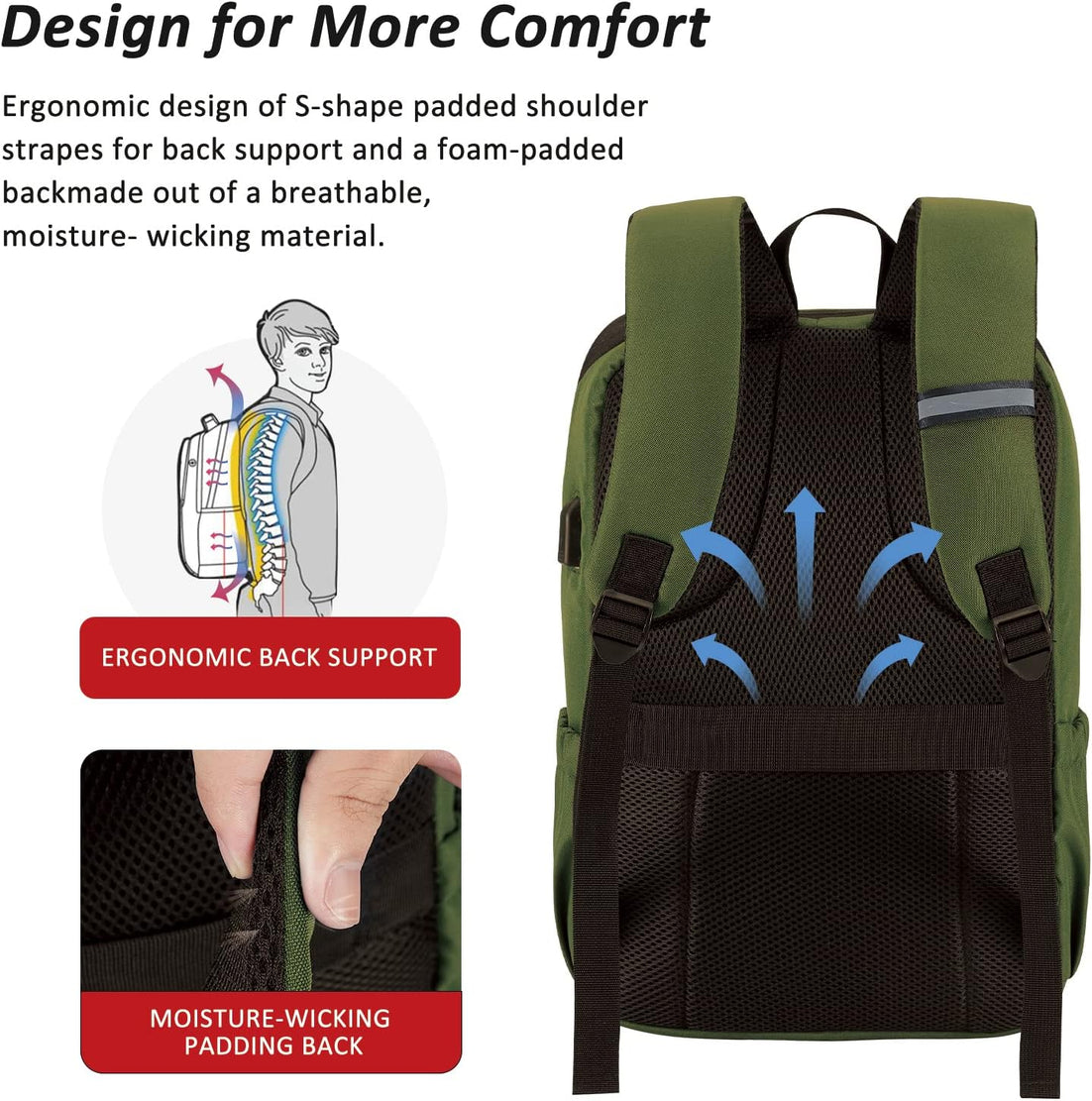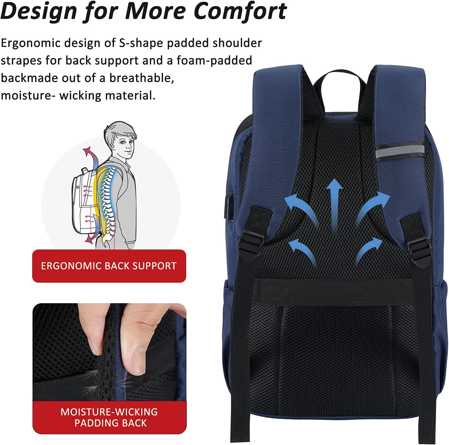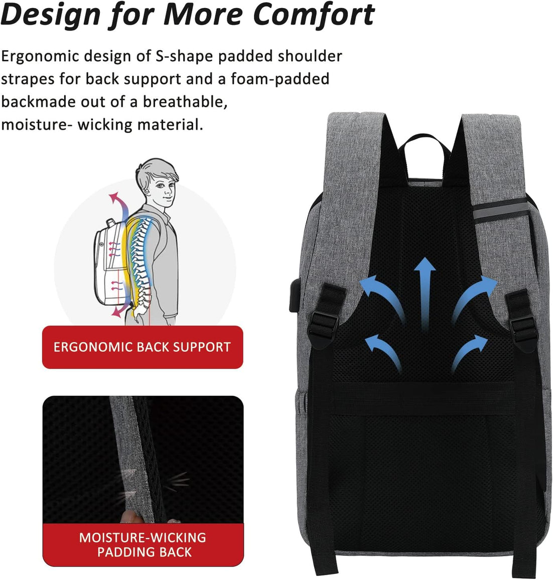 MAXTOP Deep Storage Laptop Backpack with USB Charging Port Water Resistant College Computer Bookbag 16 Inch Laptop