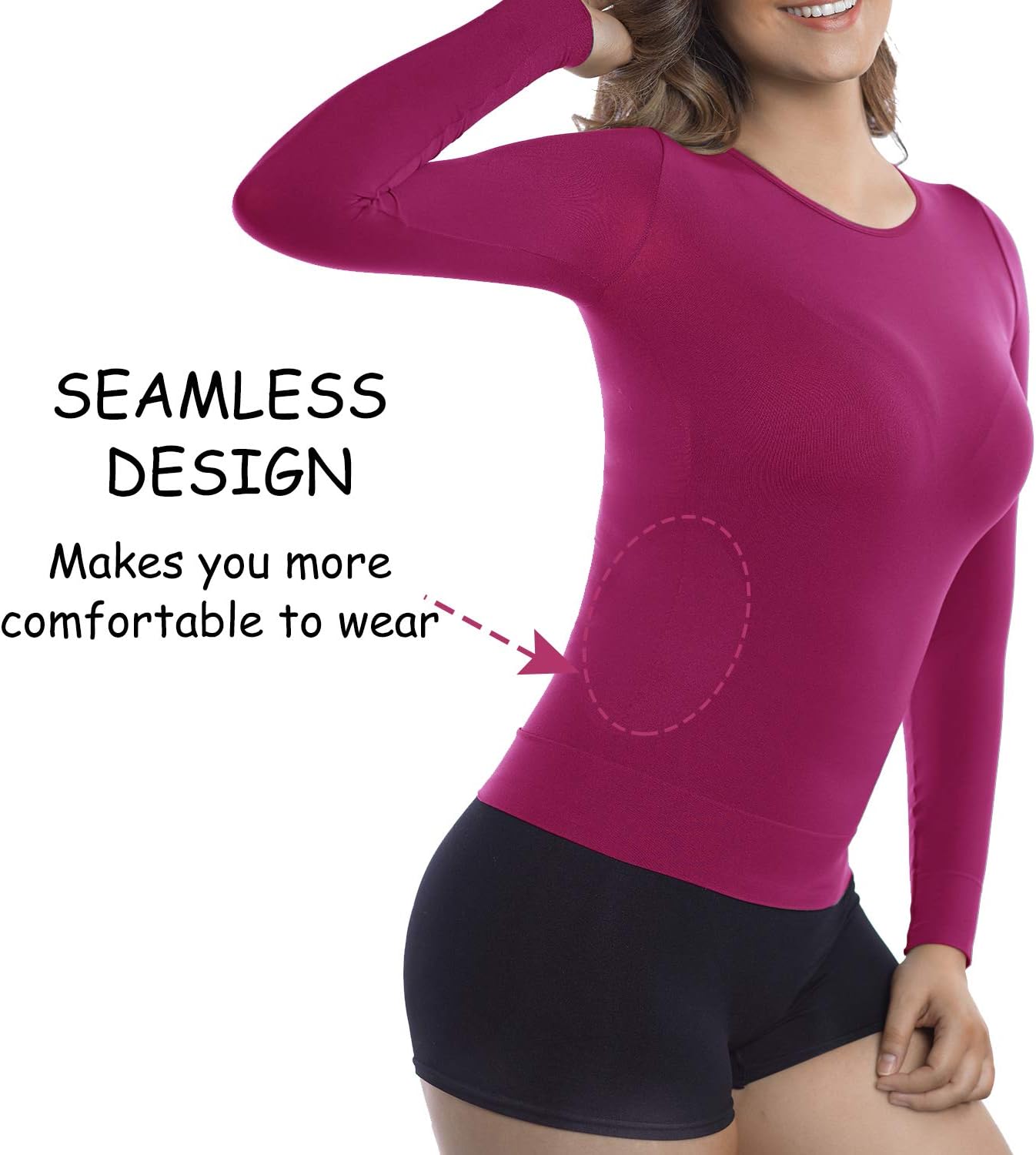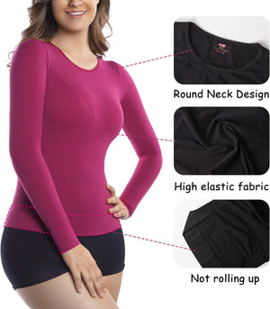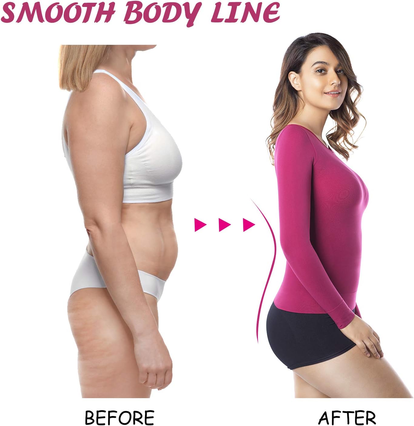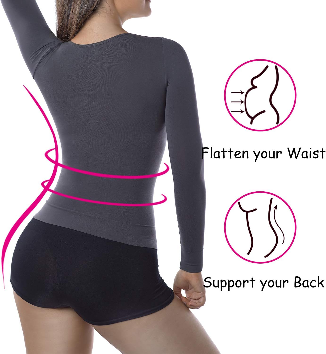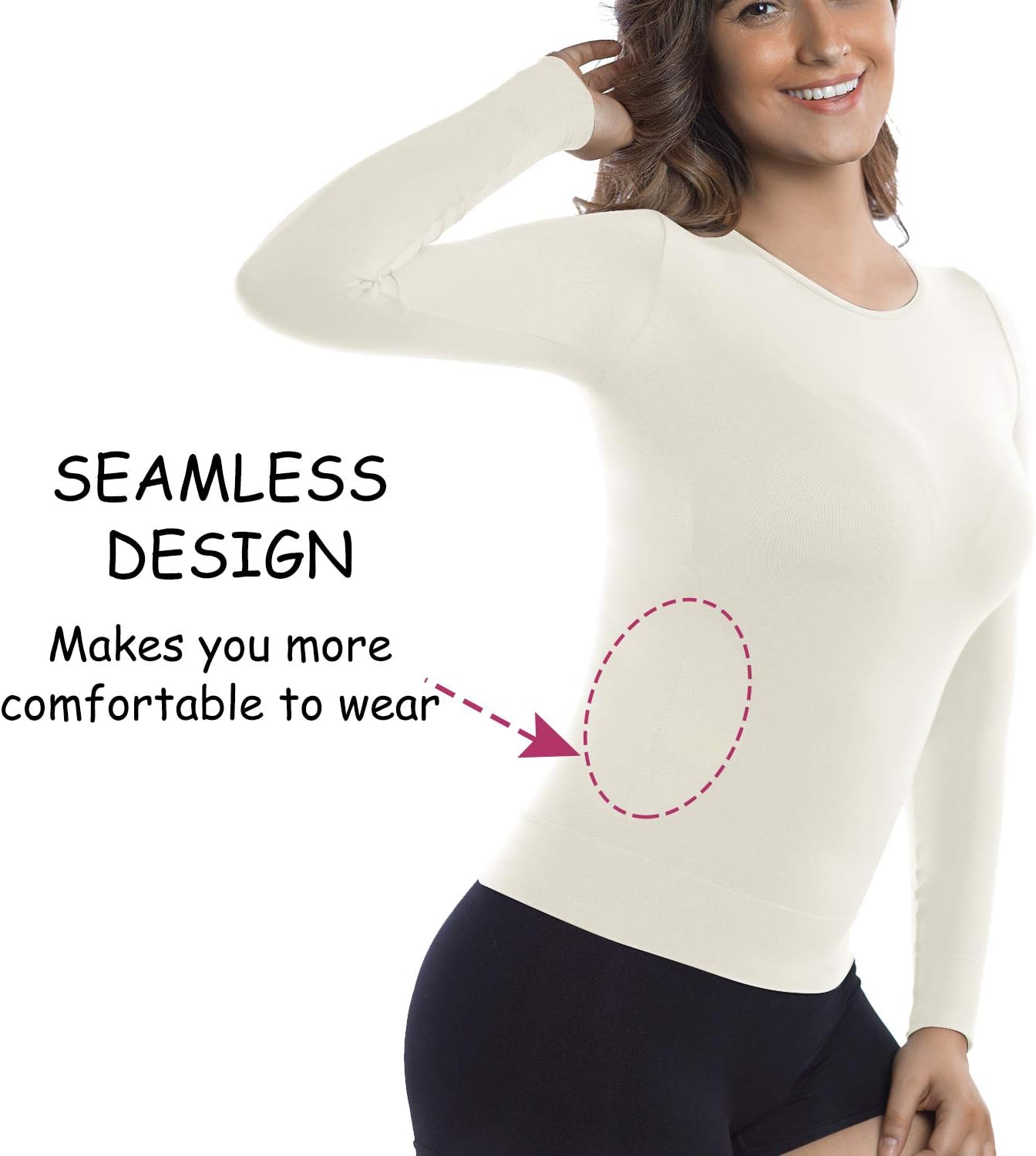 +MD Womens Compression Slimming Shirts and Undershirts for Tummy Waist and Bust Long Sleeves Thermal Underwear Round Neck