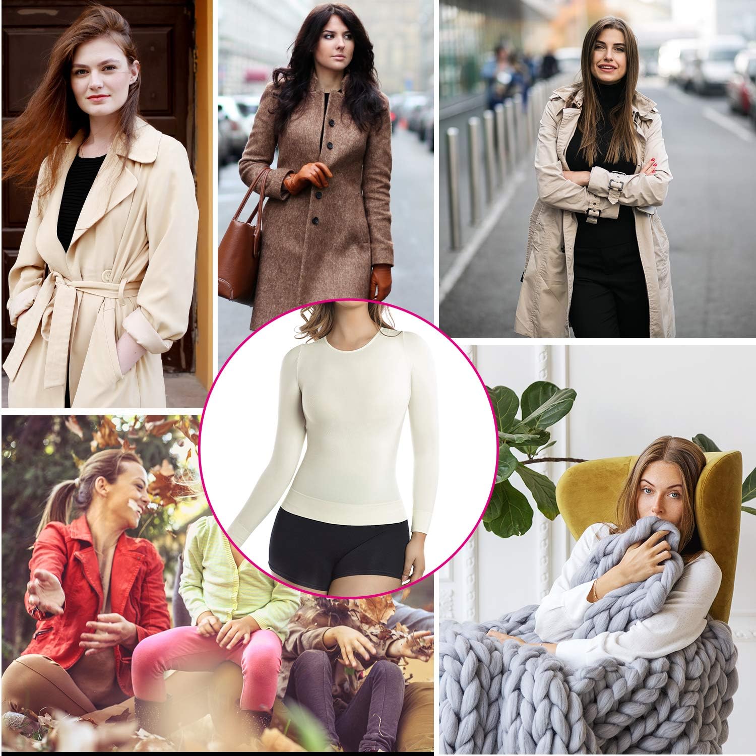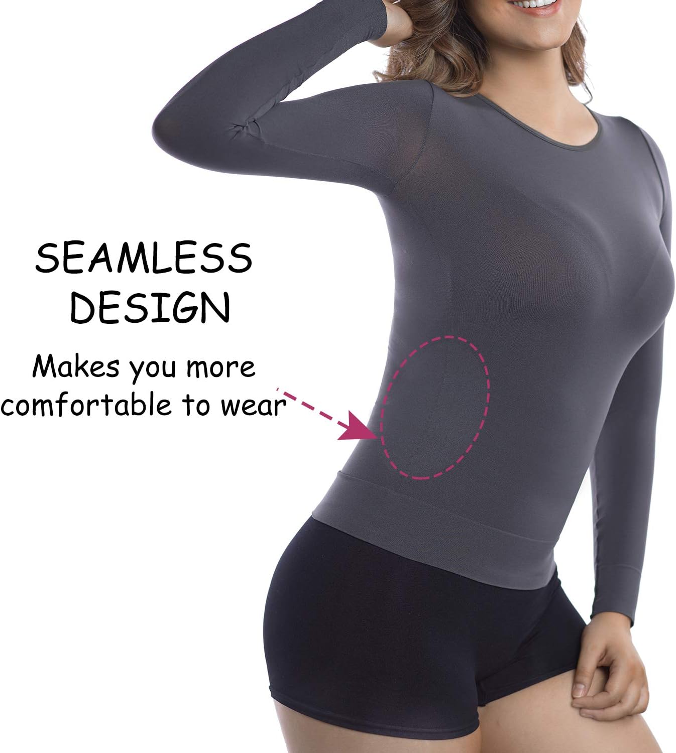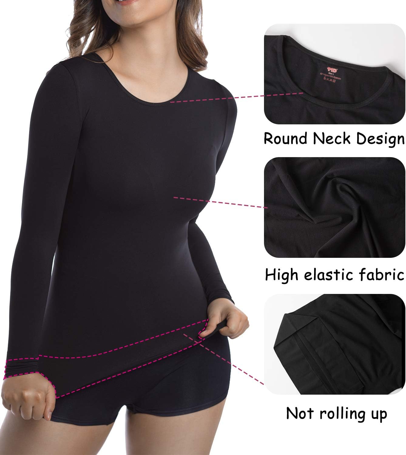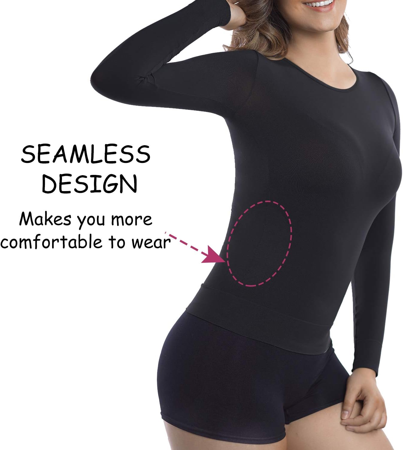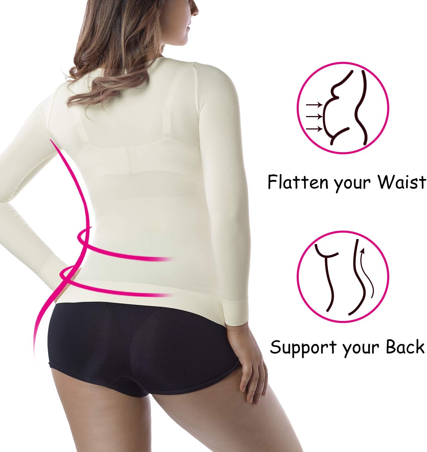 +MD Womens Compression Slimming Shirts and Undershirts for Tummy Waist and Bust Long Sleeves Thermal Underwear Round Neck