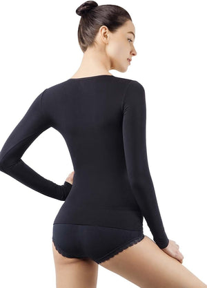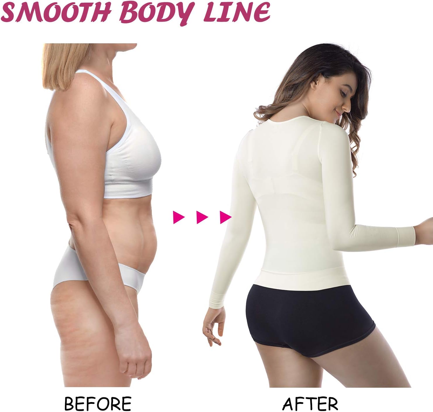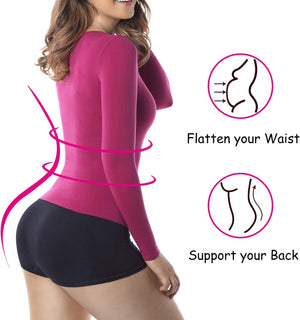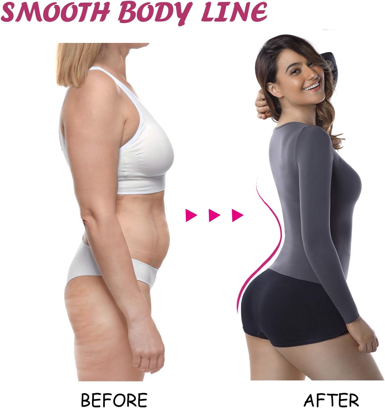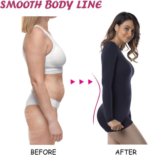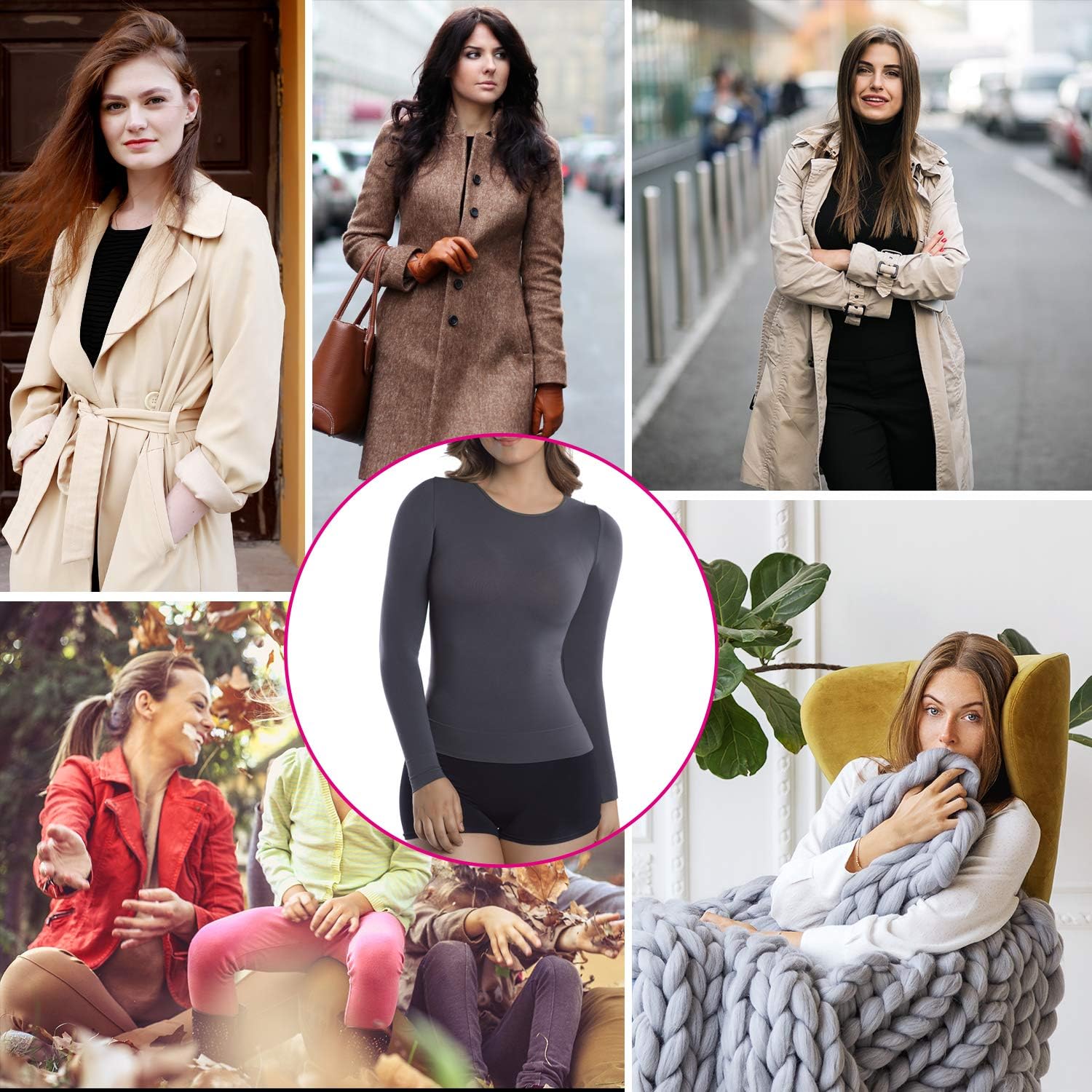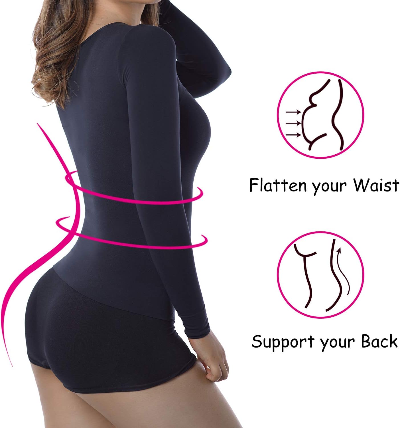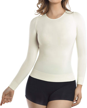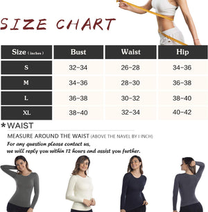 +MD Womens Compression Slimming Shirts and Undershirts for Tummy Waist and Bust Long Sleeves Thermal Underwear Round Neck
