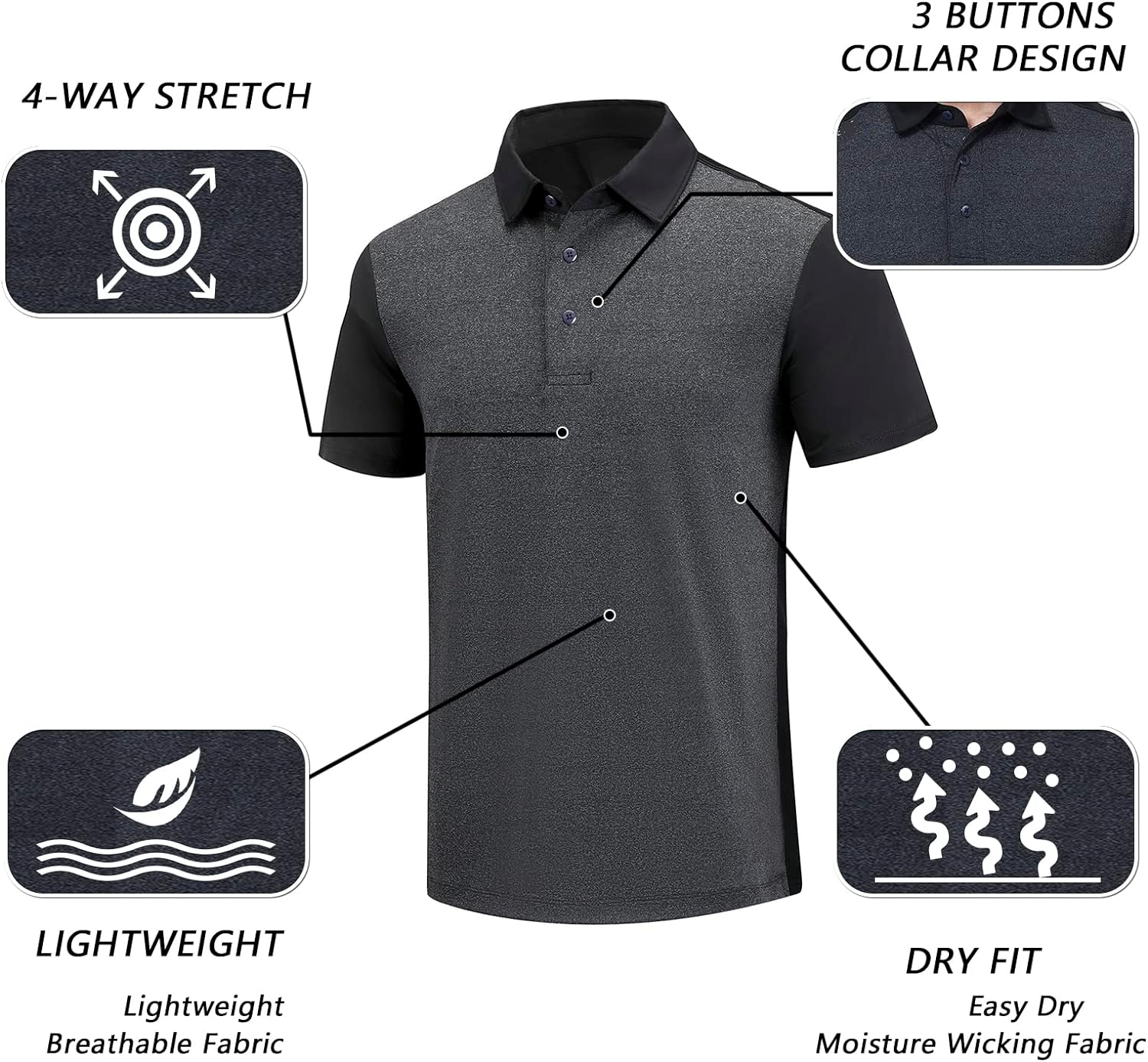 Mens Golf Shirts Dry Fit Short/Long Sleeve Moisture Wicking Athletic T-Shirt for Men Slim Fit Pack