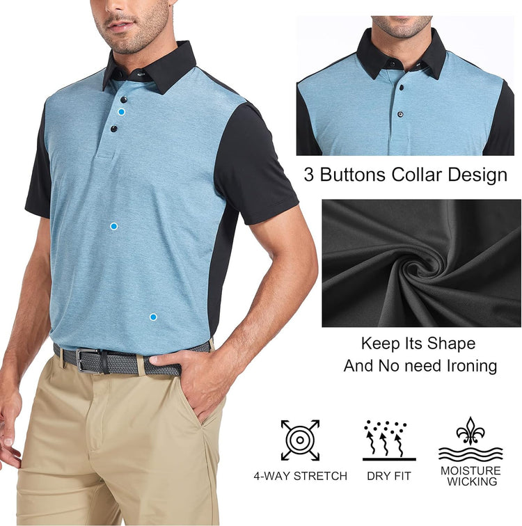 Mens Golf Shirts Dry Fit Short/Long Sleeve Moisture Wicking Athletic T-Shirt for Men Slim Fit Pack