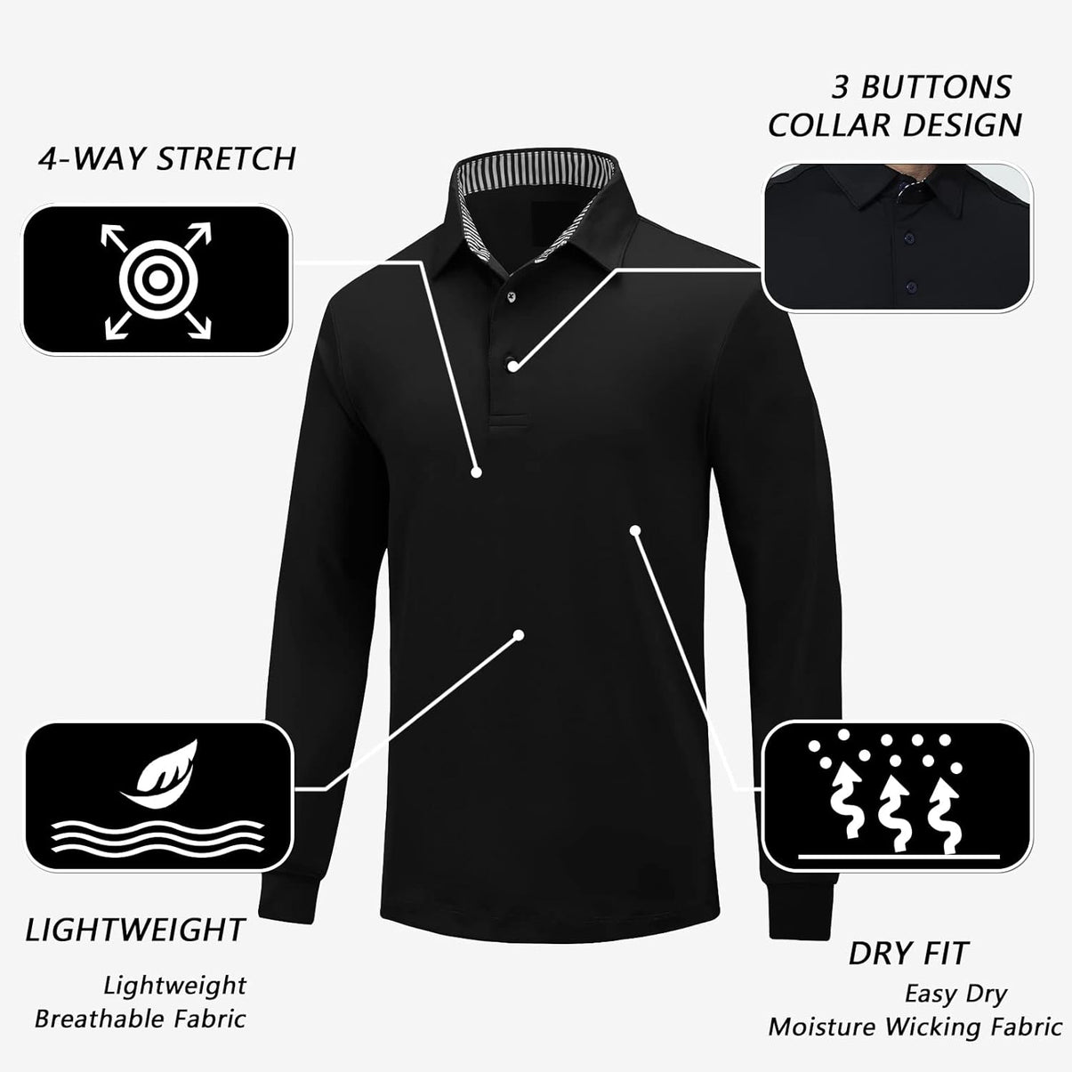 Mens Golf Shirts Dry Fit Short/Long Sleeve Moisture Wicking Athletic T-Shirt for Men Slim Fit Pack