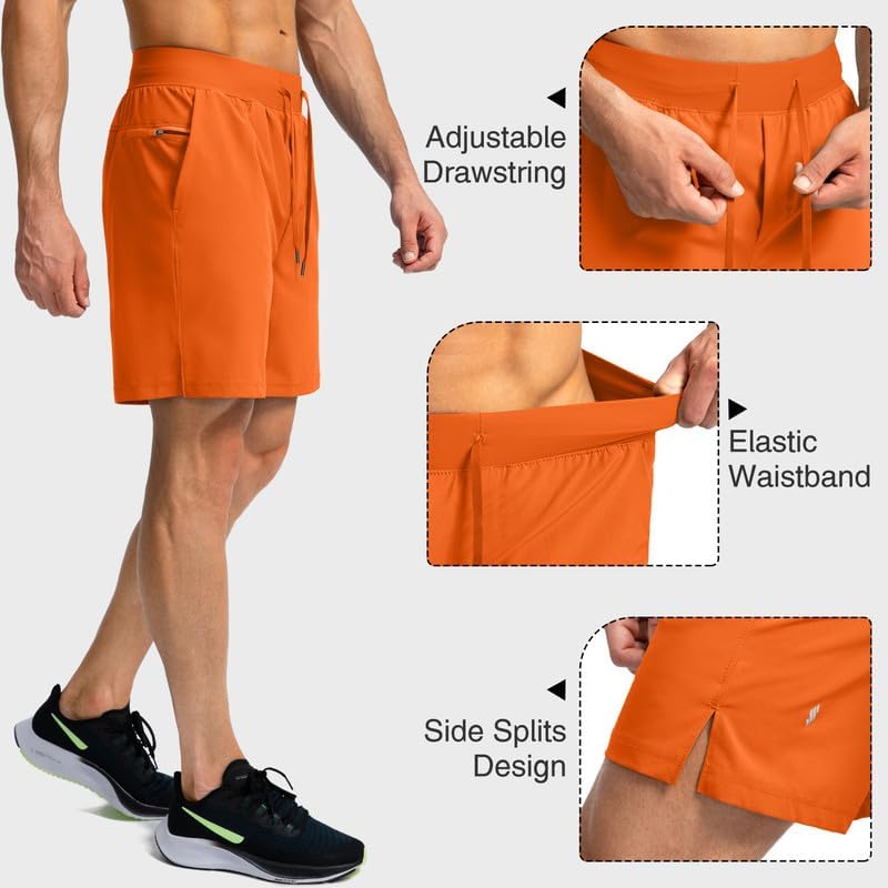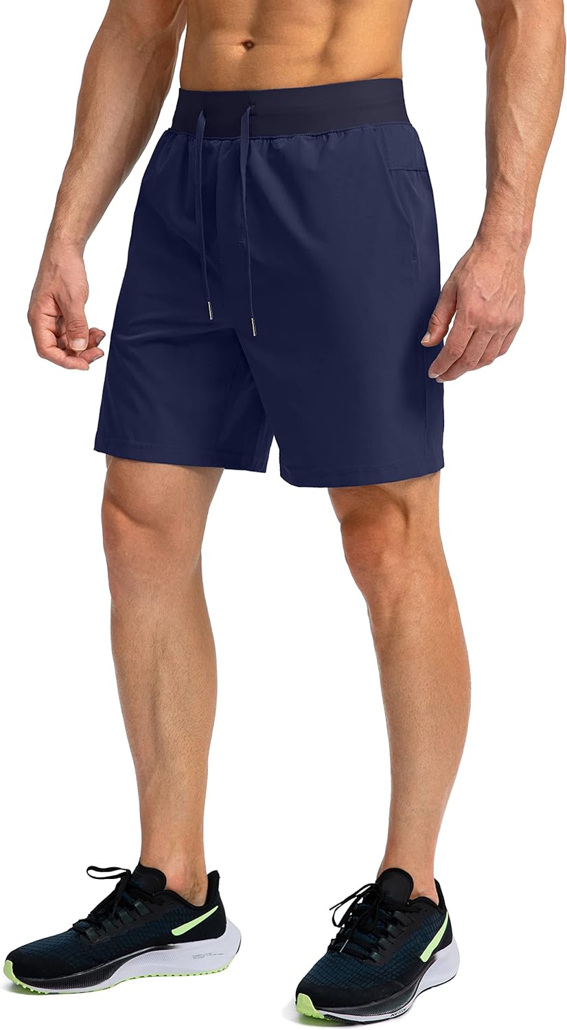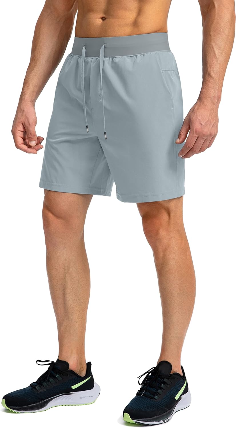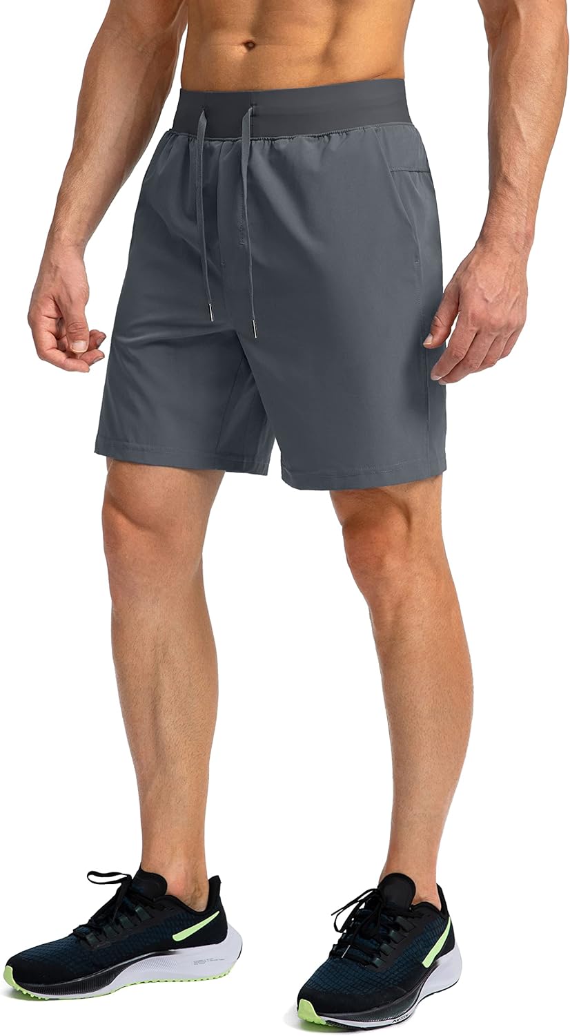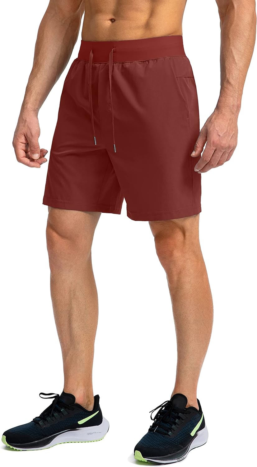 Men's Running Shorts with Zipper Pockets 7 Inch Lightweight Quick Dry Gym Workout Athletic Shorts for Men