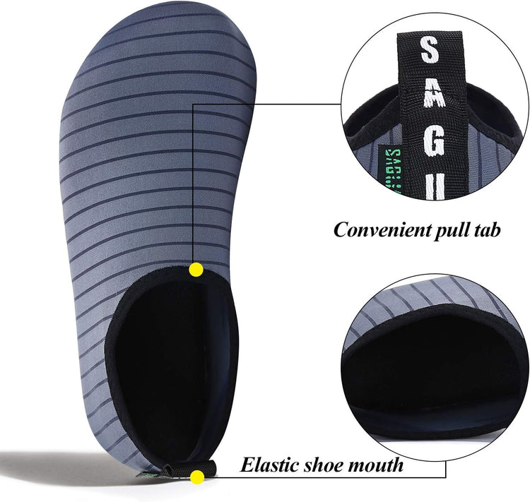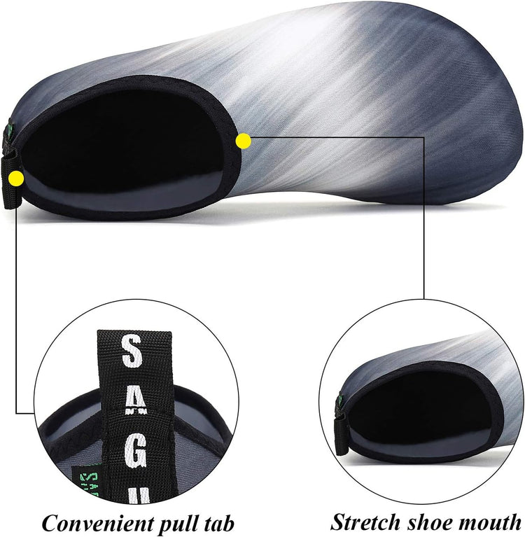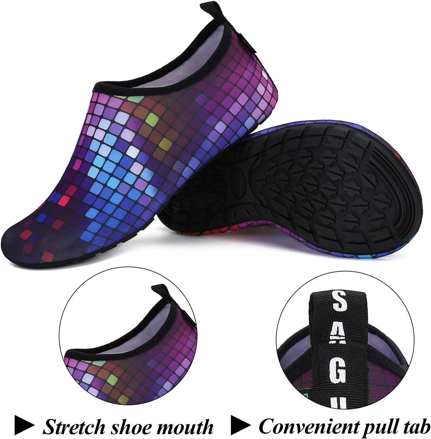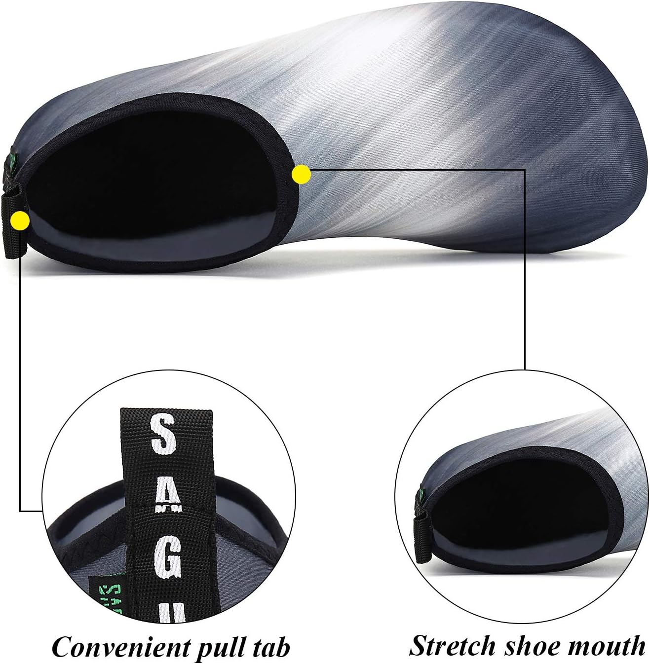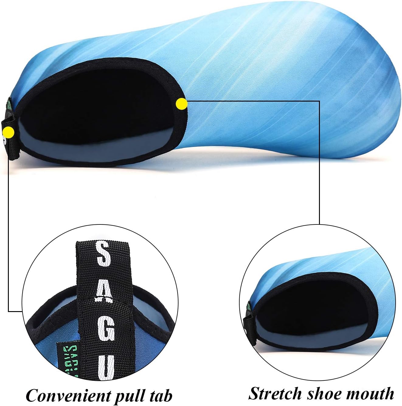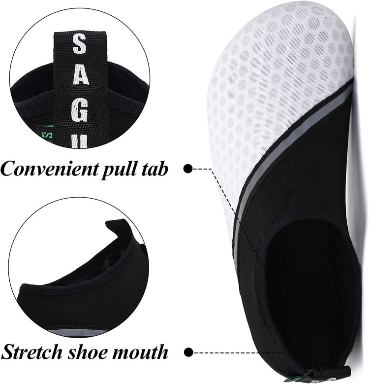 SAGUARO is a professional brand of operating water shoes. SAGUARO's water shoes is a good choice for aqua sports, beach, swim, pool, diving, water sports, vacation, waterpark, water aerobic classes, rafting, camping this summer, through the waterfall, walking on the beach, boat trip, driving car, car-washing, etc.You can easily put SAGUARO's water shoes in your bag and take it to everywhere.