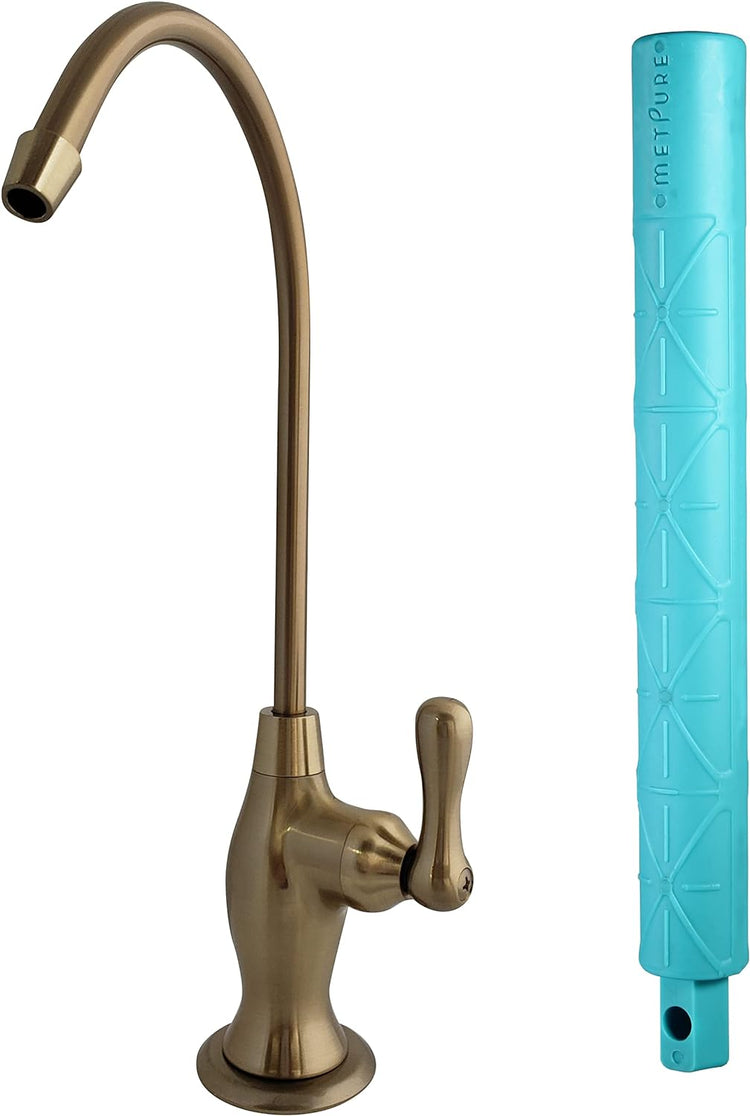 Metpure Vase Style Reverse Osmosis Drinking Water Non Air Gap RO Faucet Filtration System Water Dispenser Spout (Champagne Gold) with Drinking Water Faucet Wrench RO-FW148