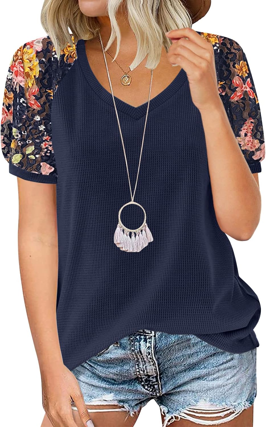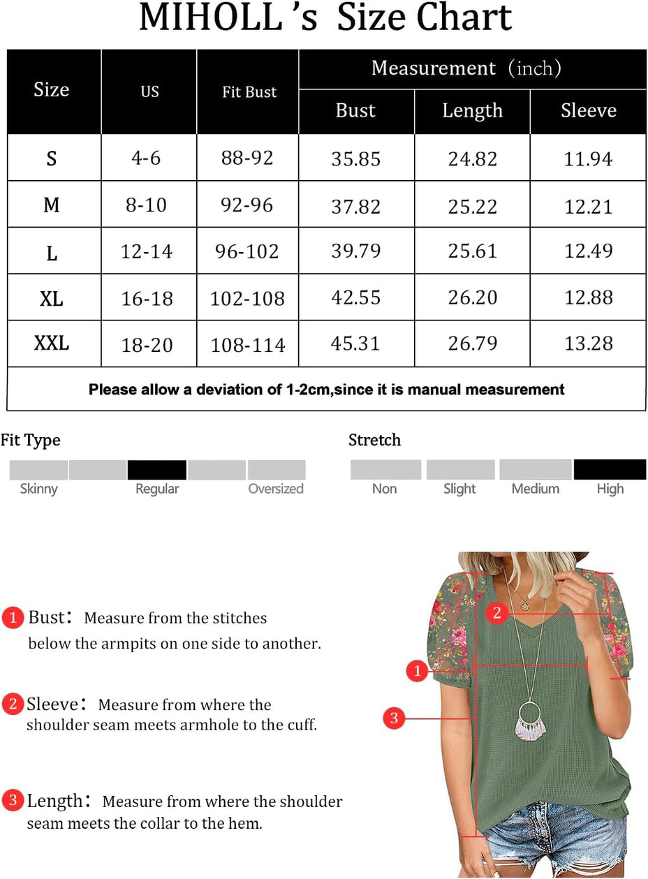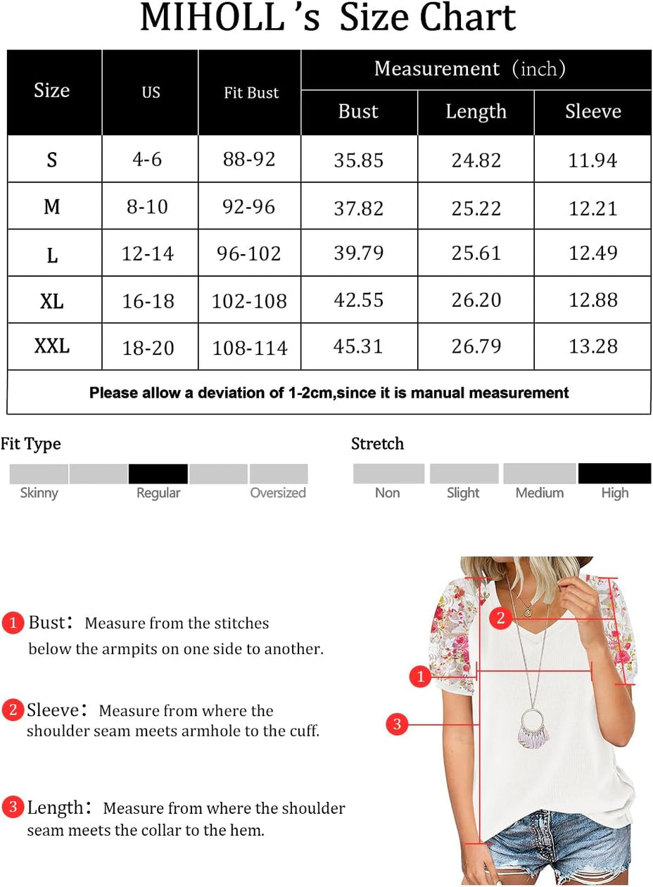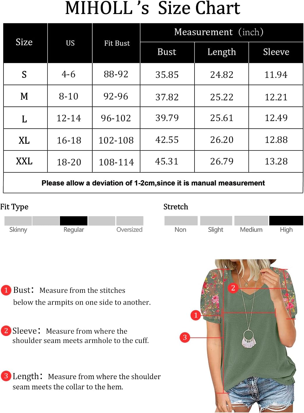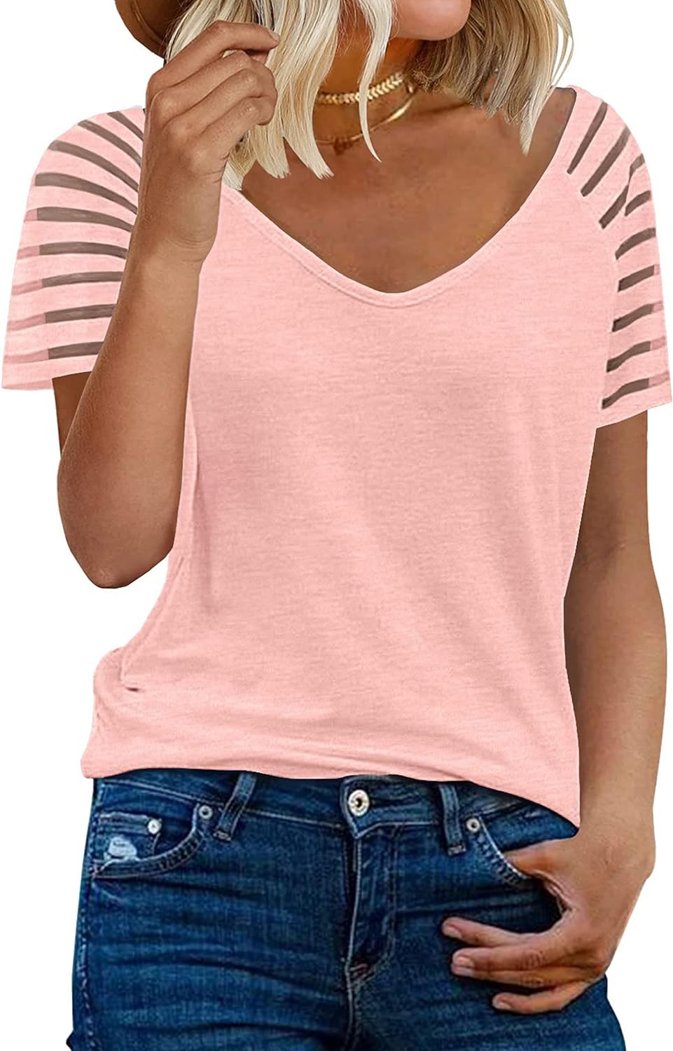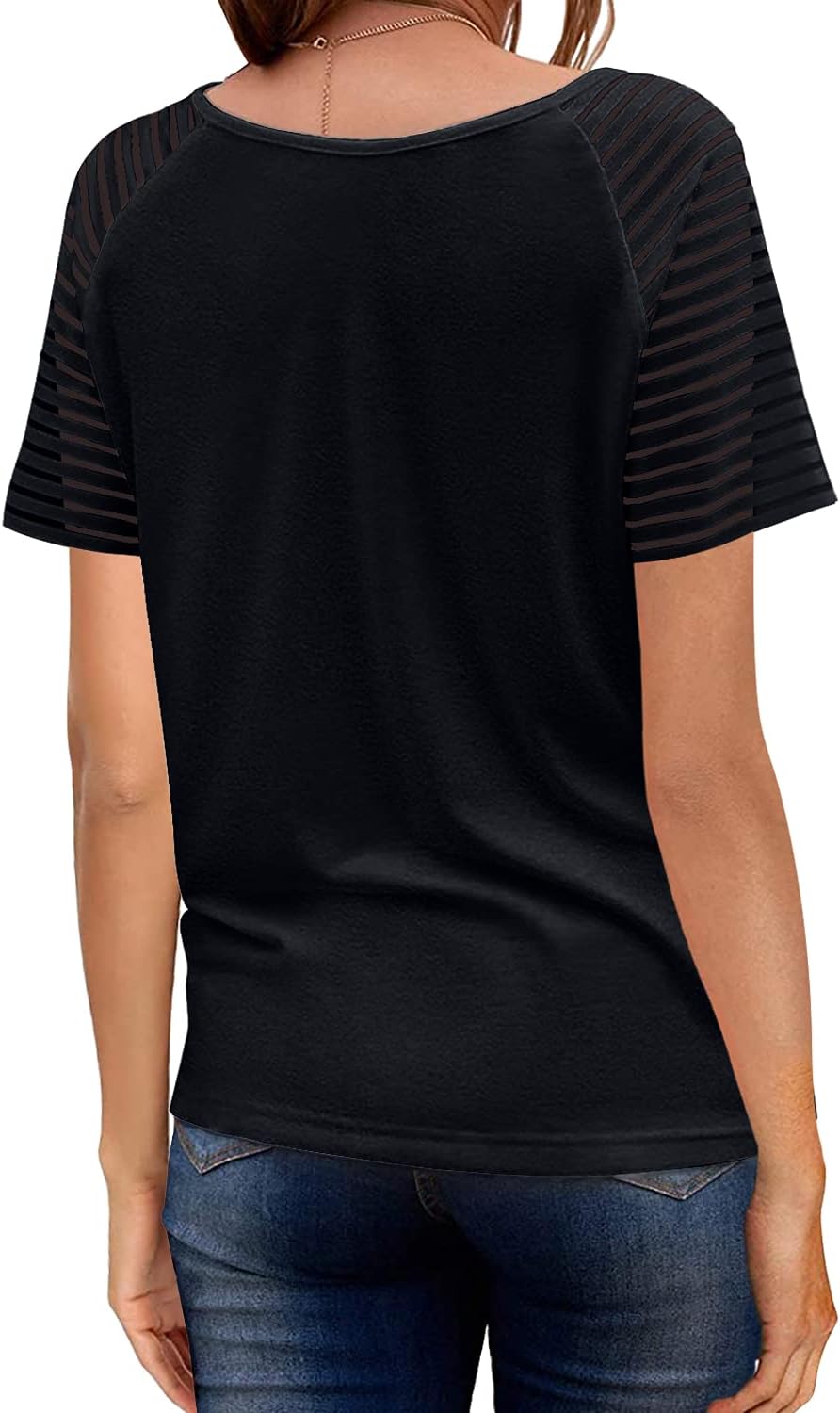 MIHOLL Women's Lace Short Sleeve V Neck Shirts Loose Casual Tops Tee Shirt