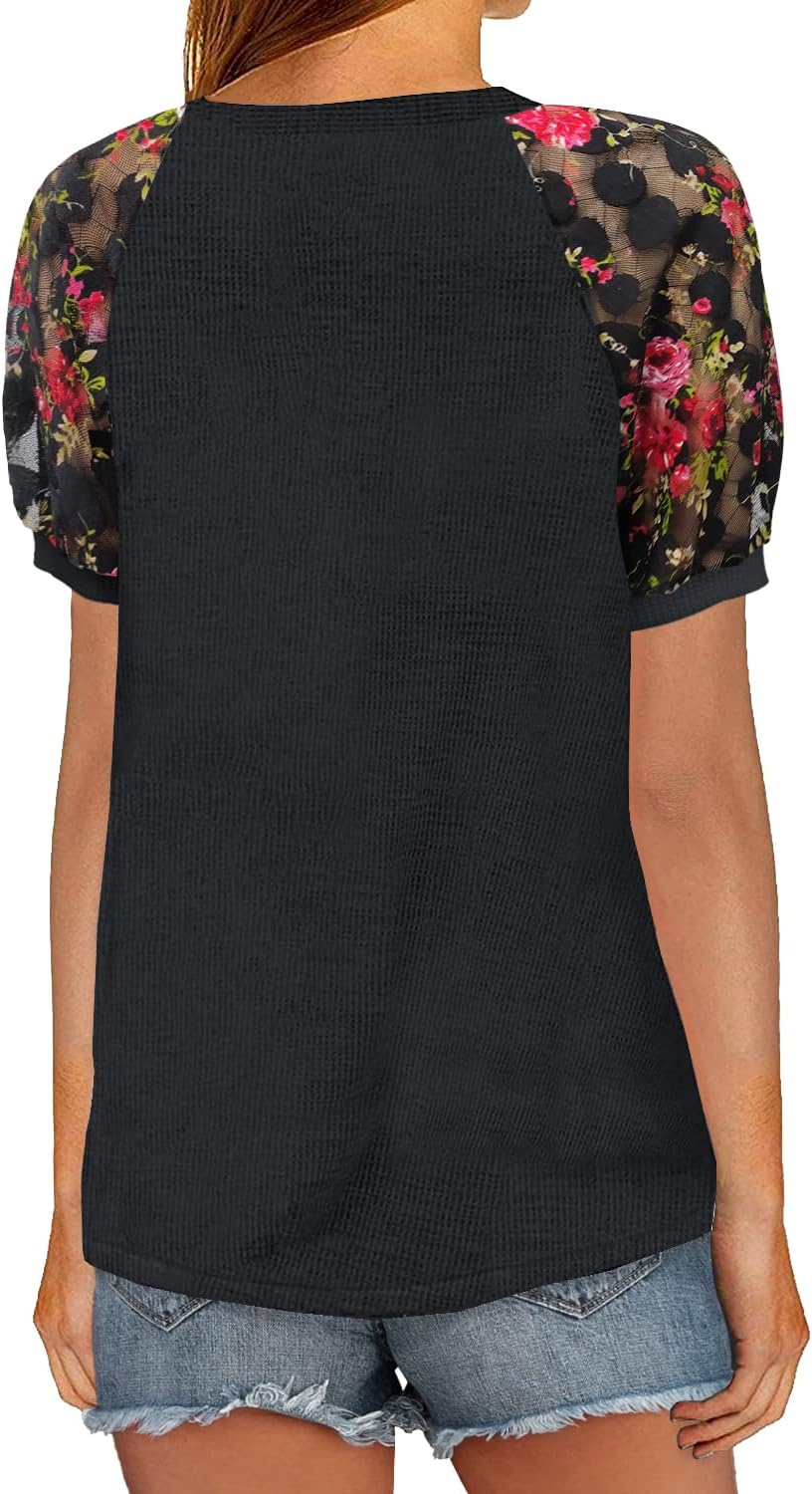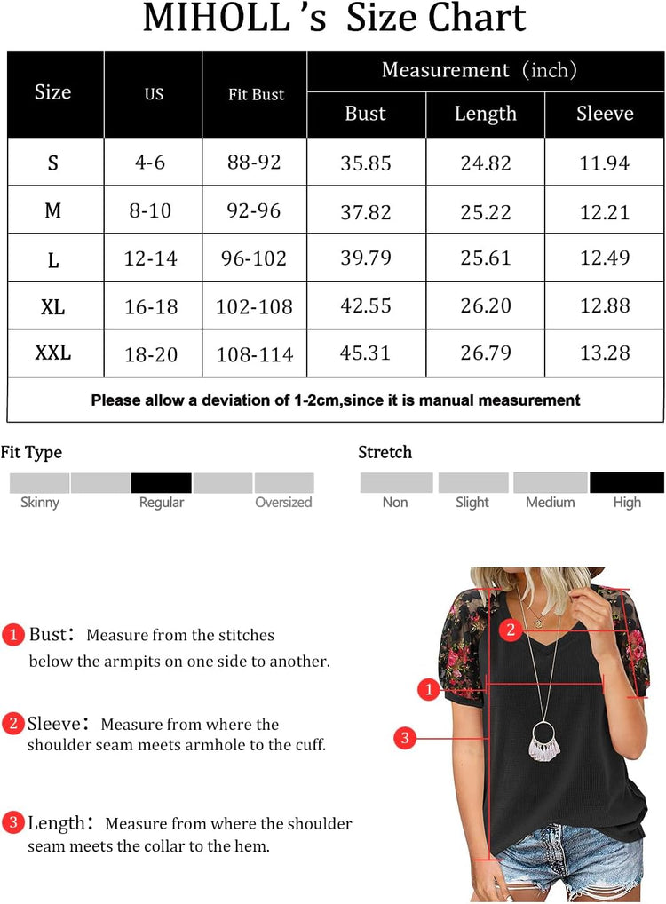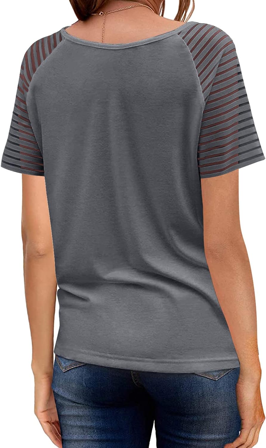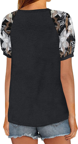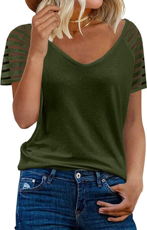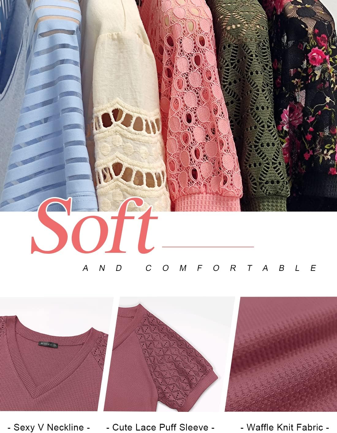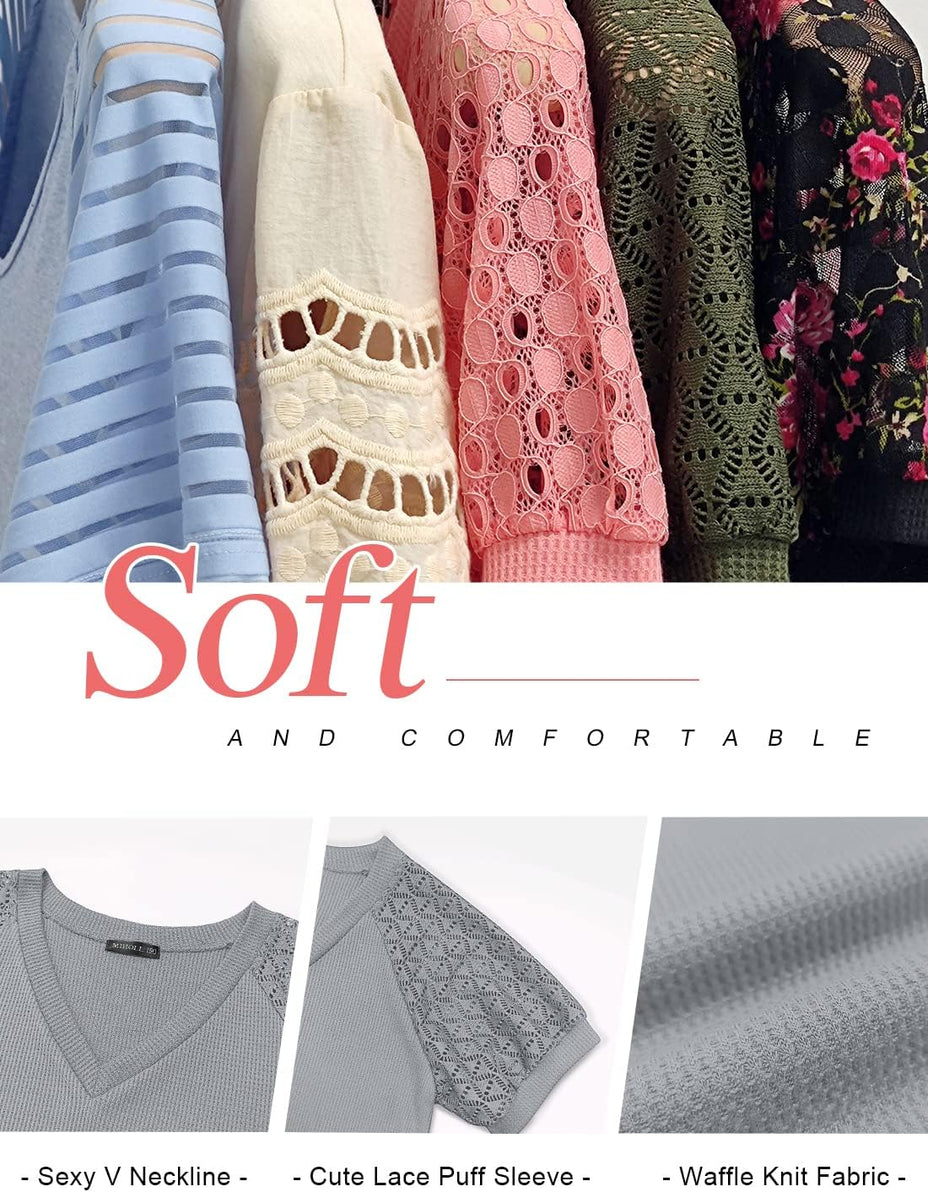 MIHOLL Women's Lace Short Sleeve V Neck Shirts Loose Casual Tops Tee Shirt