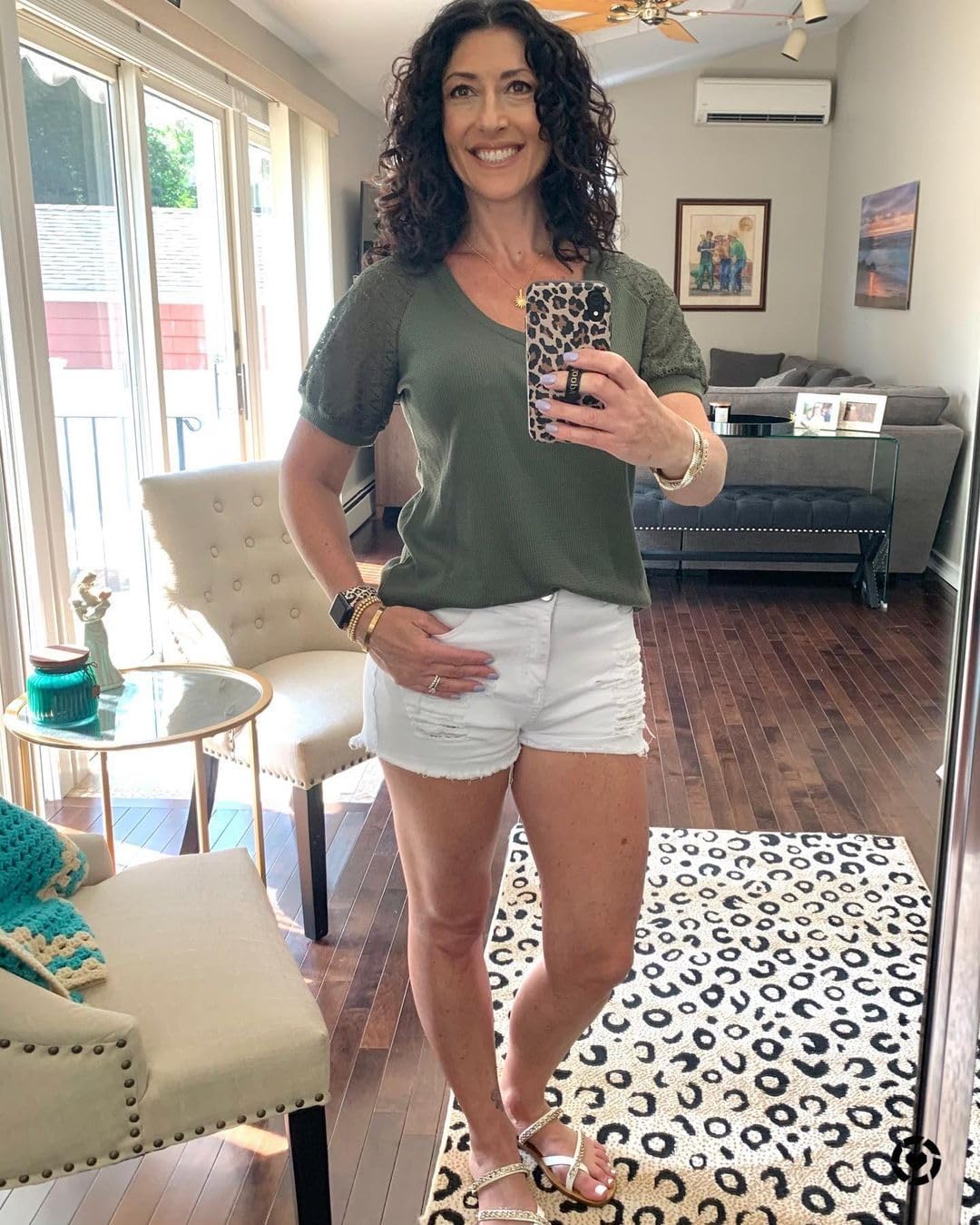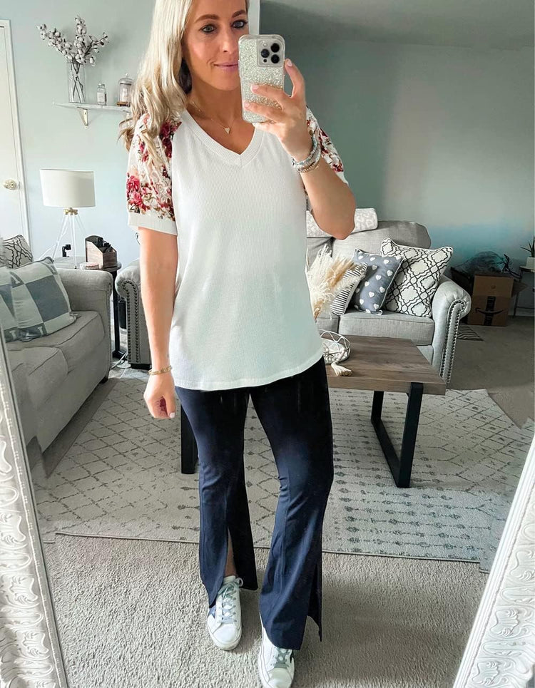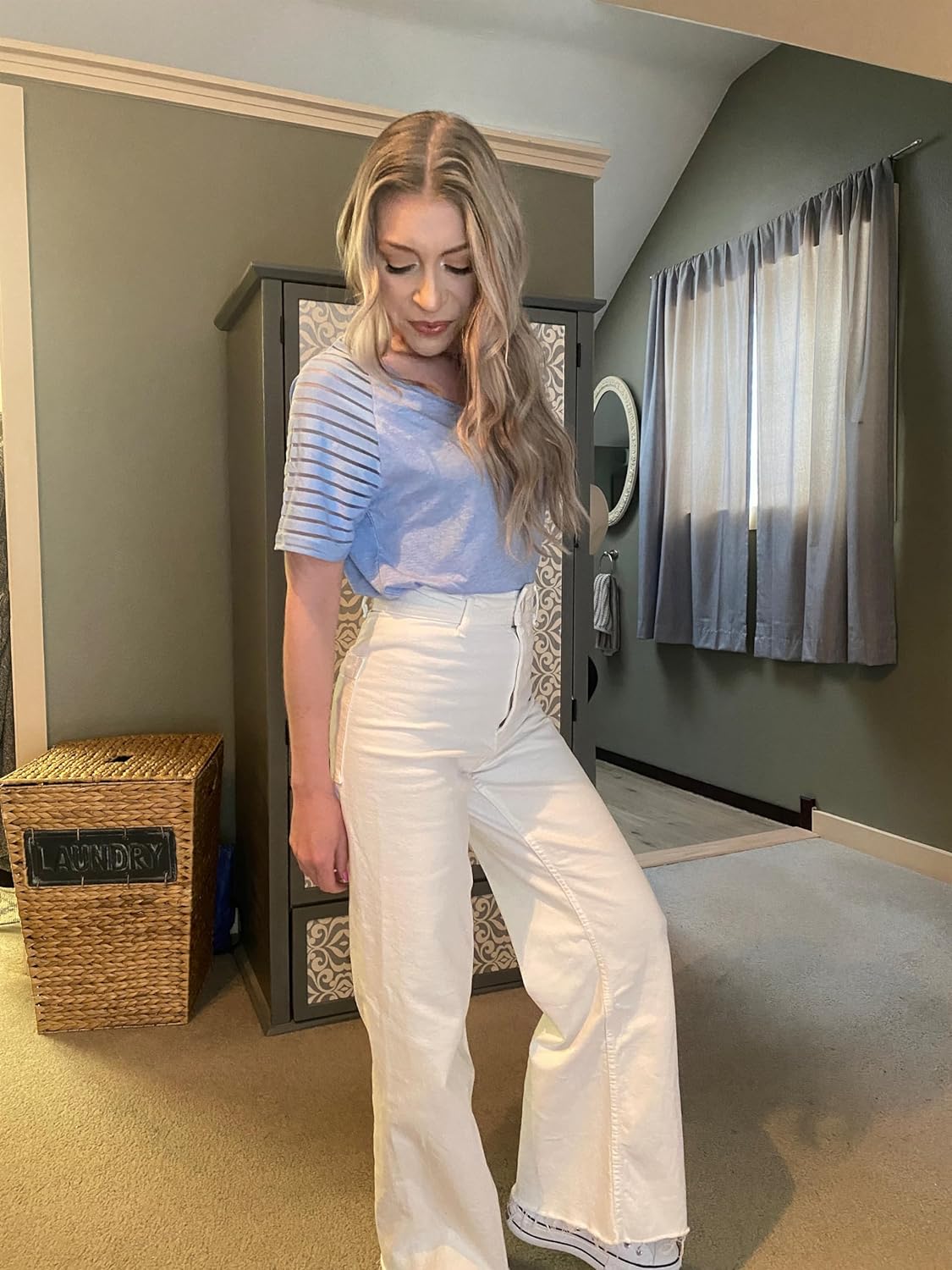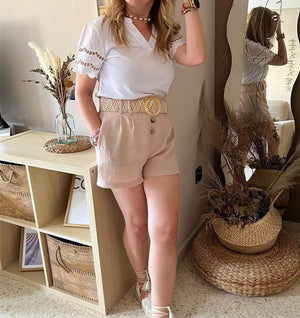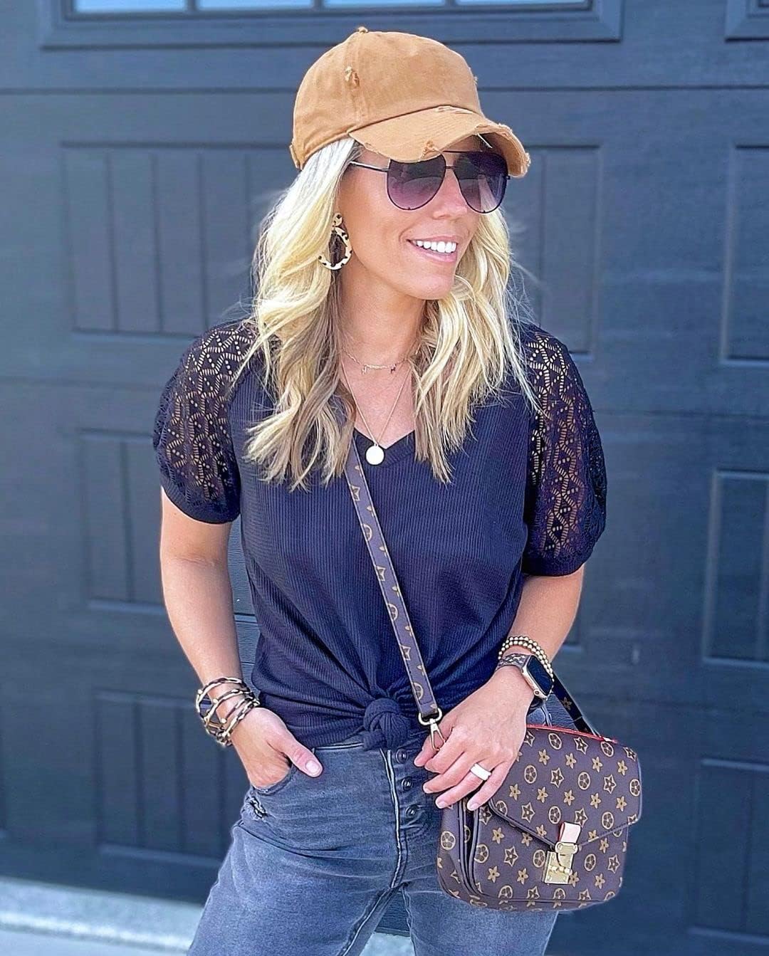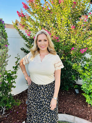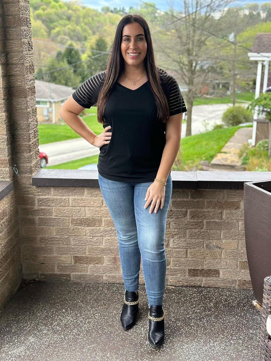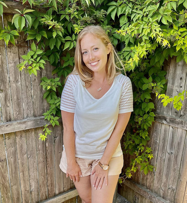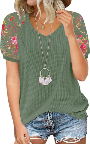 MIHOLL Women's Lace Short Sleeve V Neck Shirts Loose Casual Tops Tee Shirt
