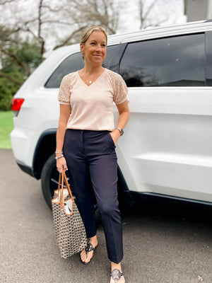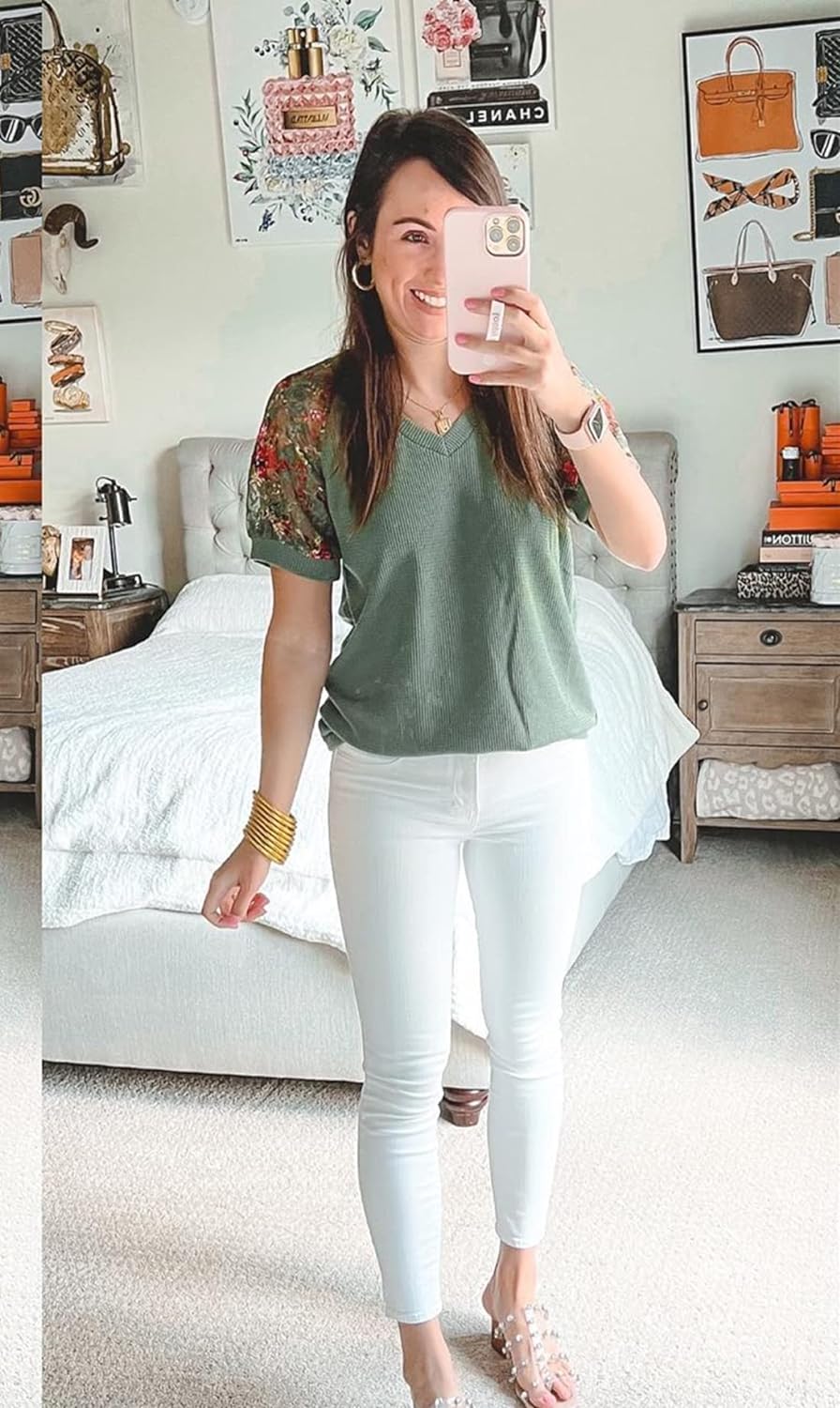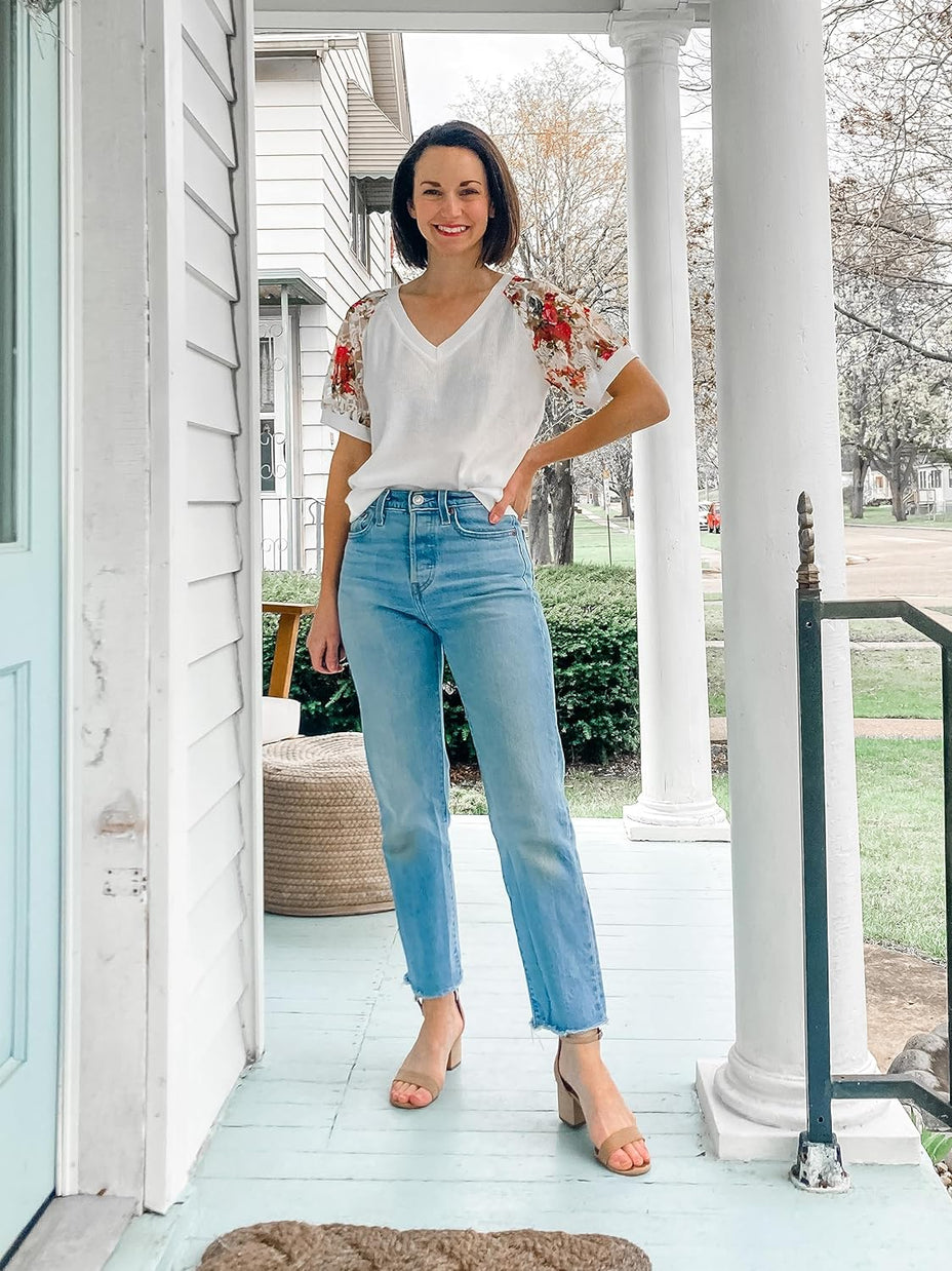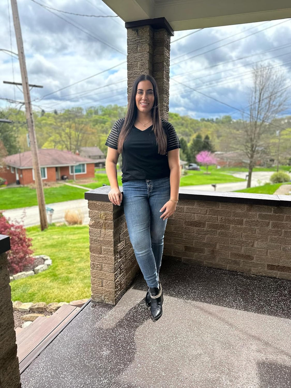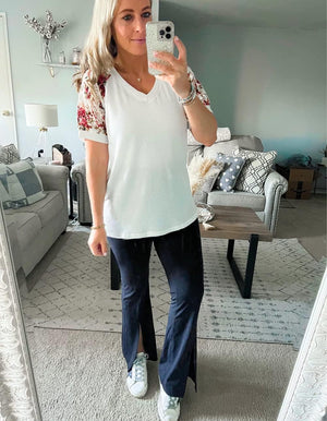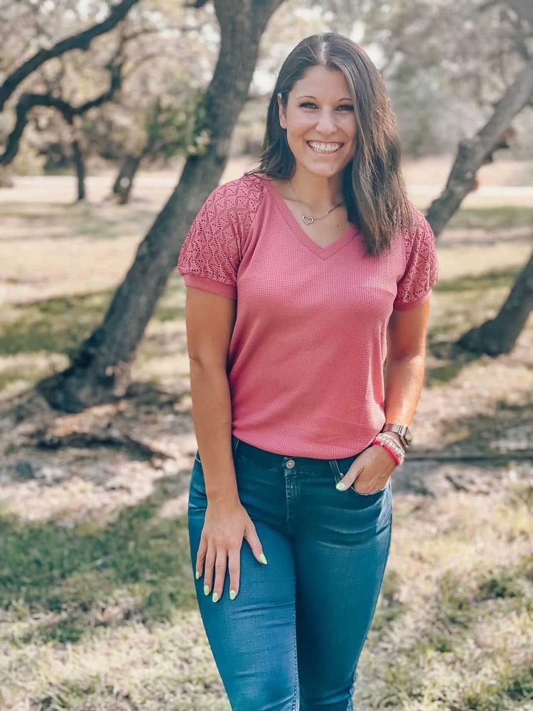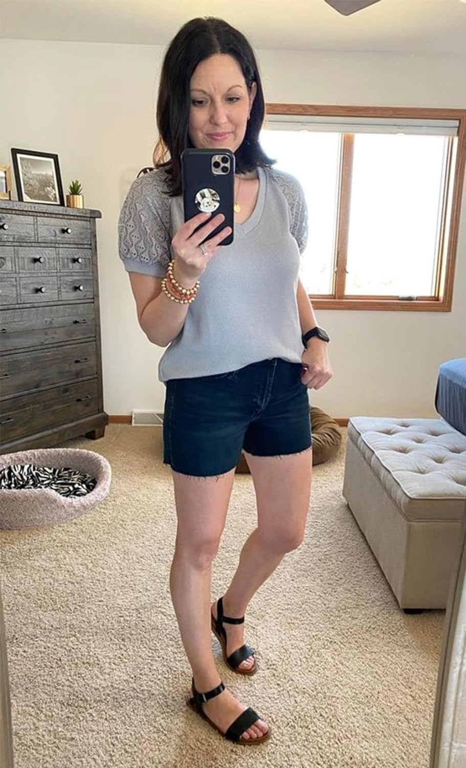 MIHOLL Women's Lace Short Sleeve V Neck Shirts Loose Casual Tops Tee Shirt