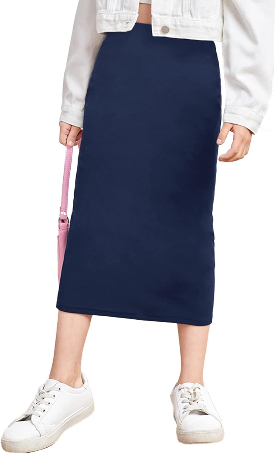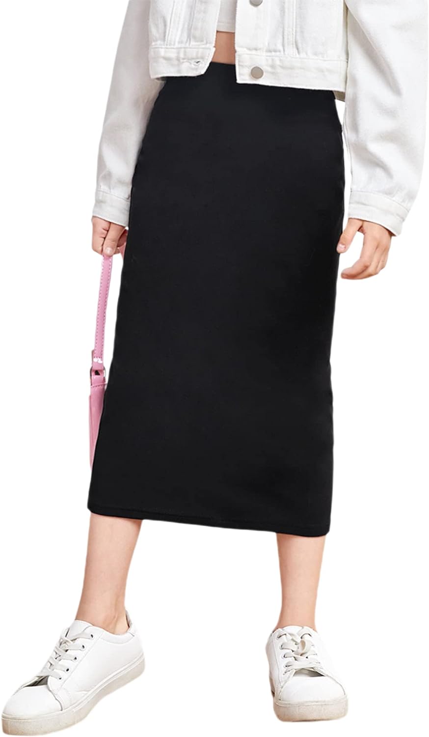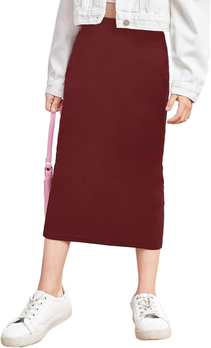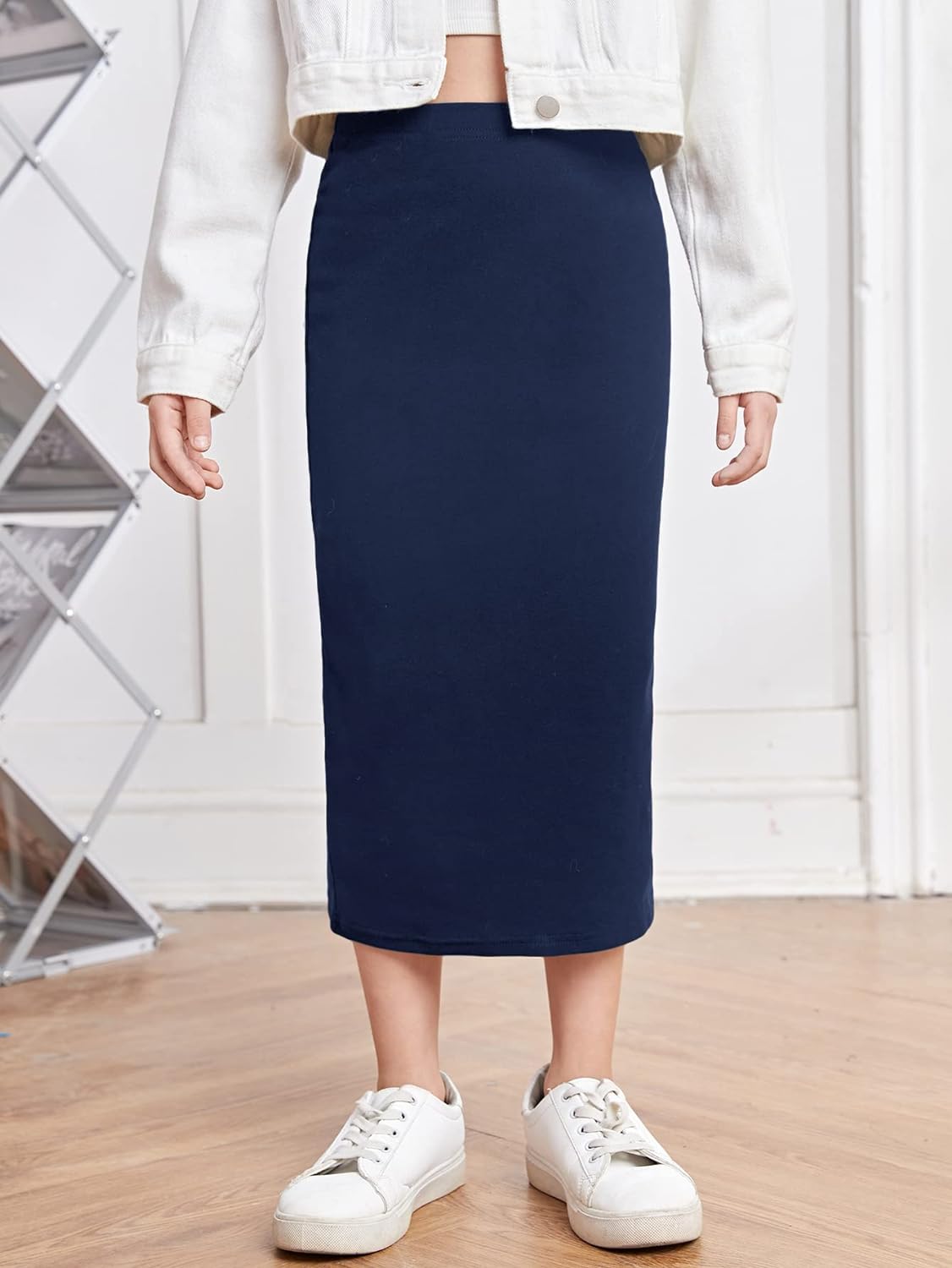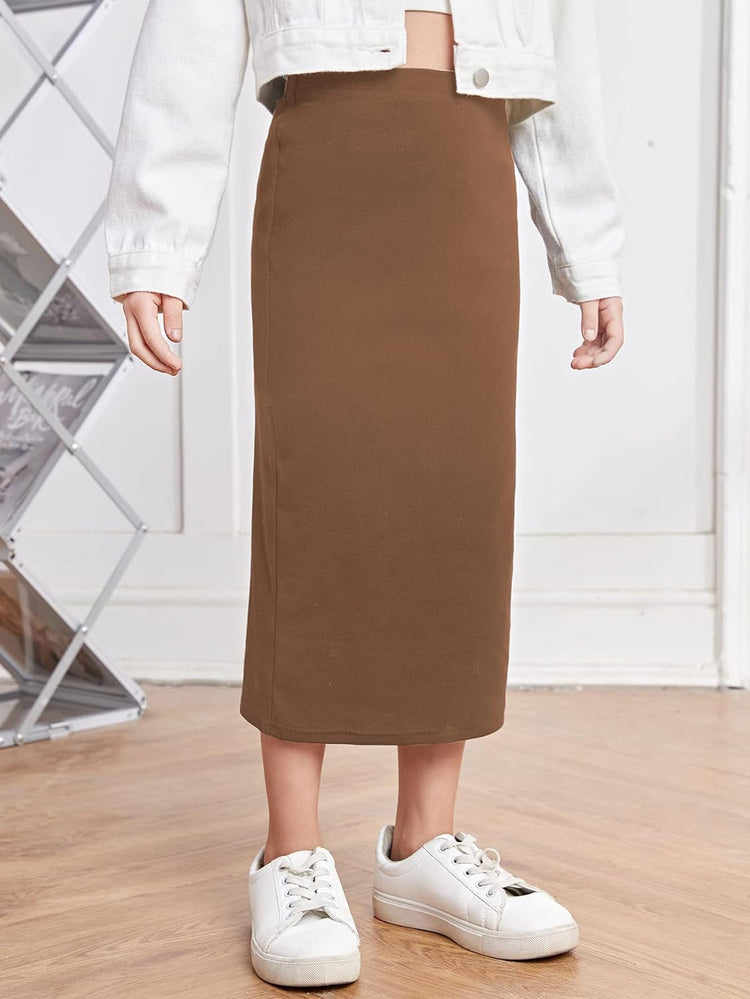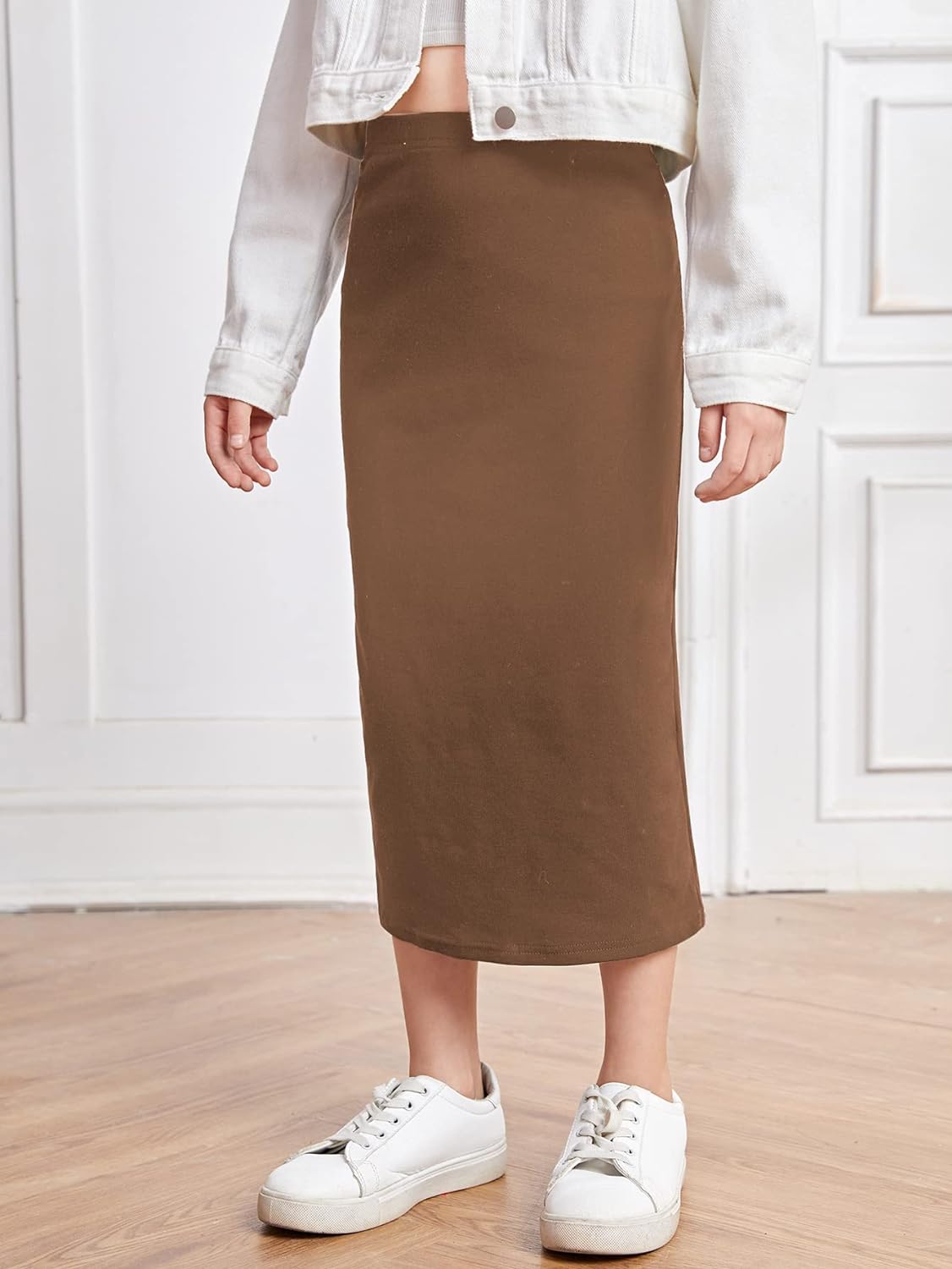 Milumia Girl's Casual High Waist Long Pencil Skirt Comfy Plain Straight Skirts