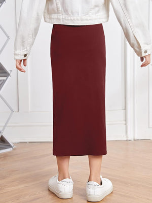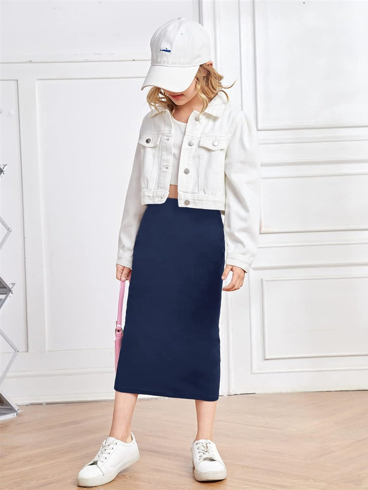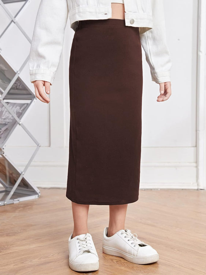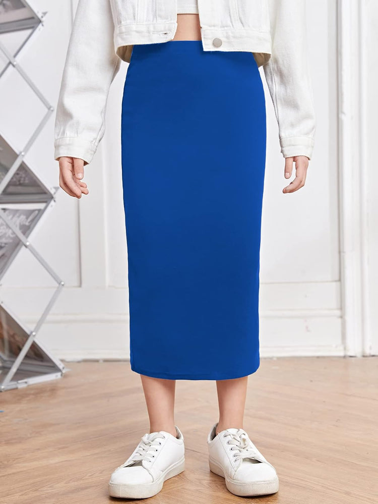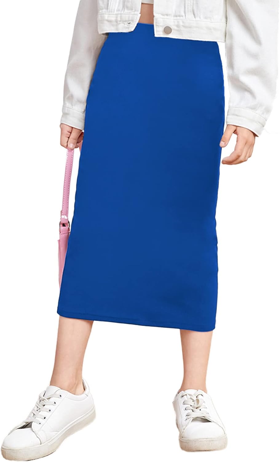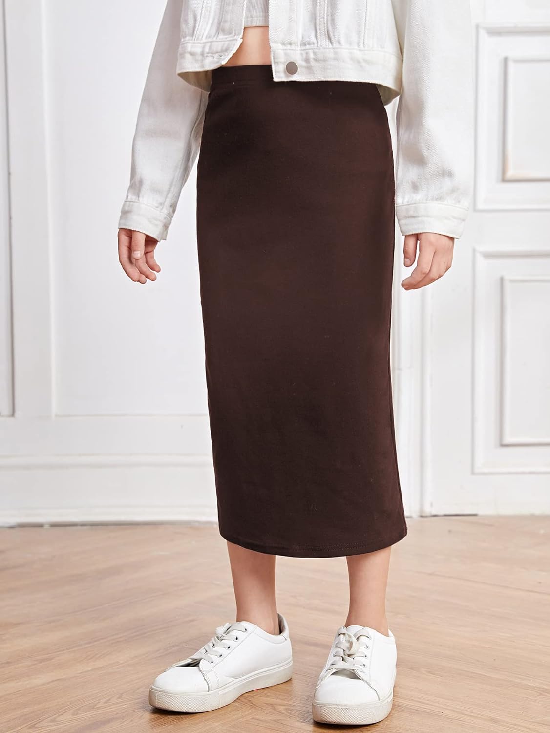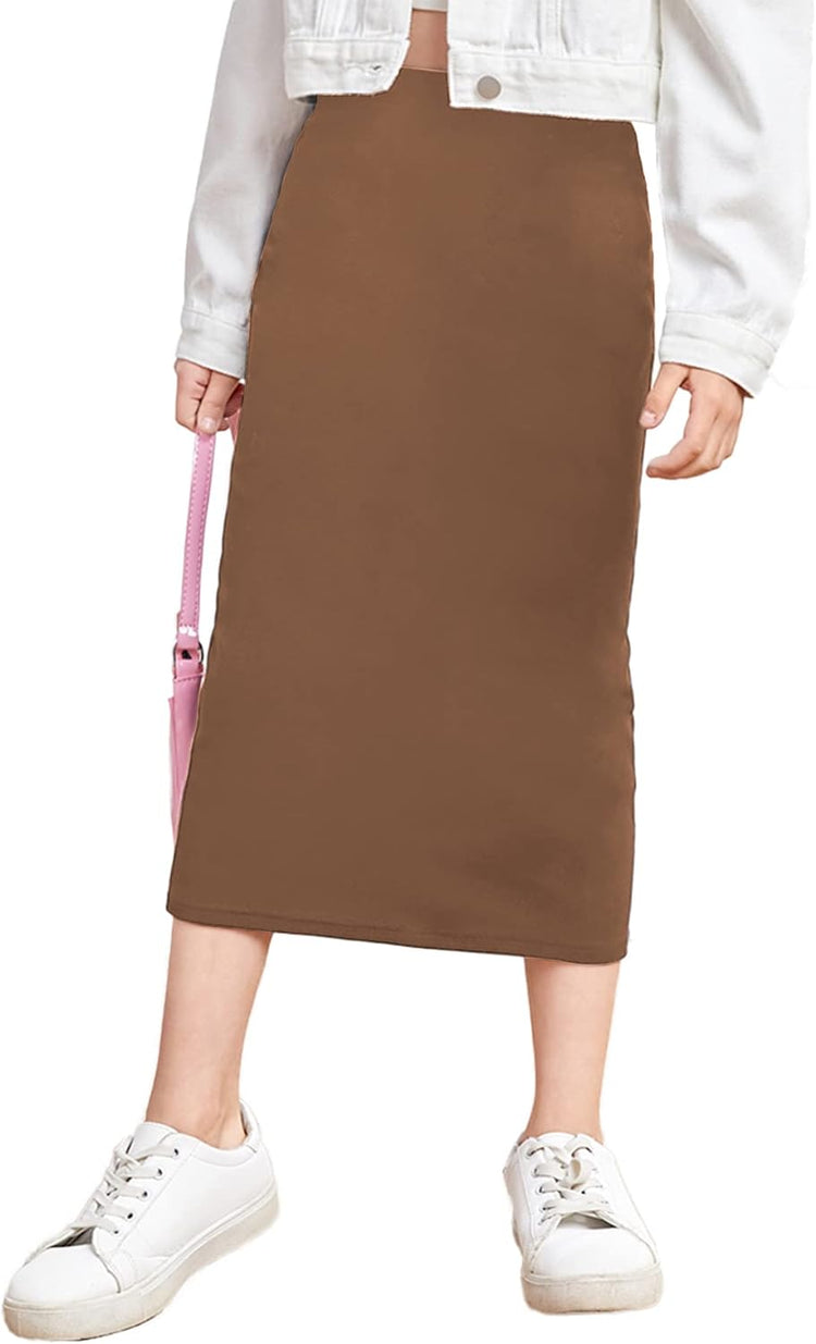 Milumia Girl's Casual High Waist Long Pencil Skirt Comfy Plain Straight Skirts