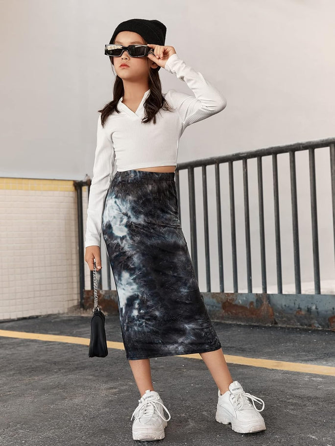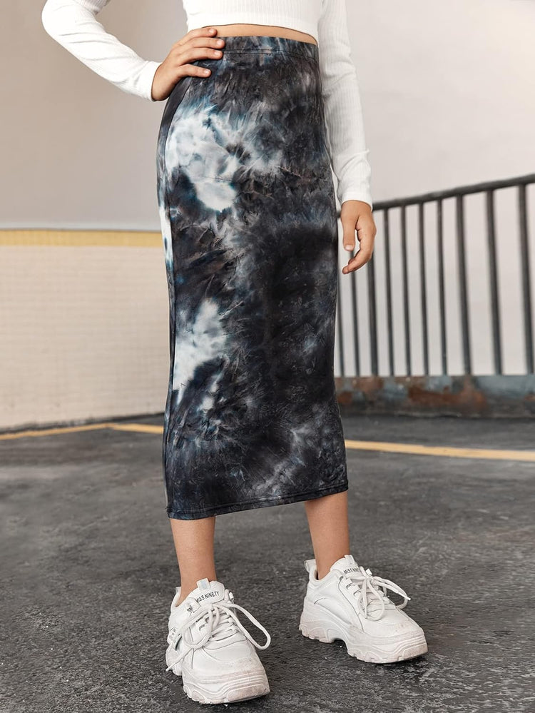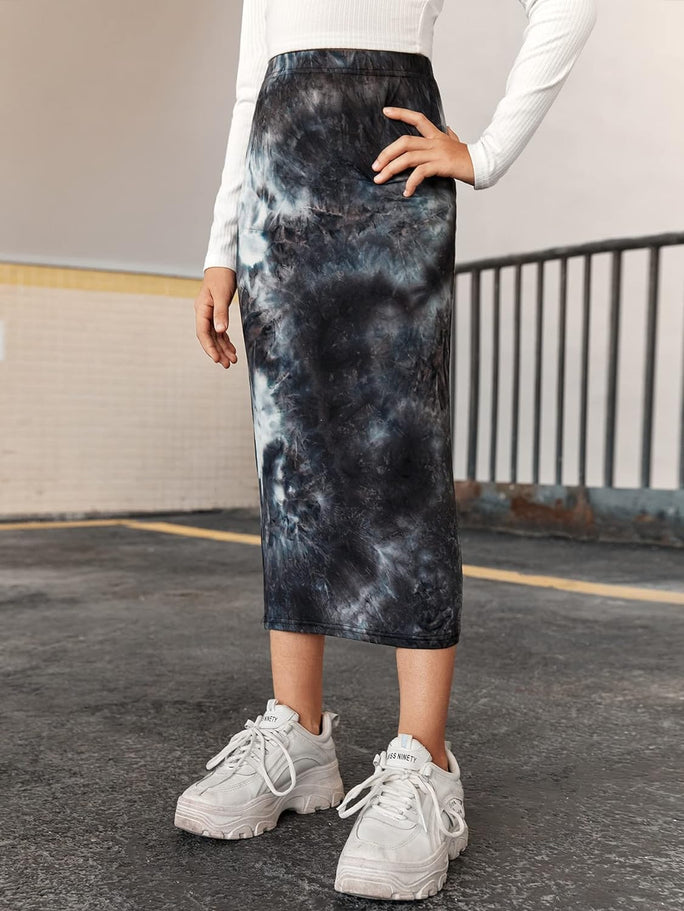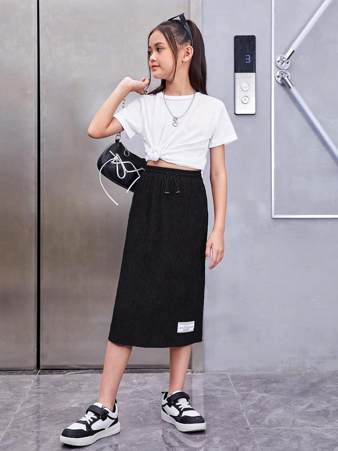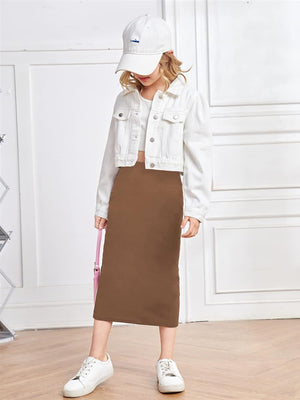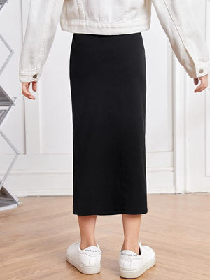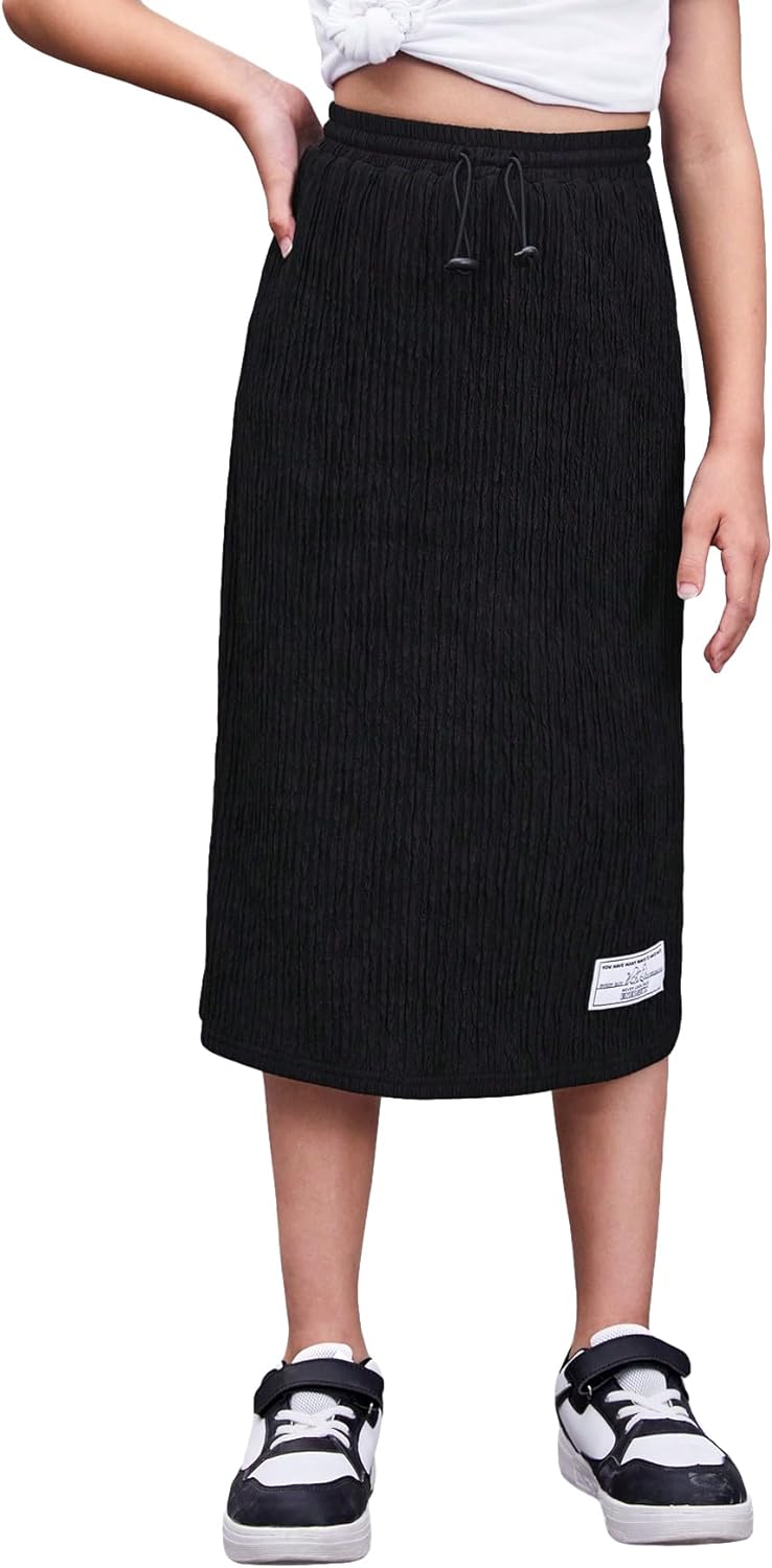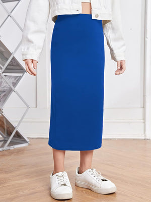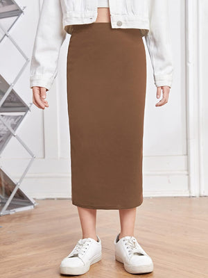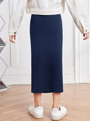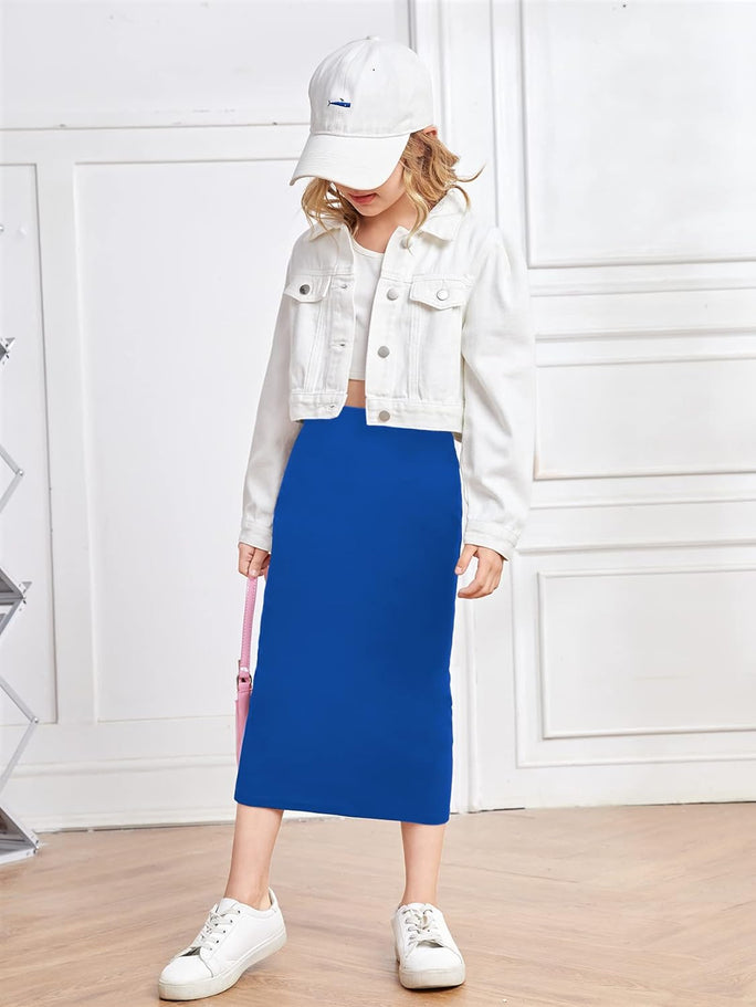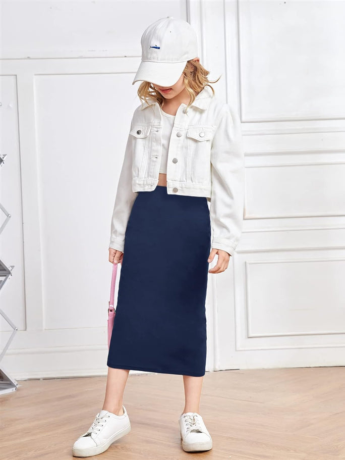 Milumia Girl's Casual High Waist Long Pencil Skirt Comfy Plain Straight Skirts