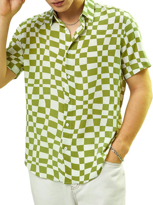 Milumia Men's Floral Button Down Hawaiian Shirt Lapel Neck Short Sleeve Aloha Beach Shirts