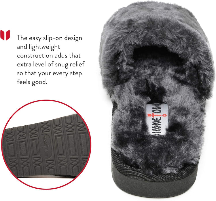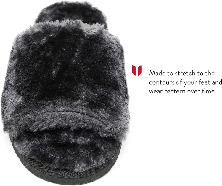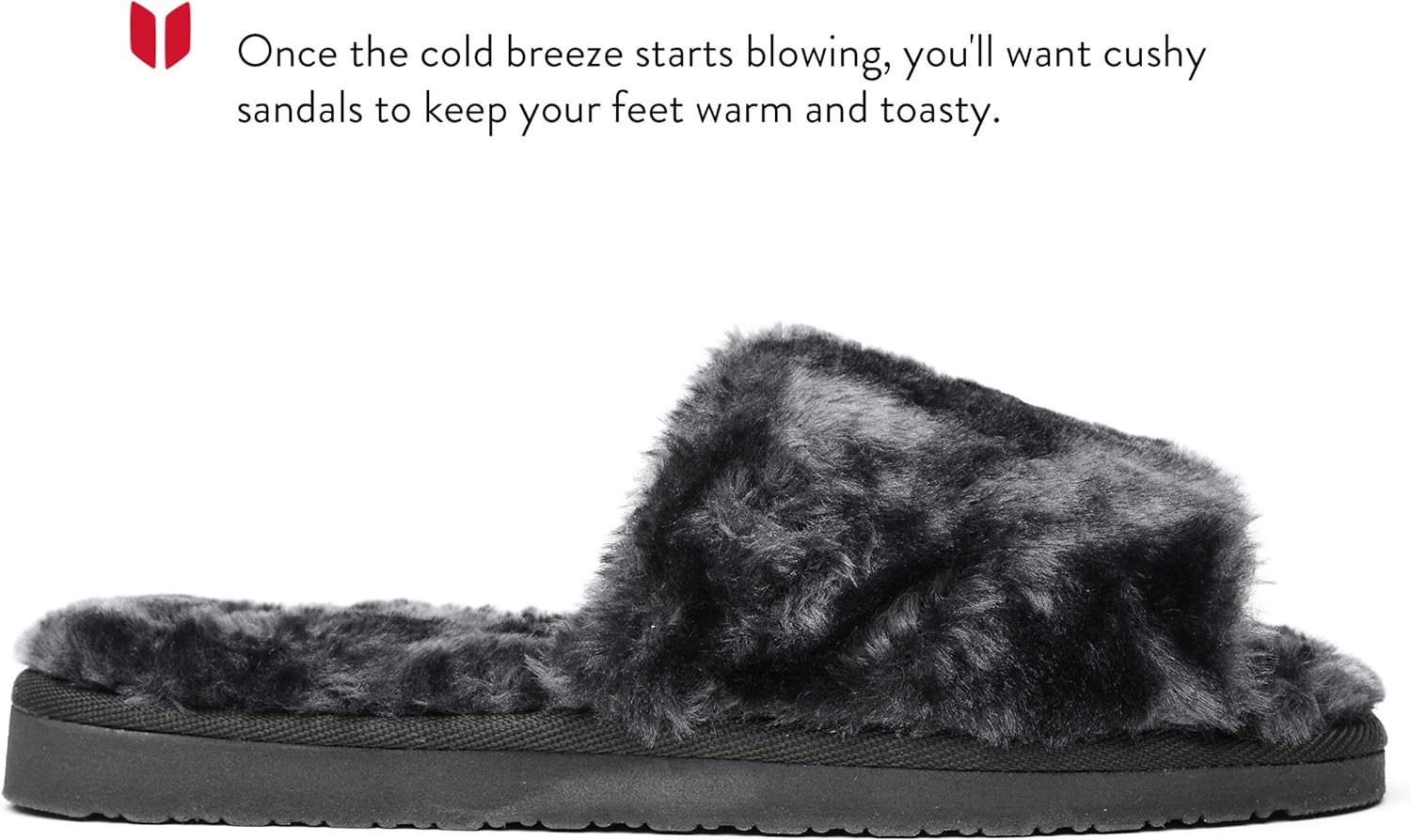 Constructed with highly profiled rubber sole for traction, these cozy slipper sandals are perfect for indoor use. With its simple slip-on design and lightweight flexibility, each pair of Lolo slipper sandals for women promises comfortable shoes at home. Specially constructed with faux fur upper and soft pile lining, each pair of these slipper sandals ensures you are cushioned every step, comfortable and cozy. It adapts to the contours of your feet and the wearing pattern to keep the fit perfectly tight.