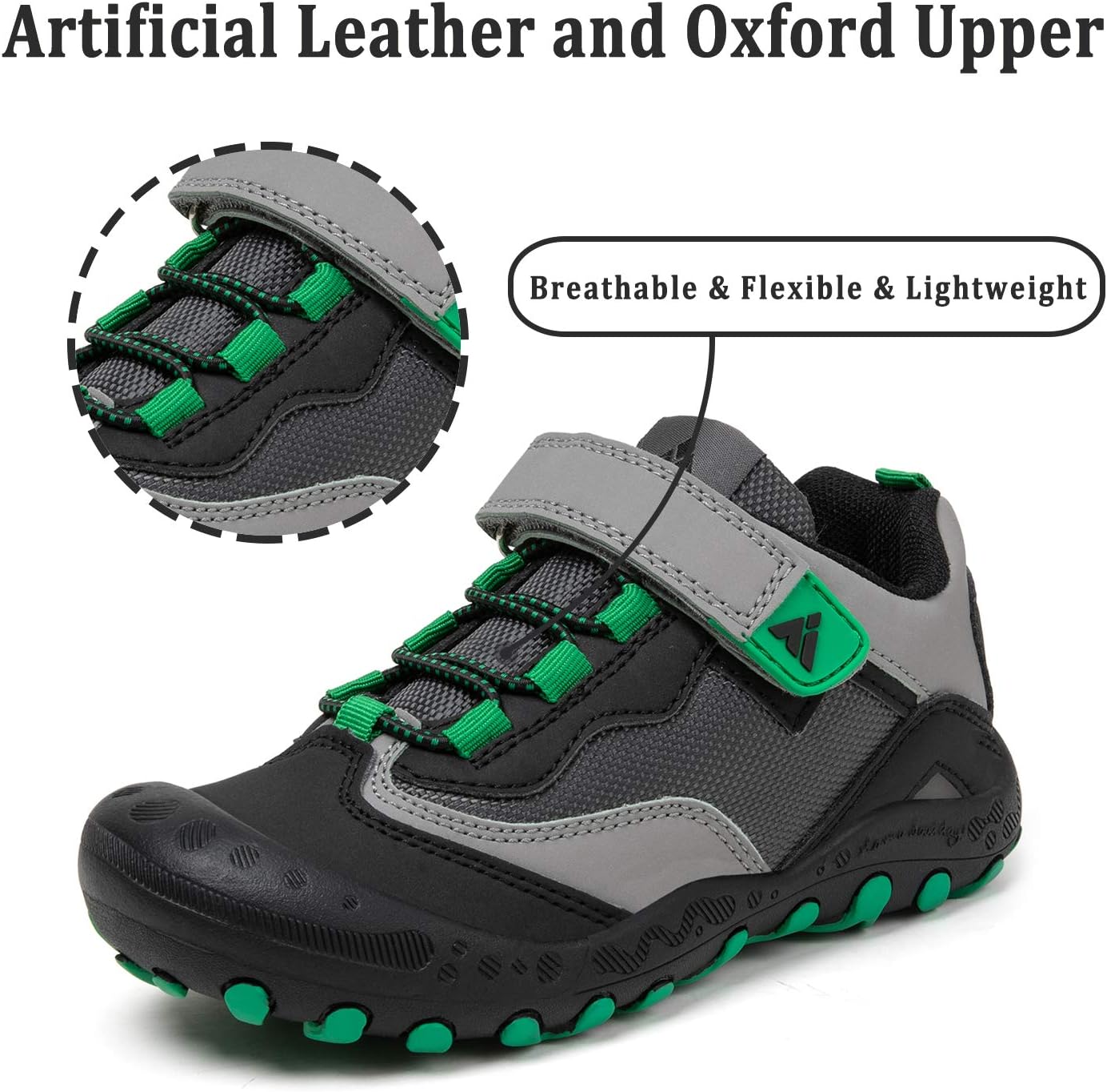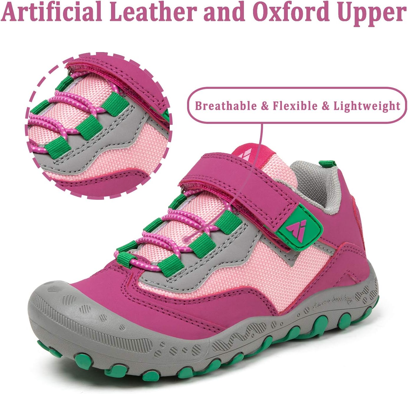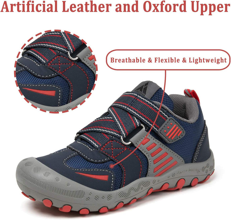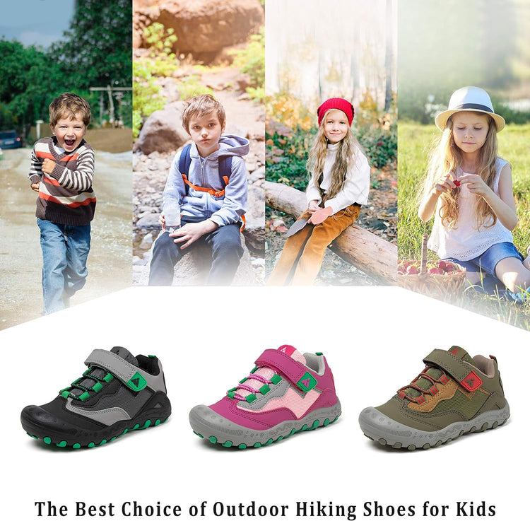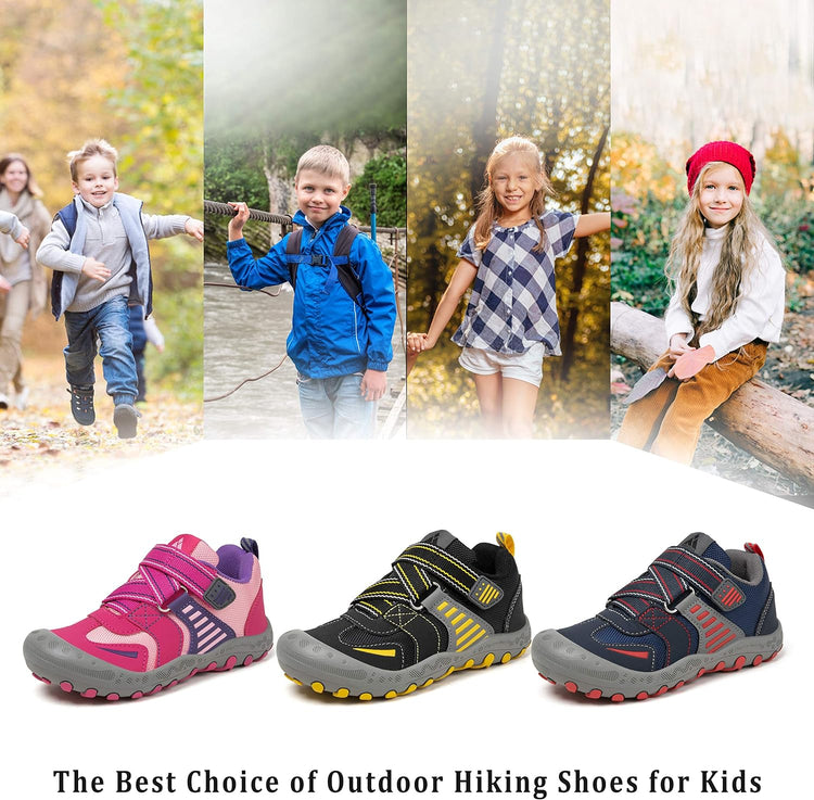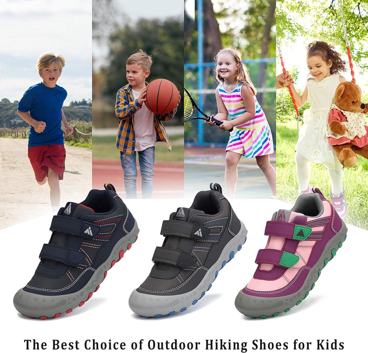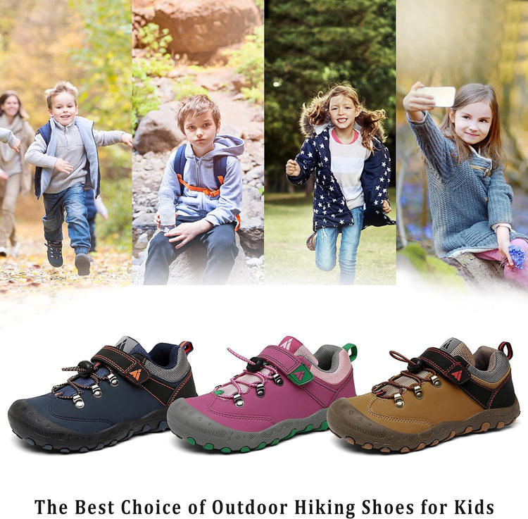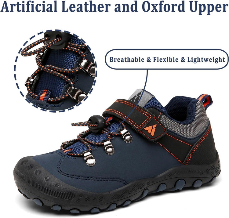 Comfort Great Hiking Trekking Walking Sneakers for Kids Boys Girls !* The vamp of hiking sneakers are made of good qulity nubuck leather and oxford upper and breathable Mesh fabric are more comfort, flexible and lightweight.