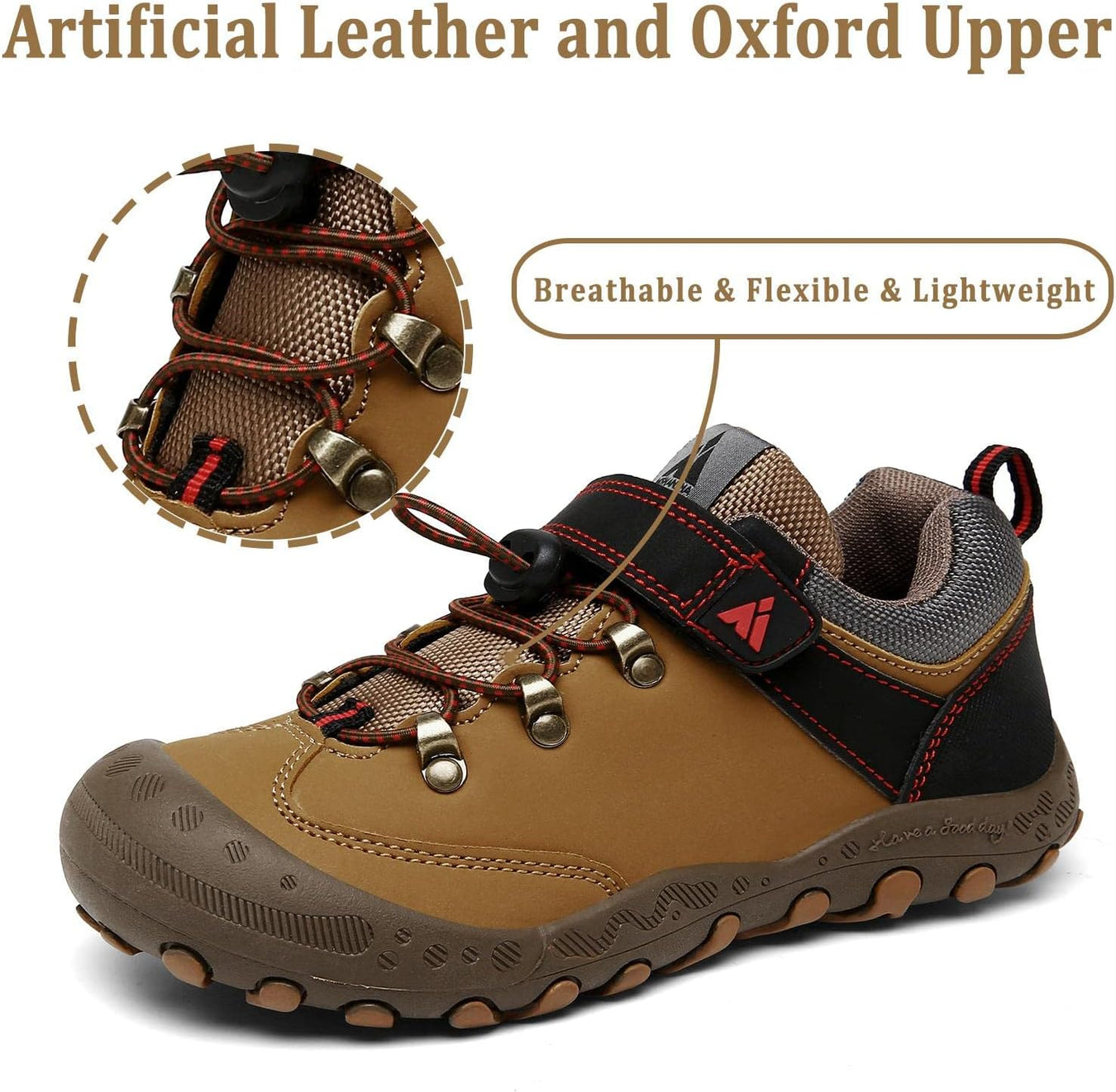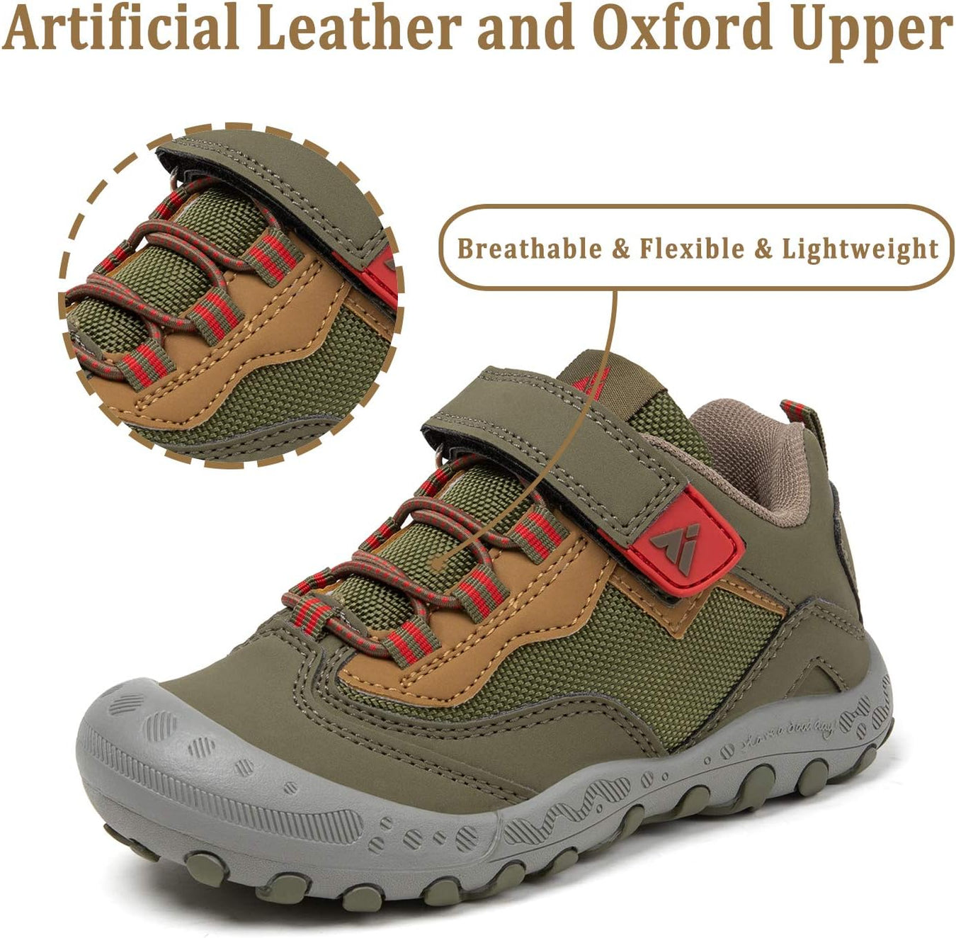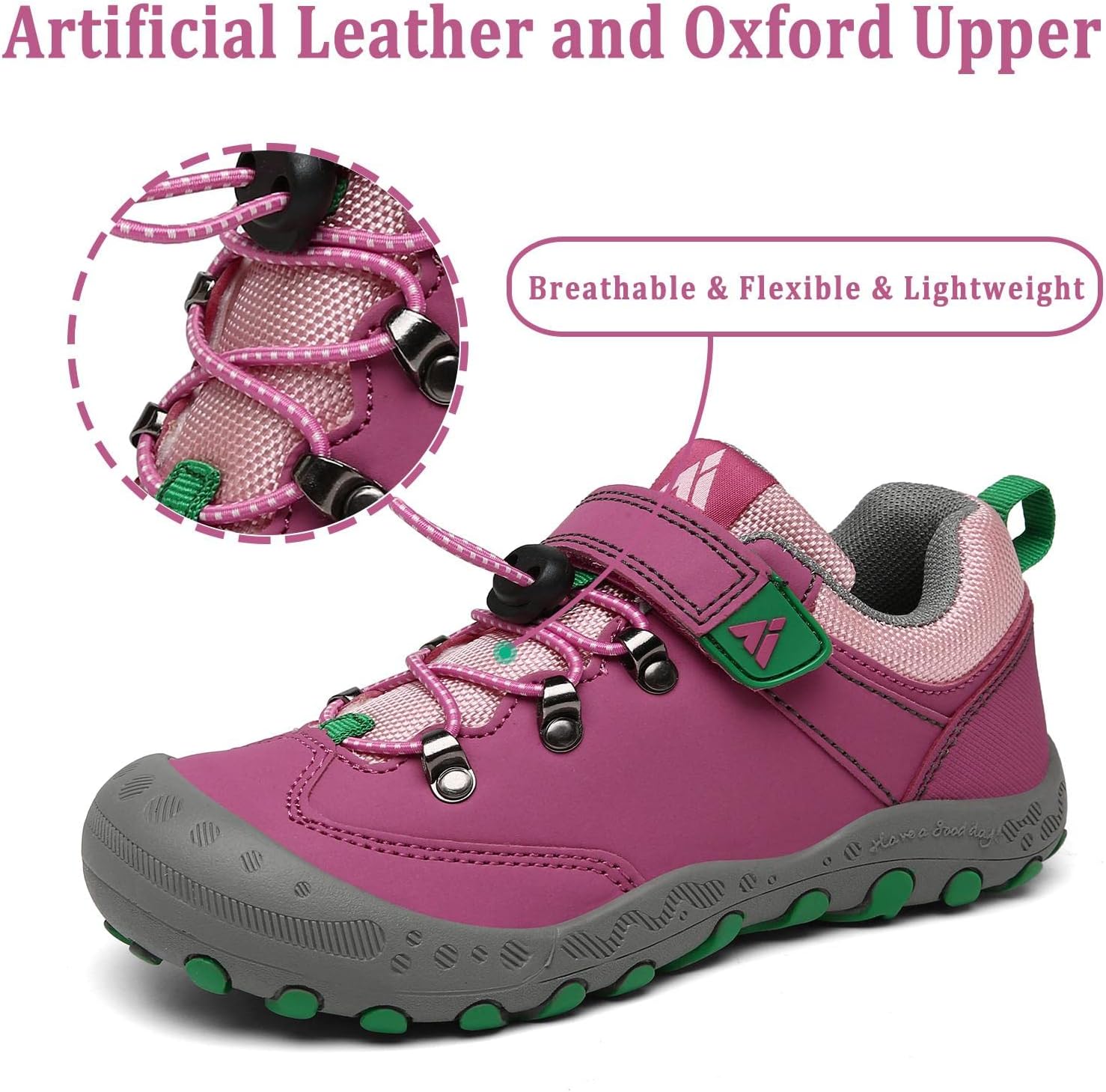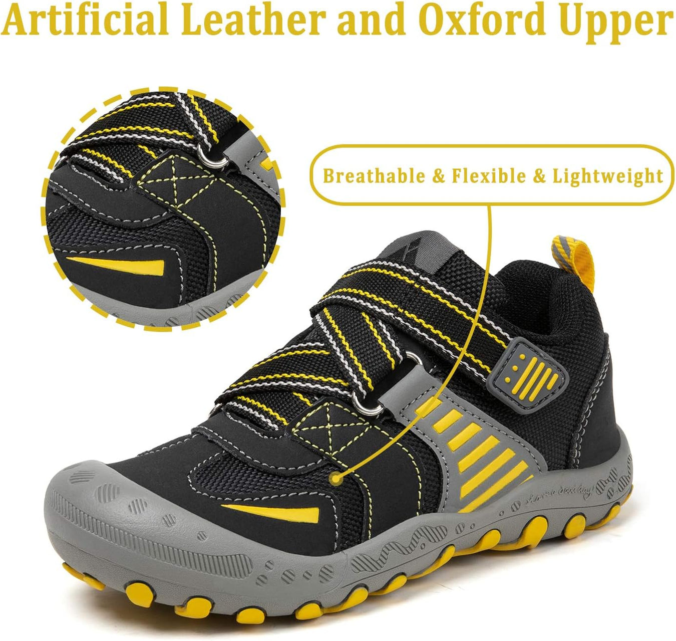 Comfort Great Hiking Trekking Walking Sneakers for Kids Boys Girls !* The vamp of hiking sneakers are made of good qulity nubuck leather and oxford upper and breathable Mesh fabric are more comfort, flexible and lightweight.