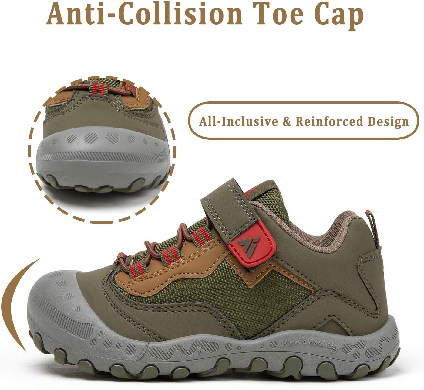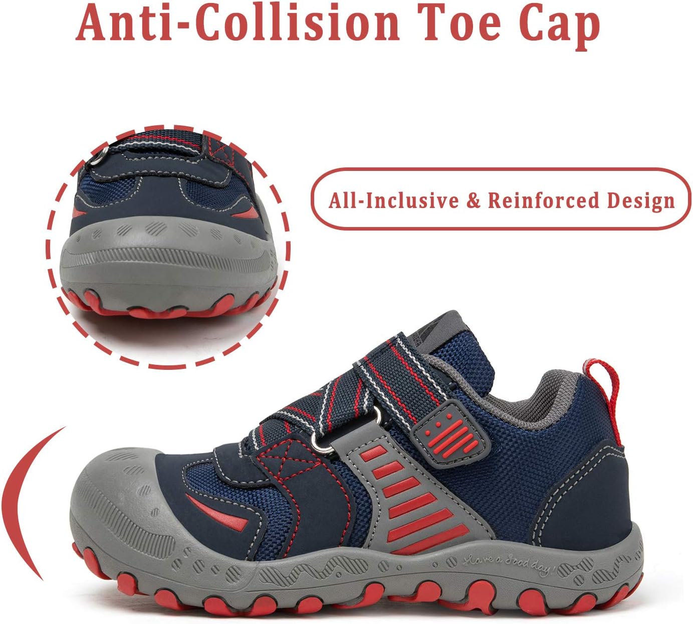 * The toddler trail shoes along with rubber anti-collision and anti-skid sole provide child more safety. Ideal for hiking, playground playing, trekking, walking etc kinds of outdoor activities.