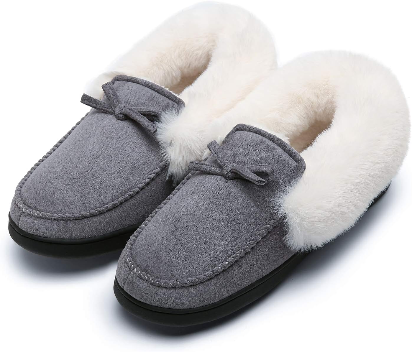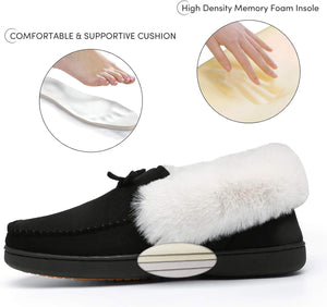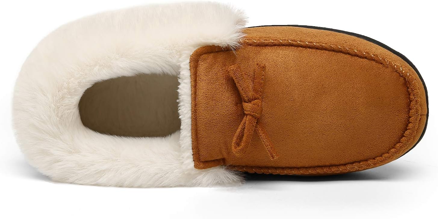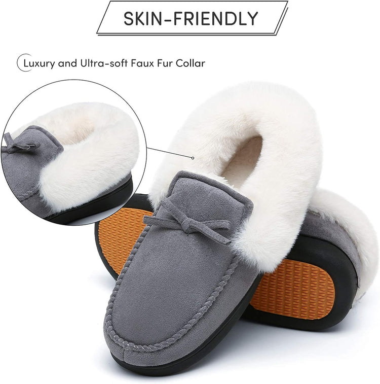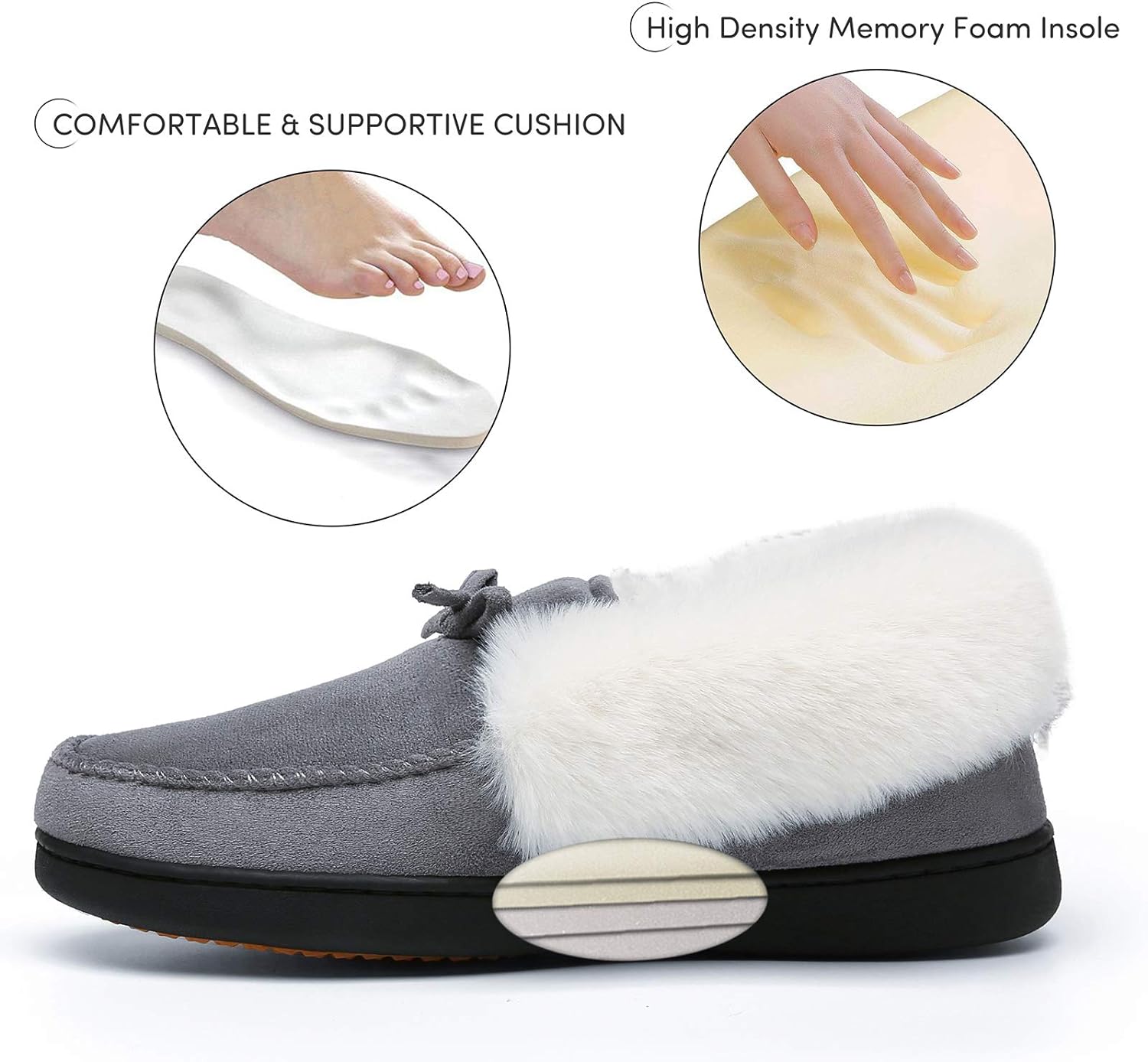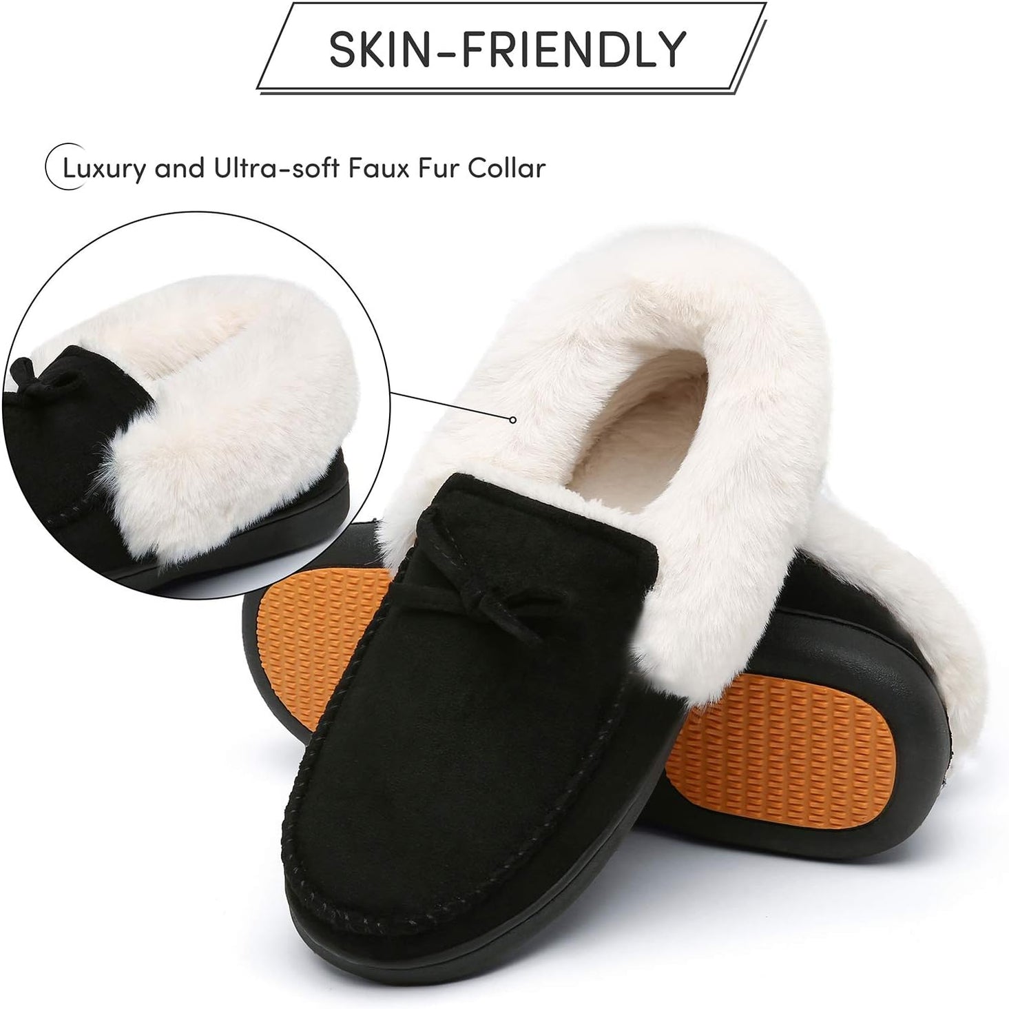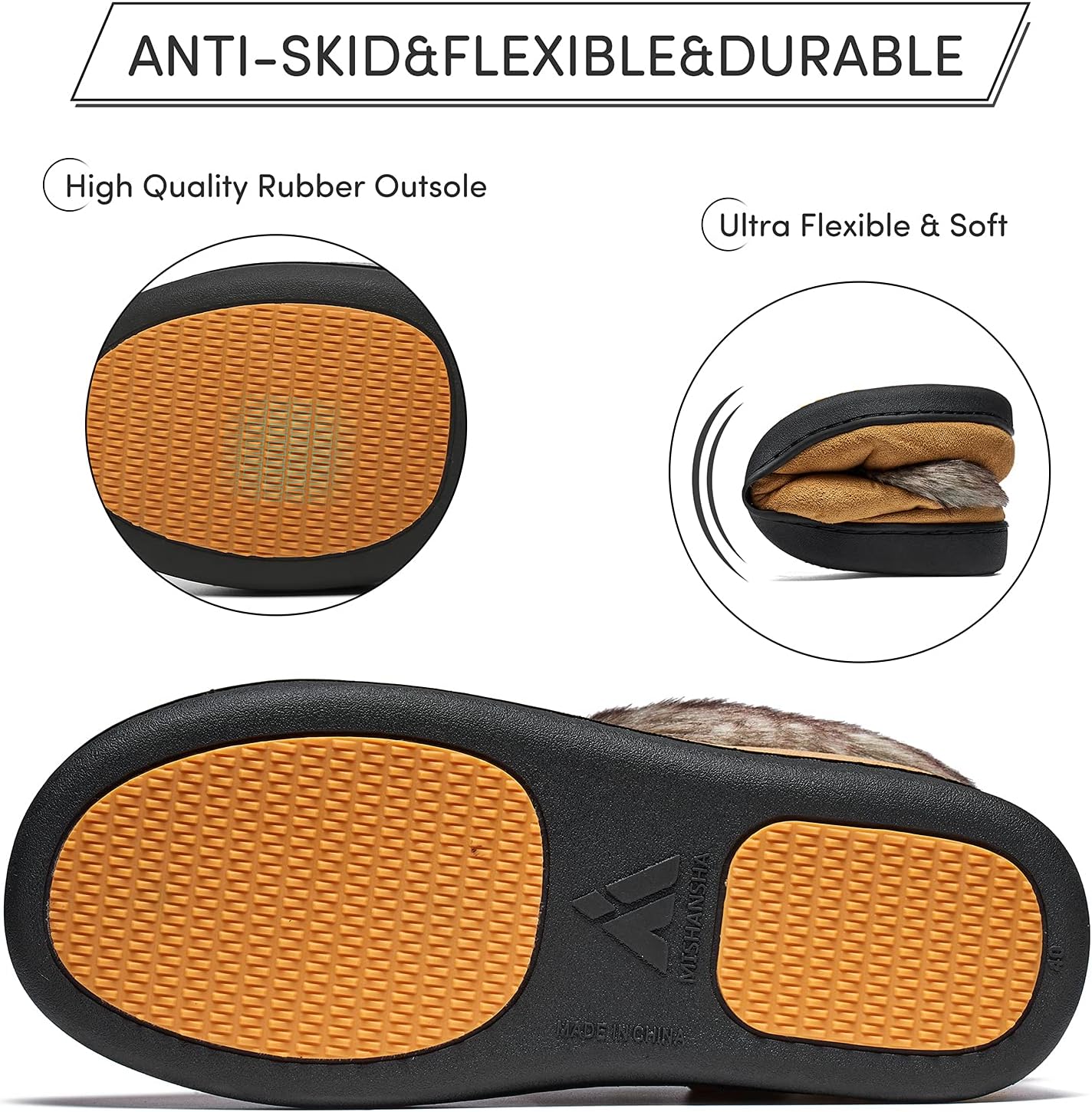Mishansha Womens Comfy Moccasin Slippers Fuzzy Warm Fleece Lining House Shoes with Anti-Skid Indoor/Outdoor Rubber Sole