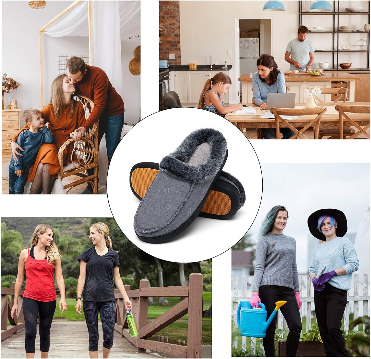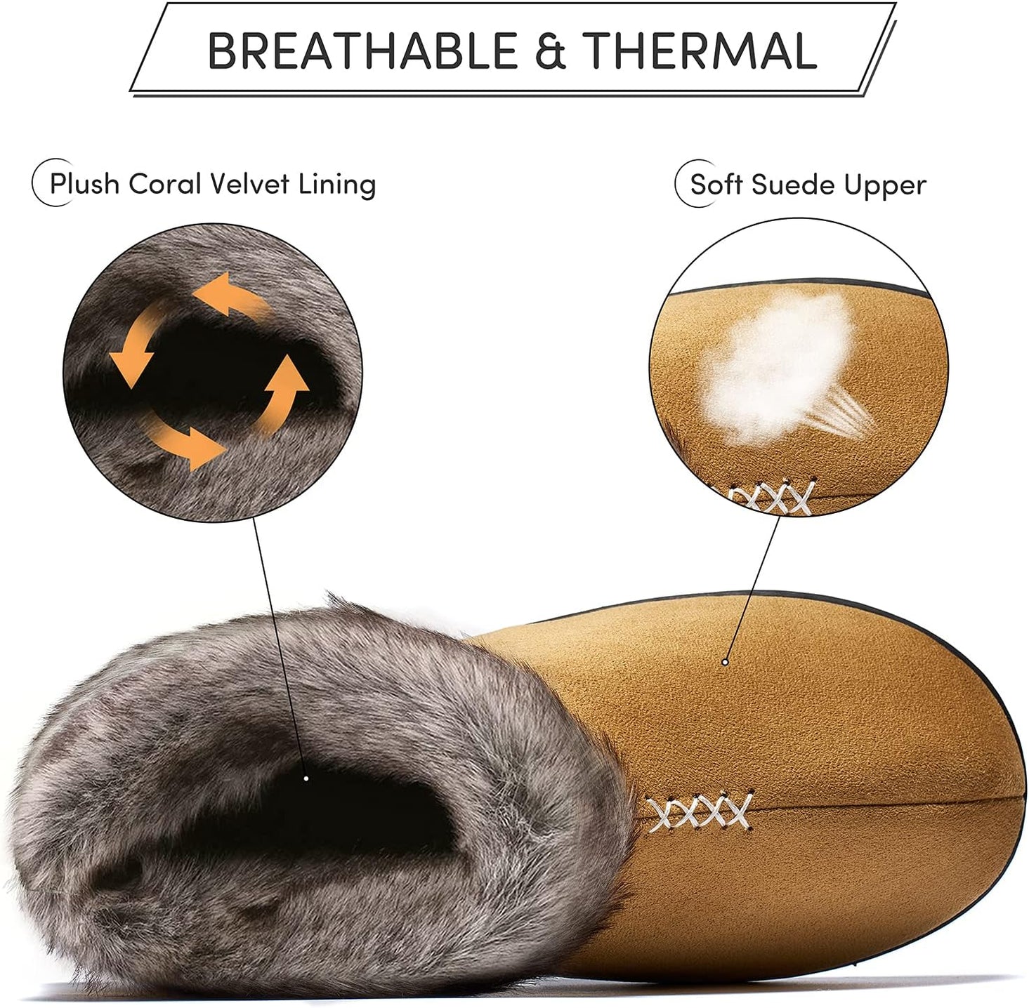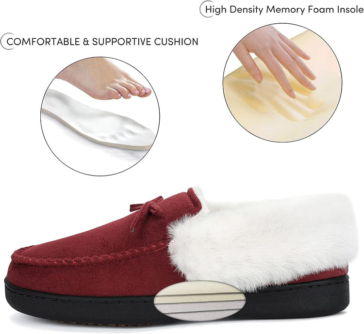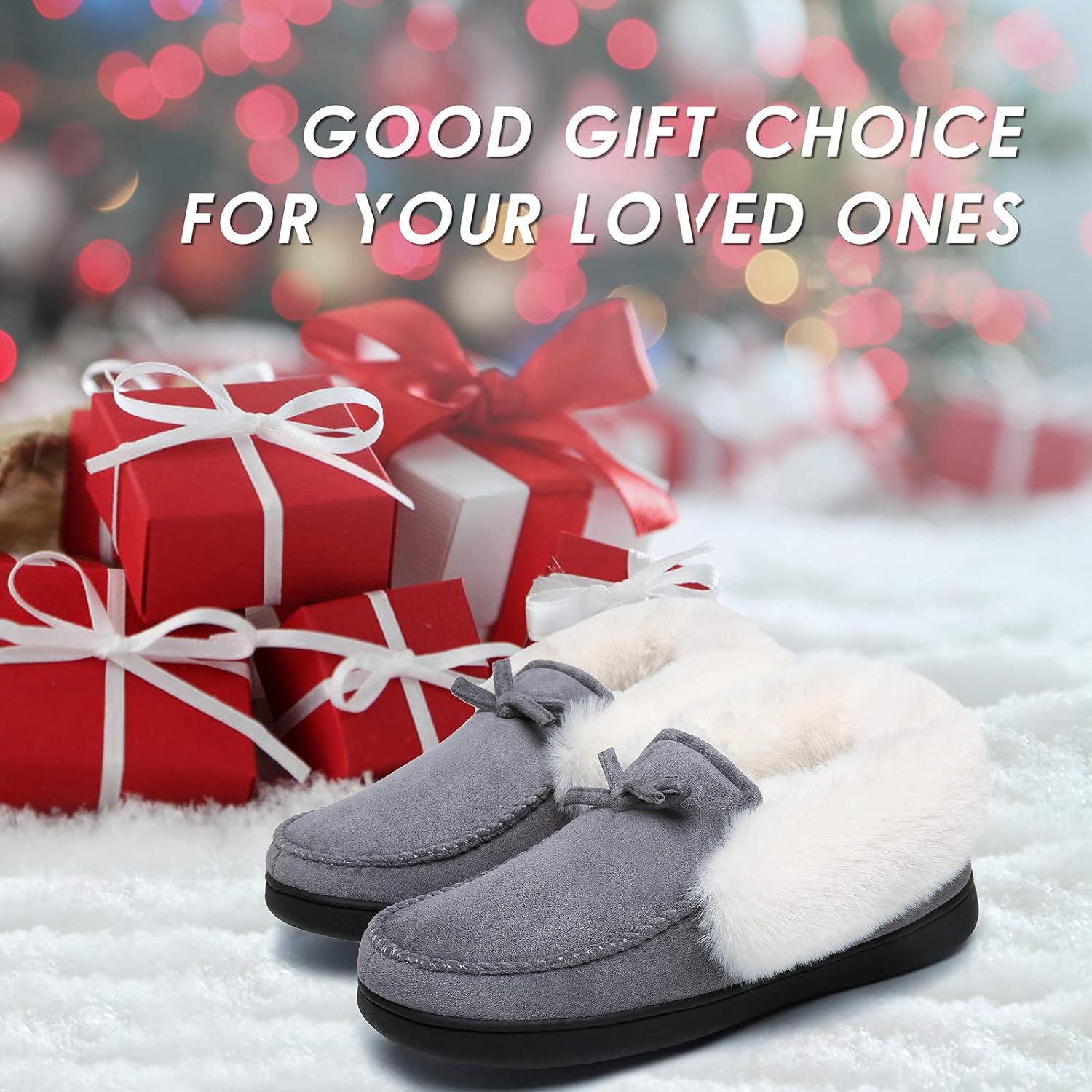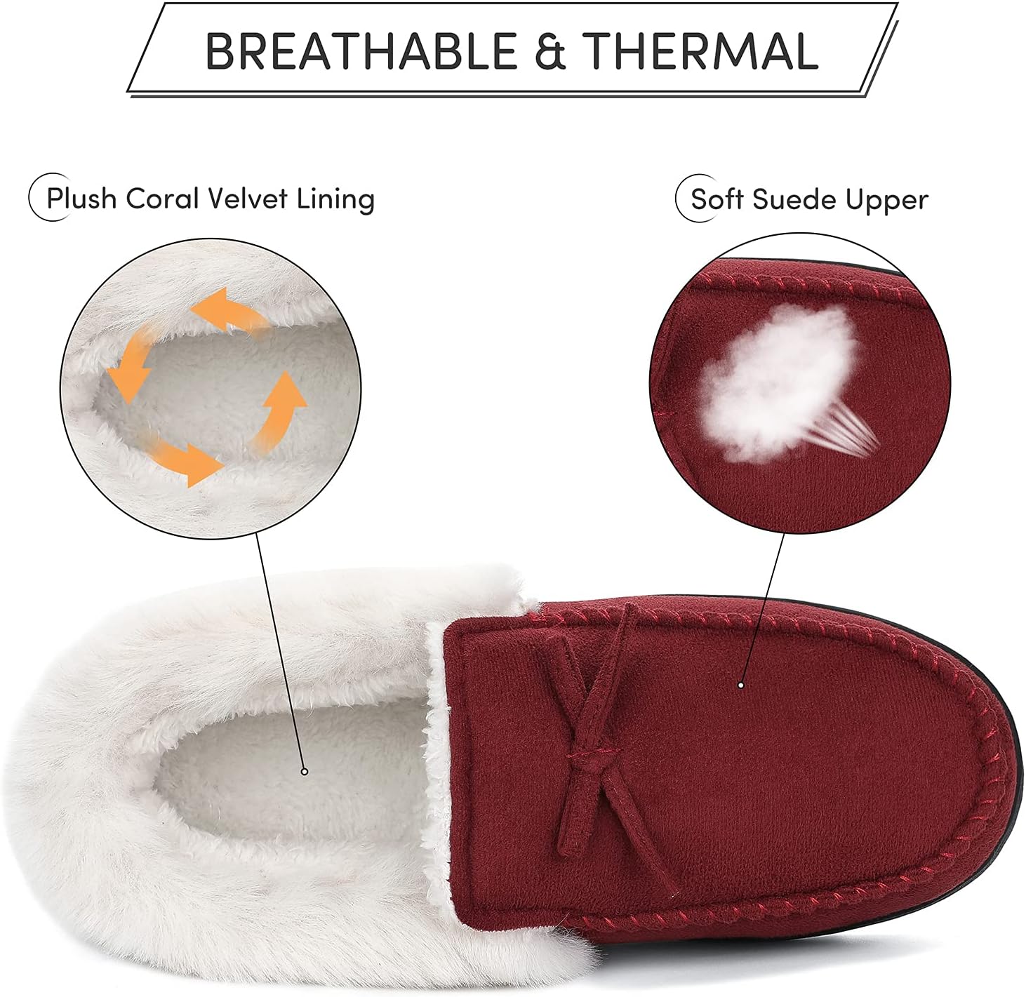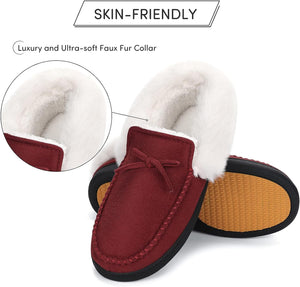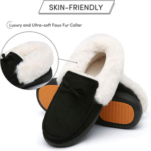 Mishansha Womens Comfy Moccasin Slippers Fuzzy Warm Fleece Lining House Shoes with Anti-Skid Indoor/Outdoor Rubber Sole
