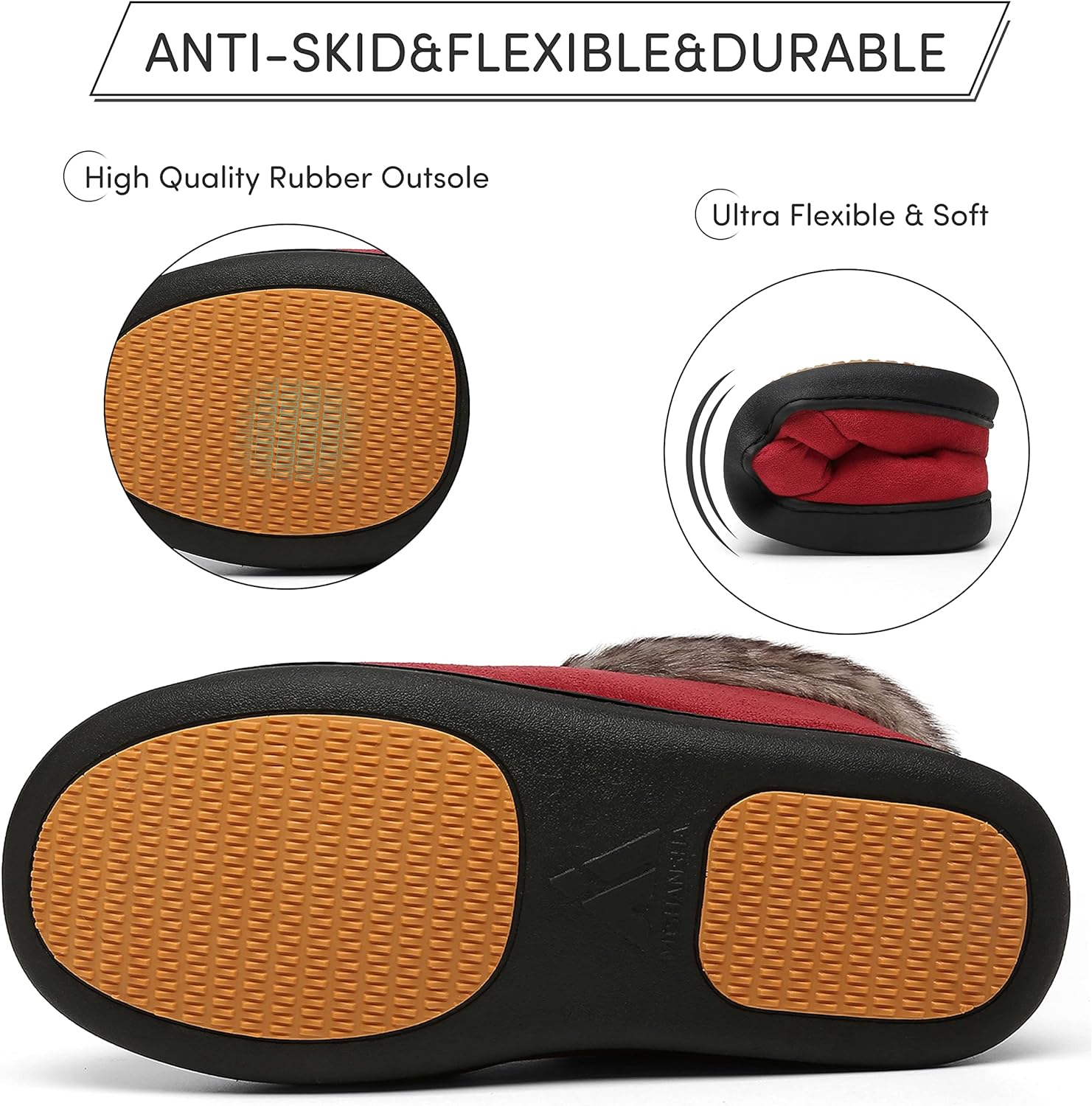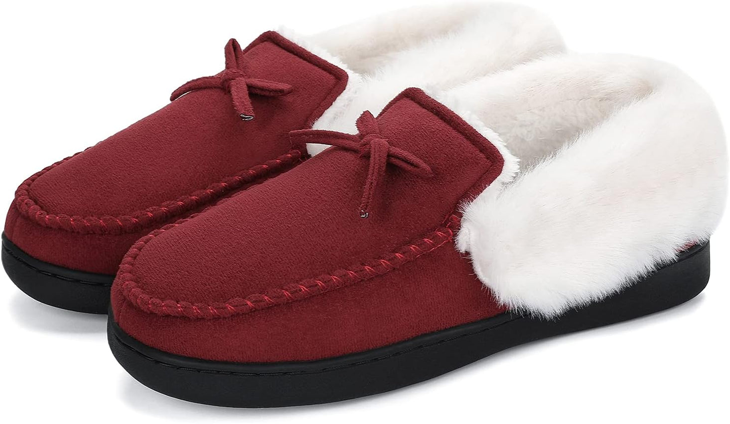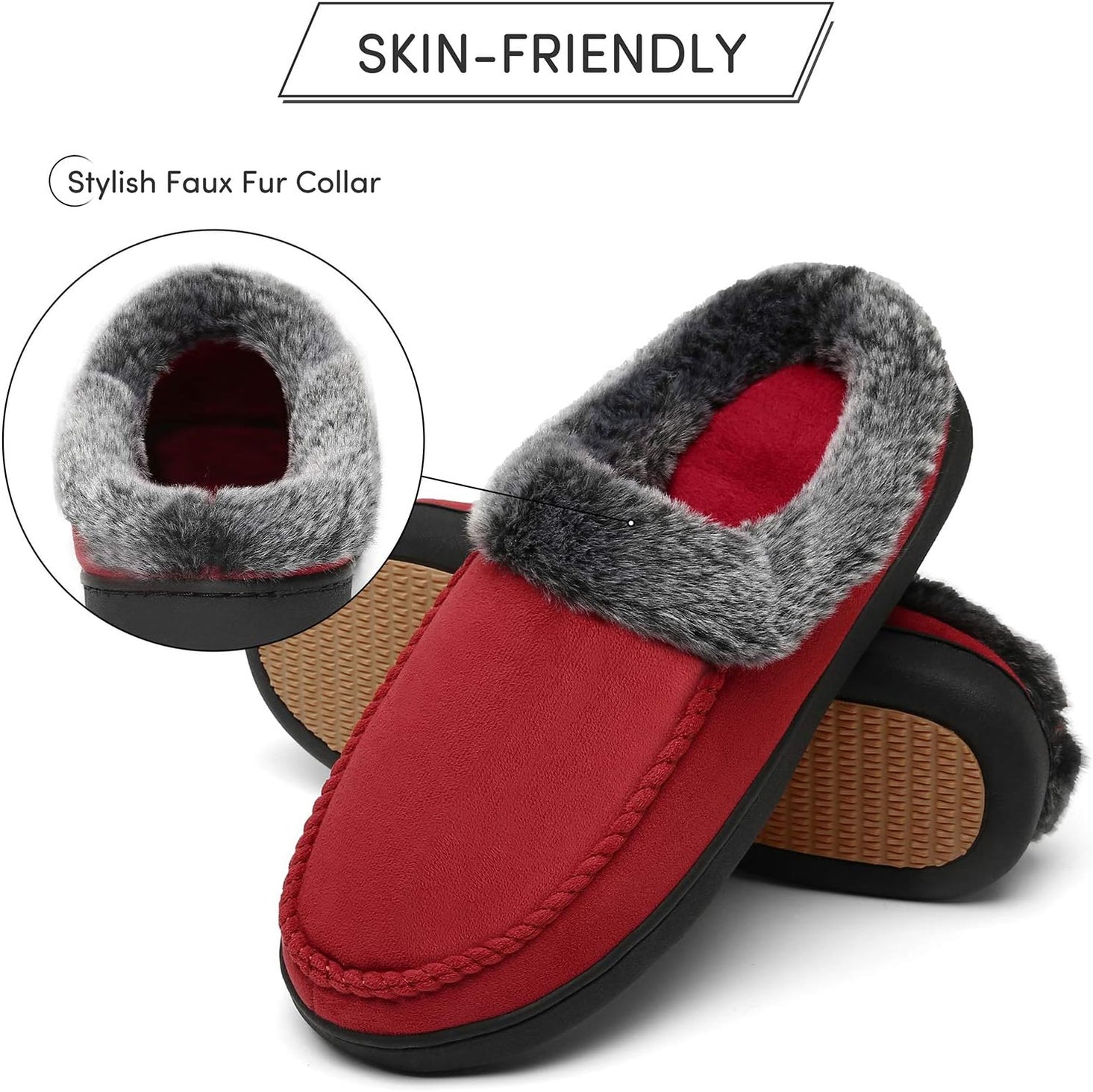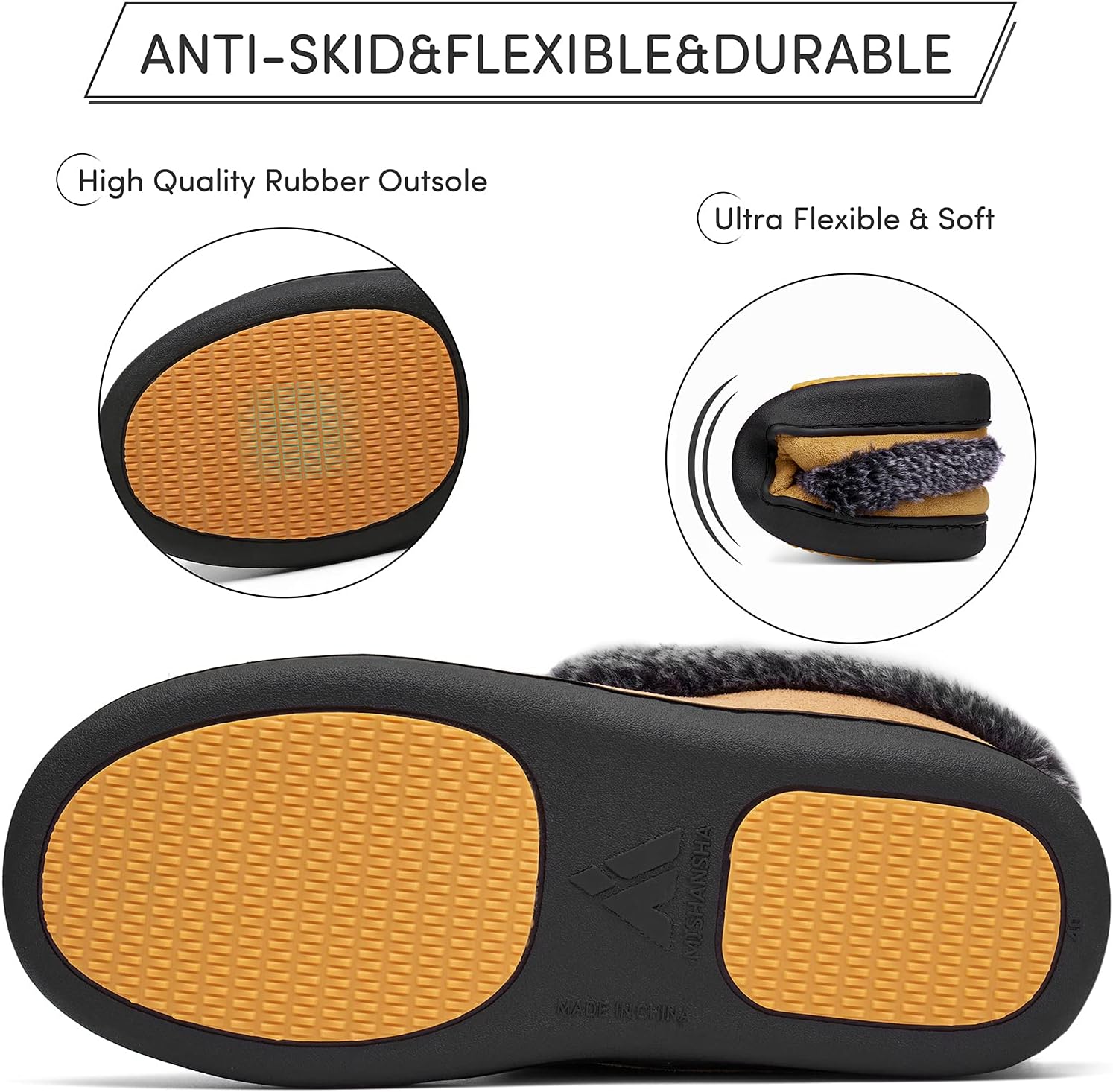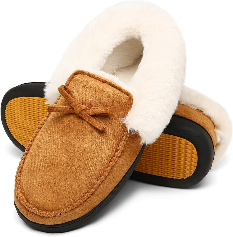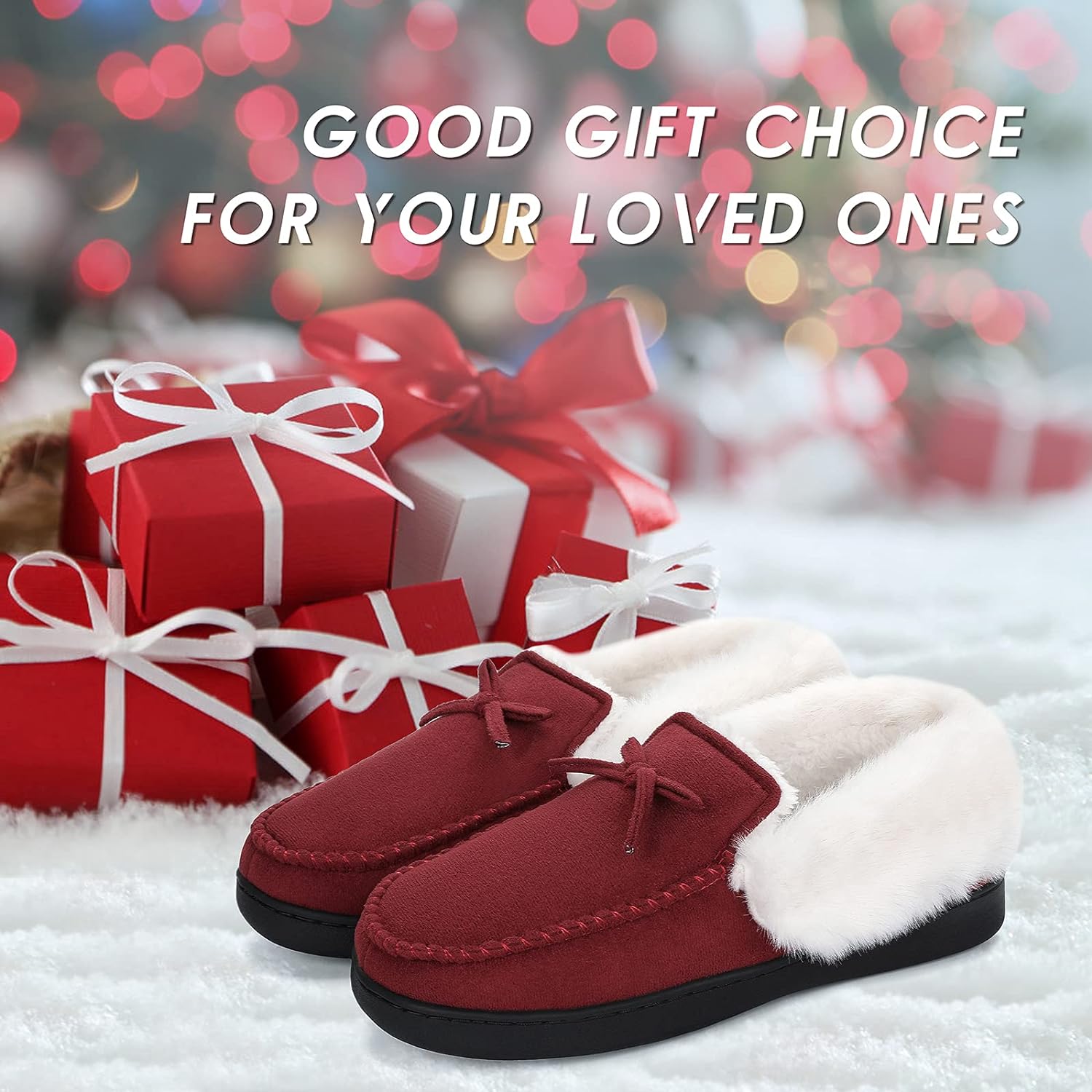 Mishansha Womens Comfy Moccasin Slippers Fuzzy Warm Fleece Lining House Shoes with Anti-Skid Indoor/Outdoor Rubber Sole