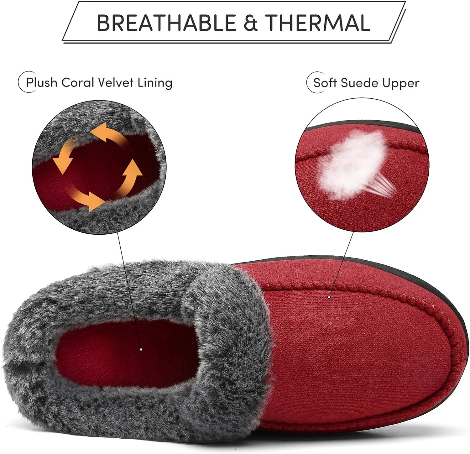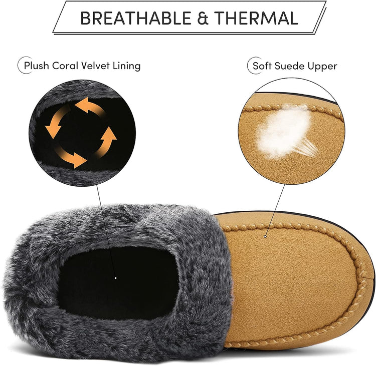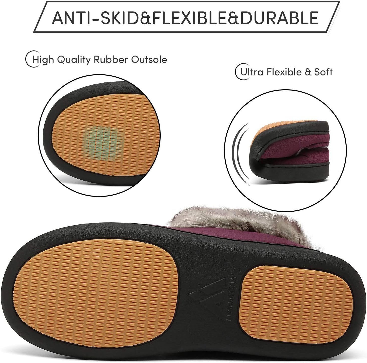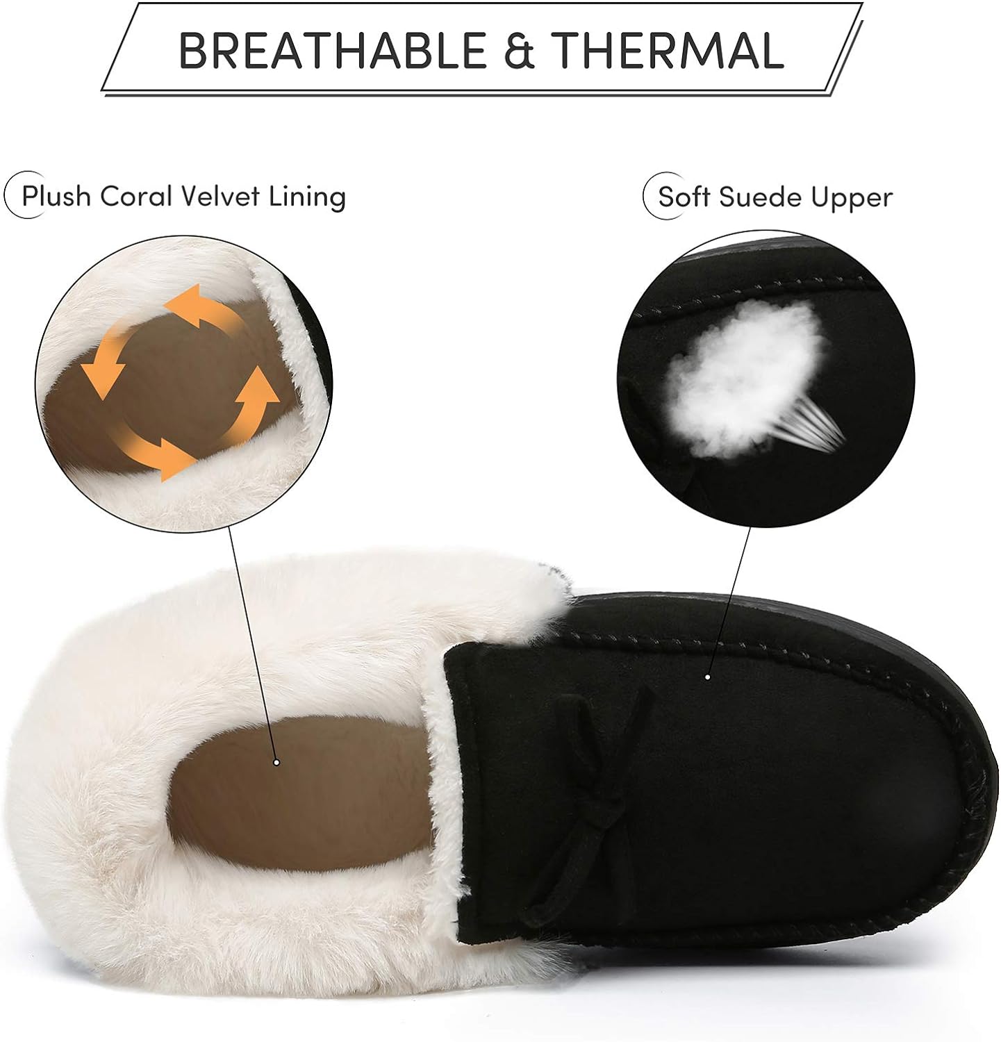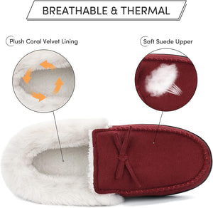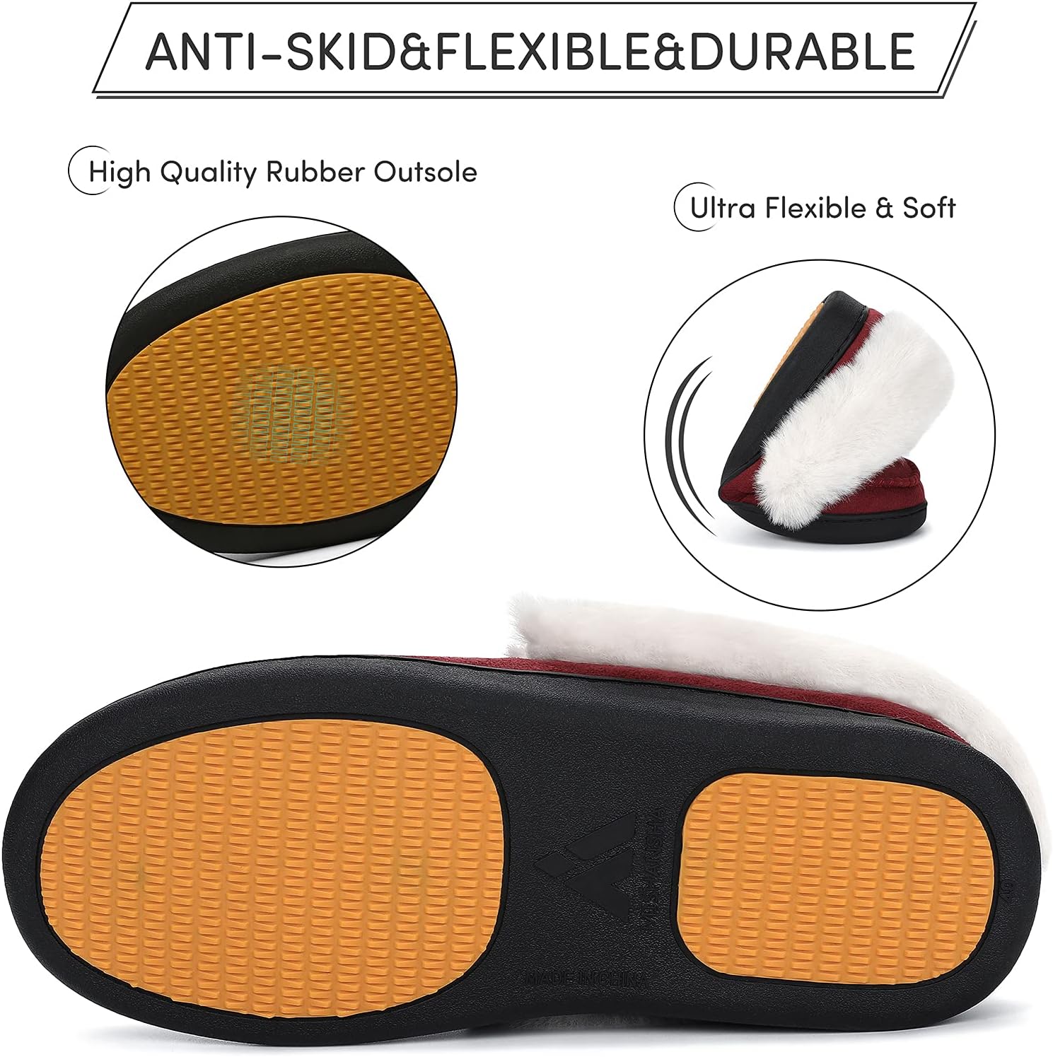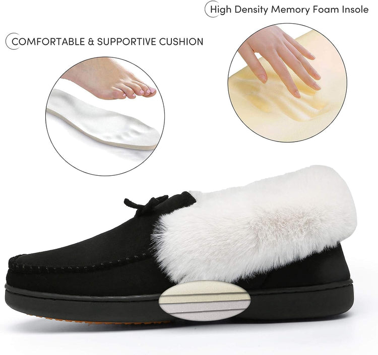 Mishansha Womens Comfy Moccasin Slippers Fuzzy Warm Fleece Lining House Shoes with Anti-Skid Indoor/Outdoor Rubber Sole