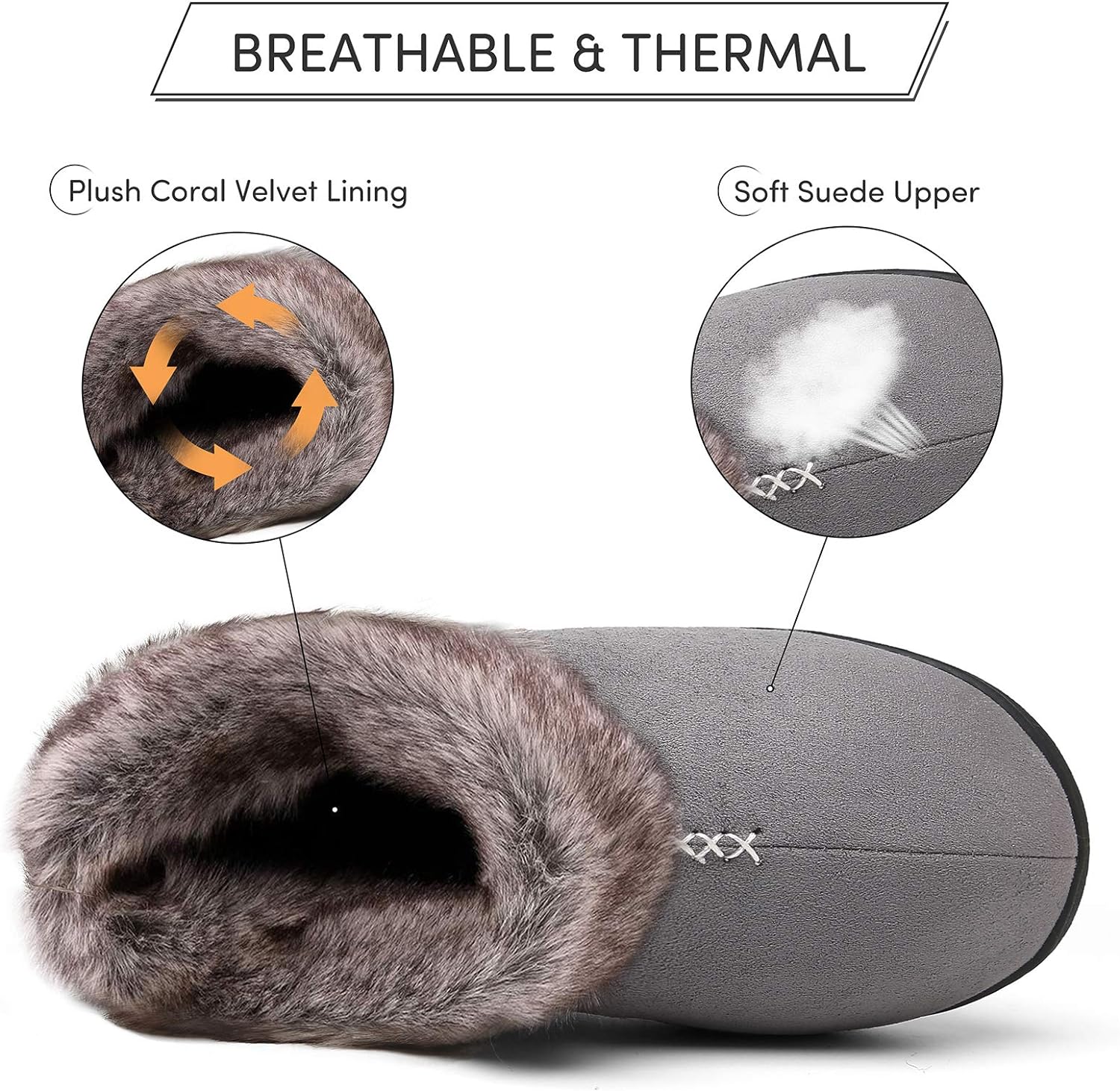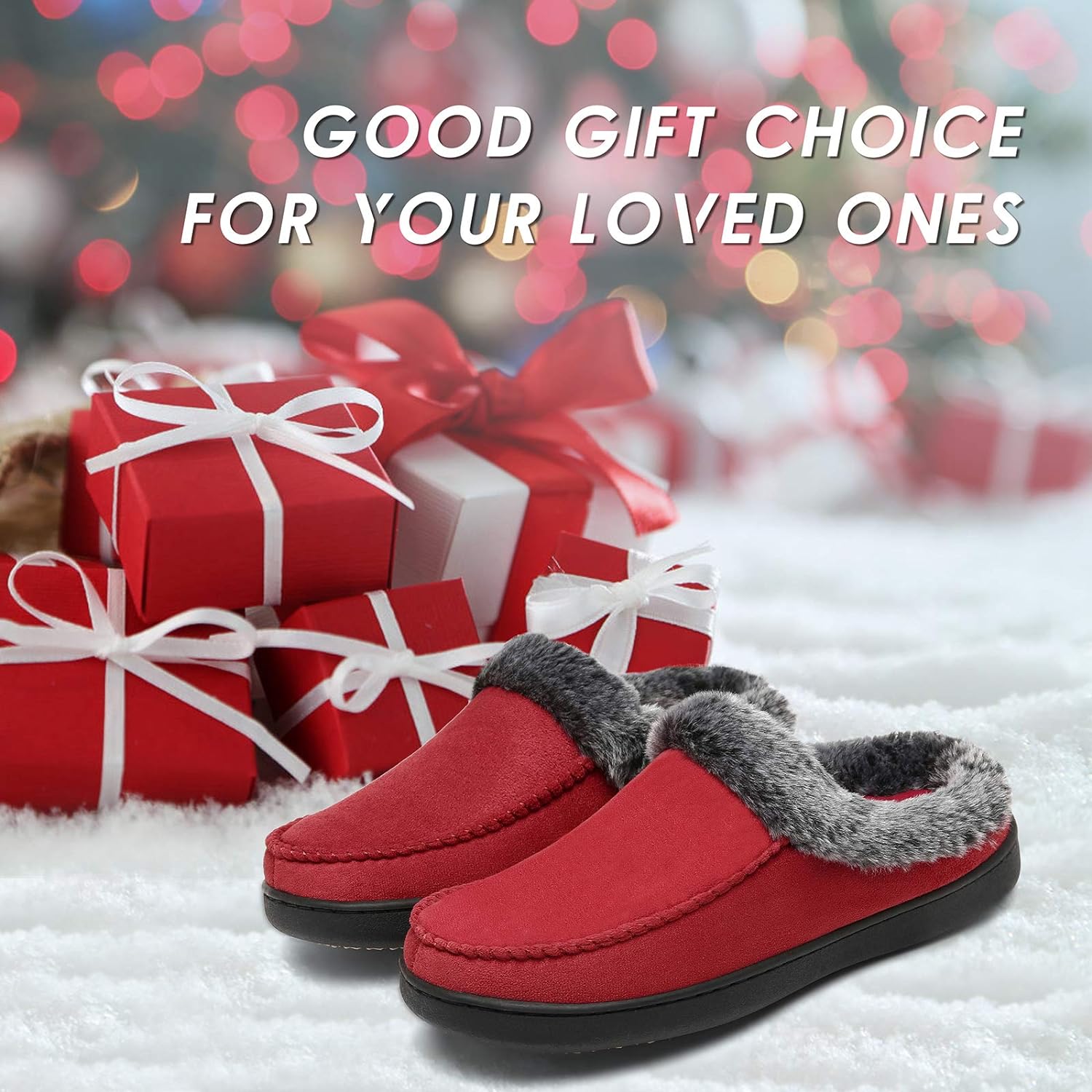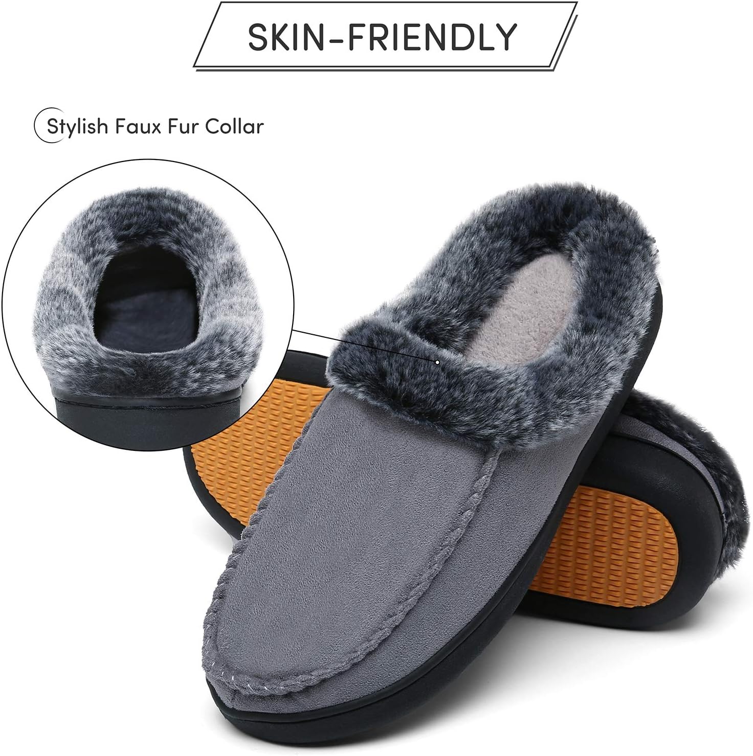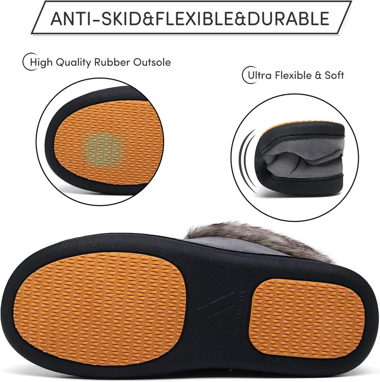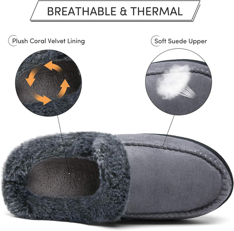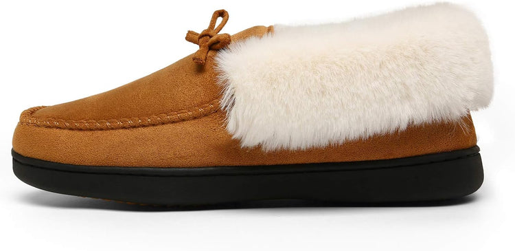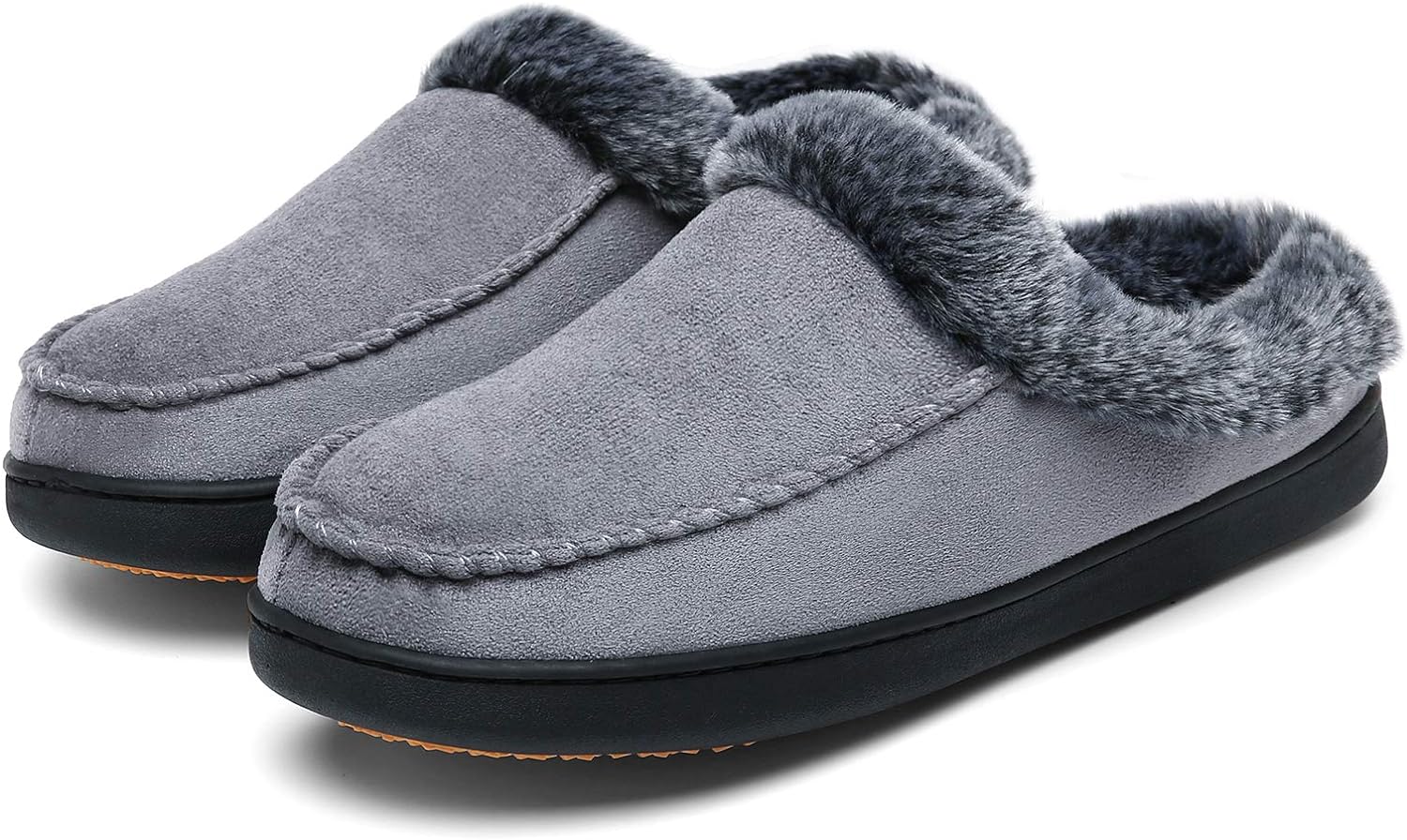Mishansha Womens Comfy Moccasin Slippers Fuzzy Warm Fleece Lining House Shoes with Anti-Skid Indoor/Outdoor Rubber Sole