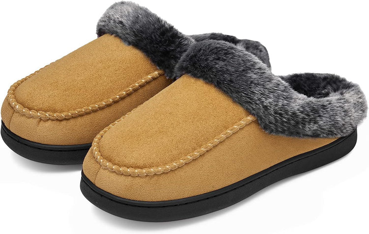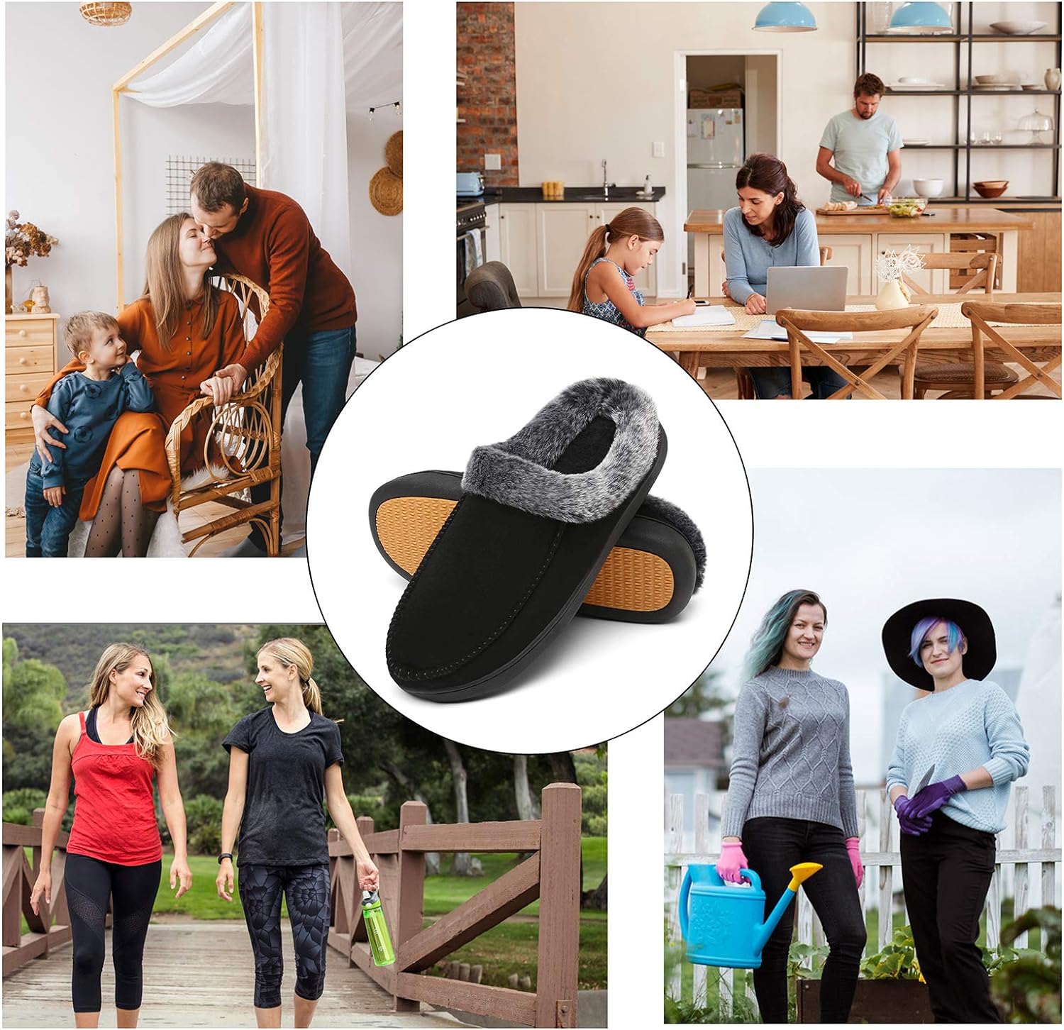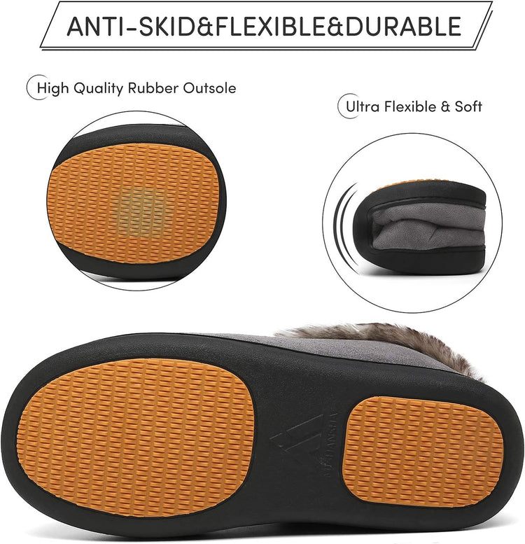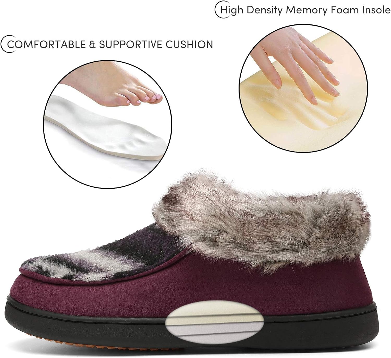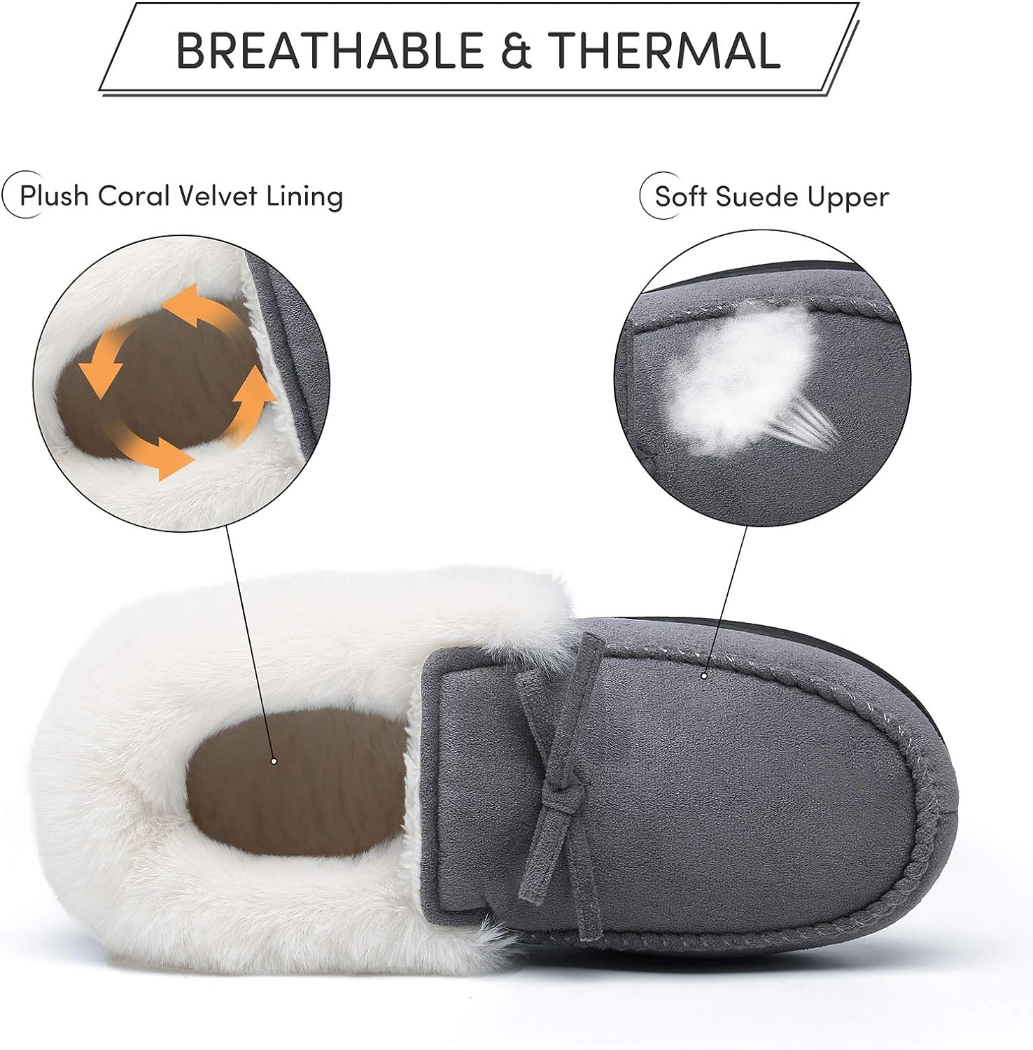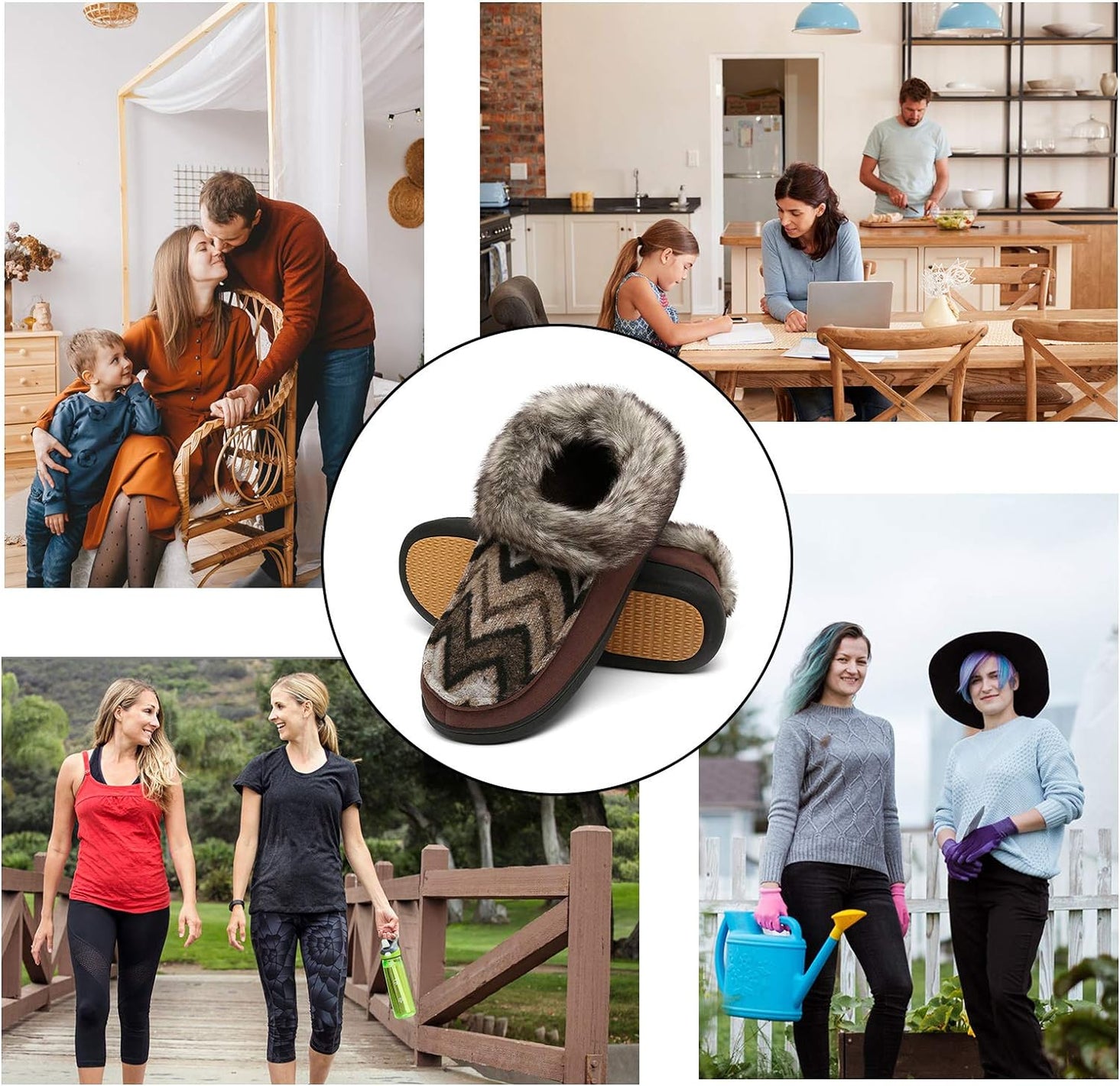 Mishansha Womens Comfy Moccasin Slippers Fuzzy Warm Fleece Lining House Shoes with Anti-Skid Indoor/Outdoor Rubber Sole
