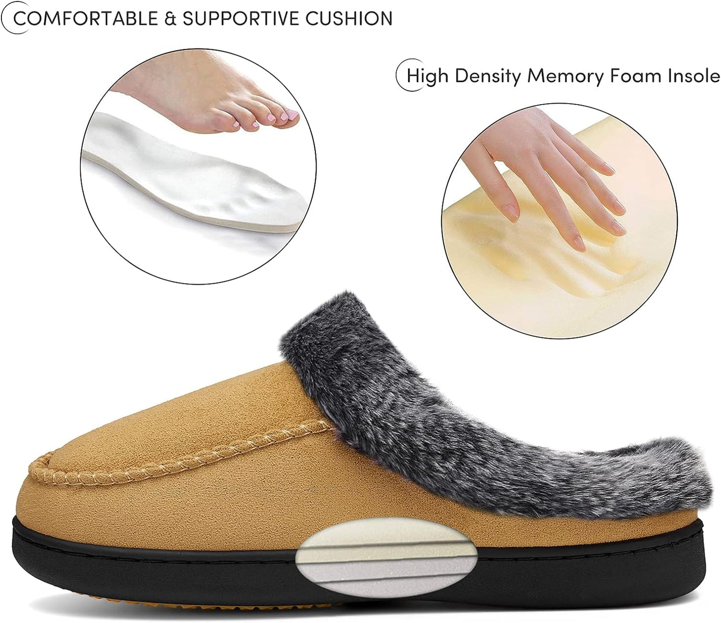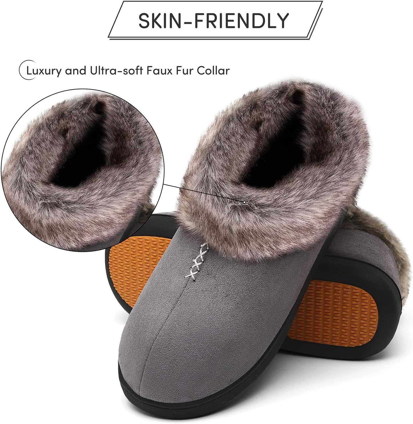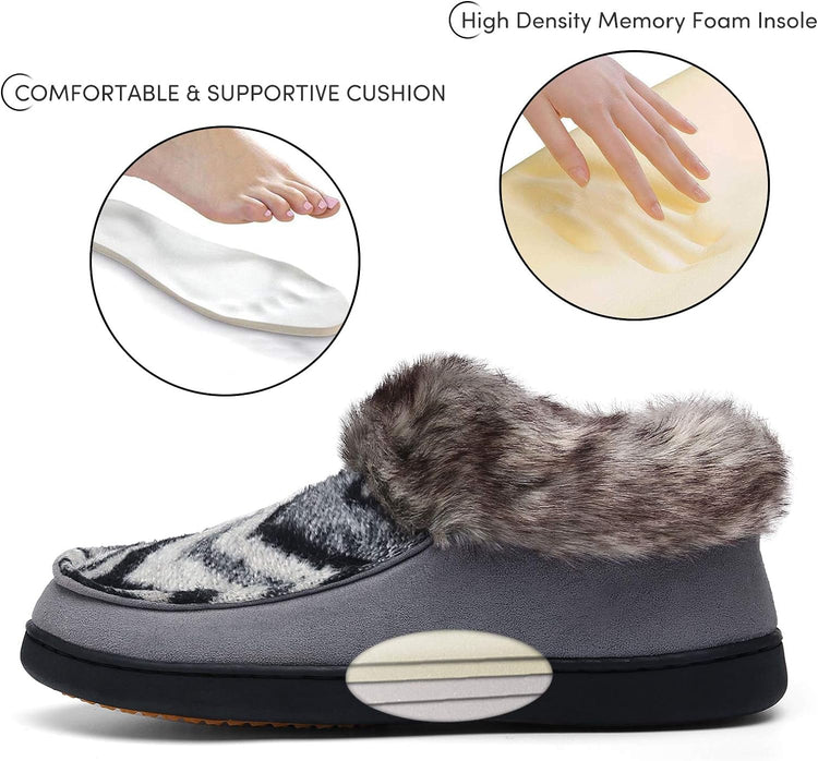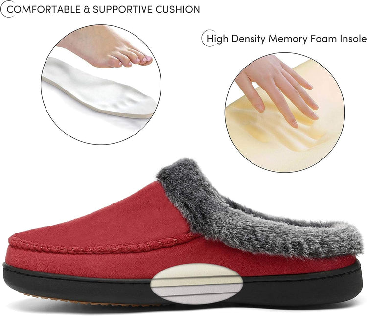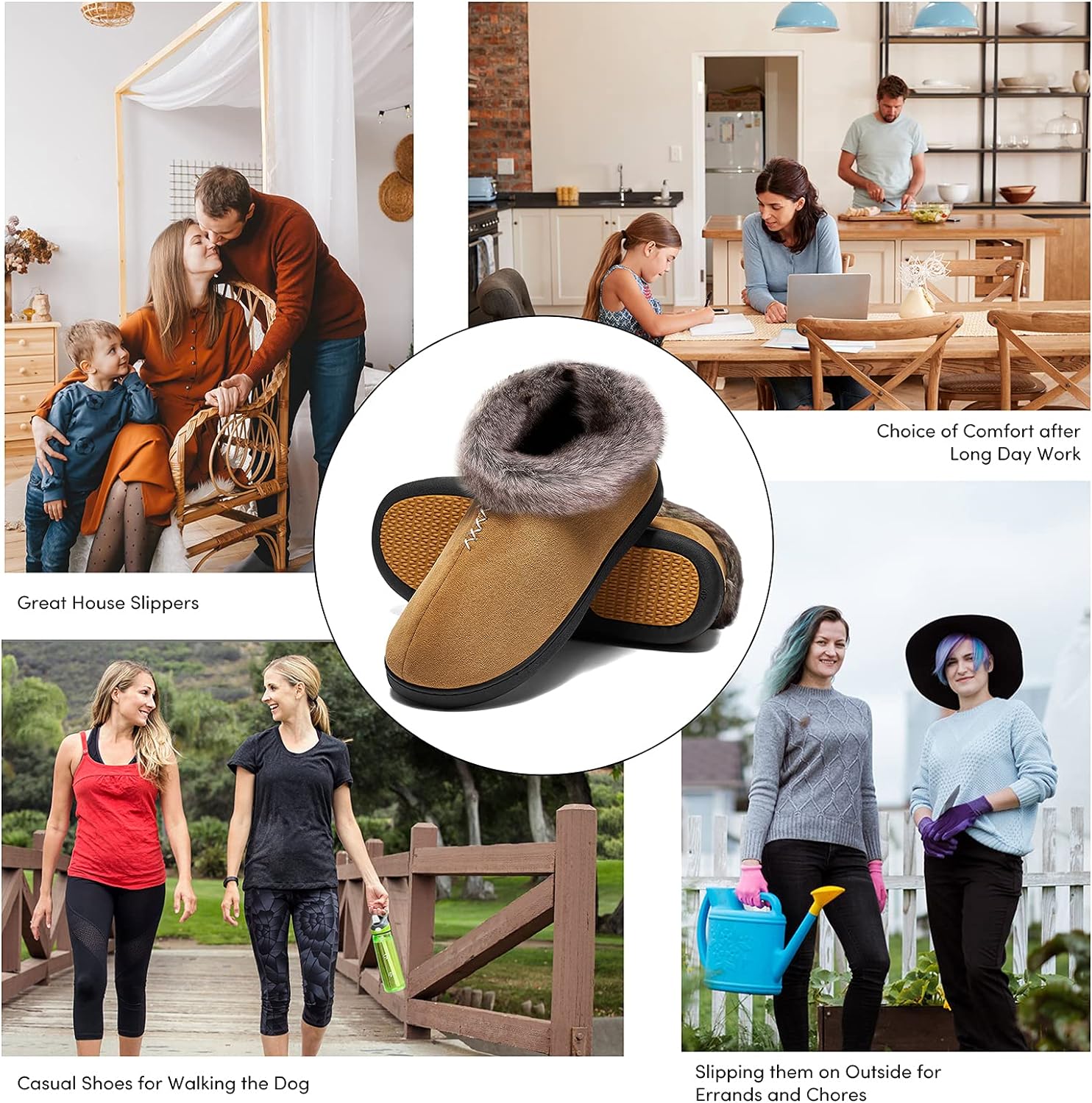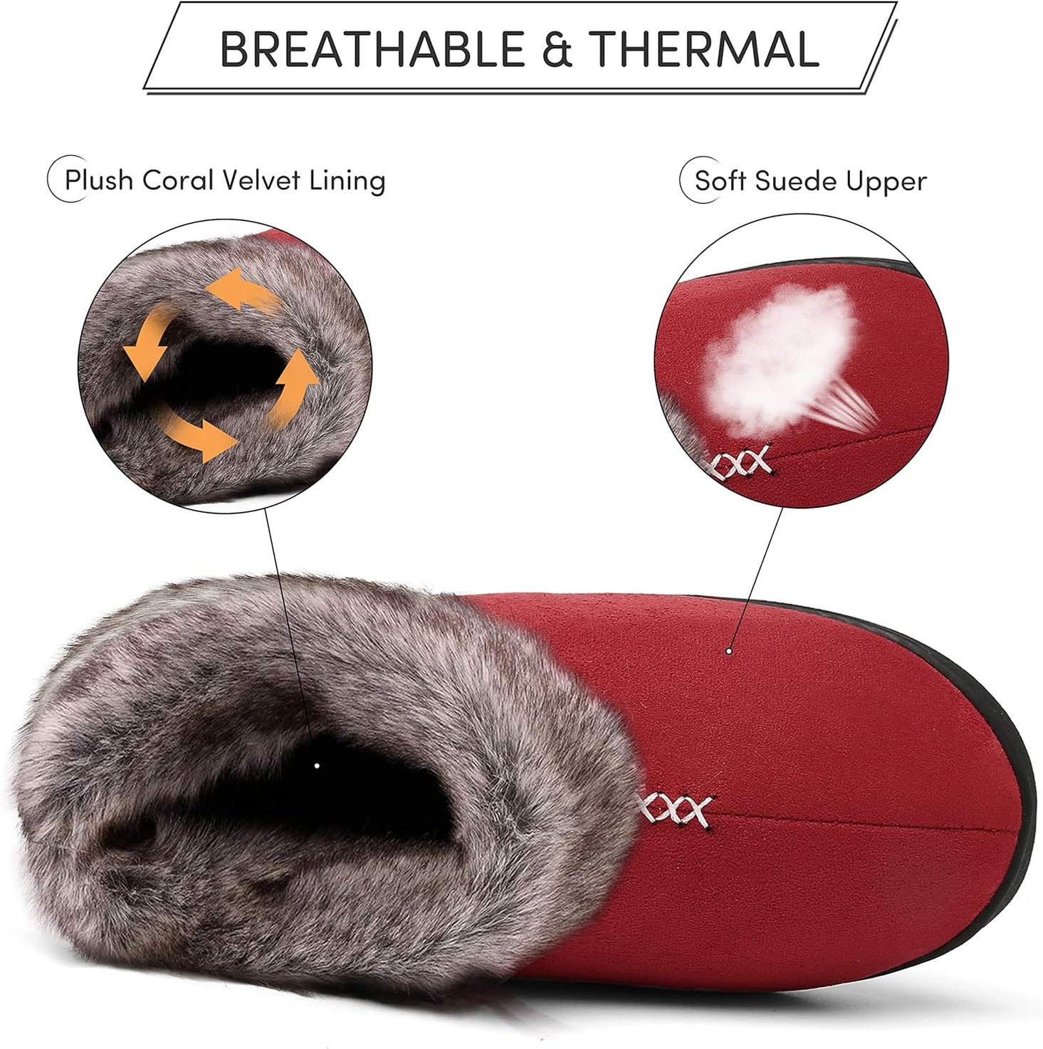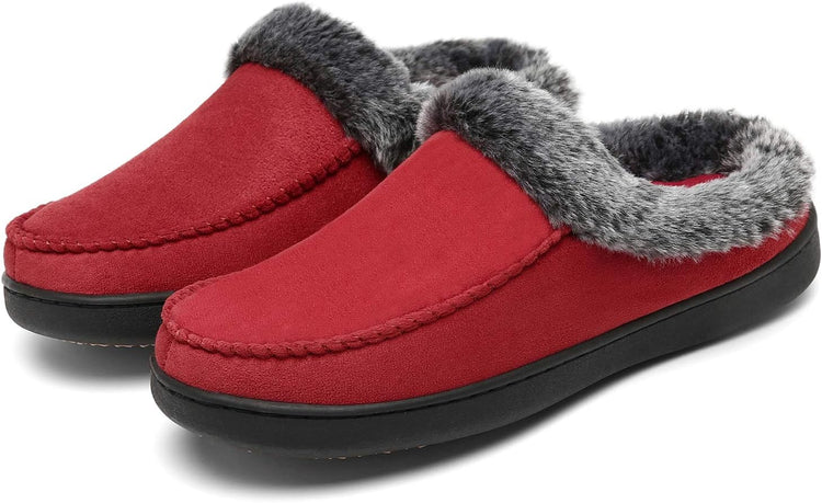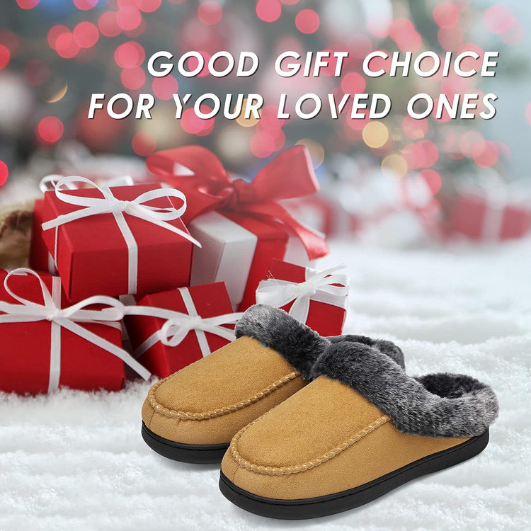 Mishansha Womens Comfy Moccasin Slippers Fuzzy Warm Fleece Lining House Shoes with Anti-Skid Indoor/Outdoor Rubber Sole
