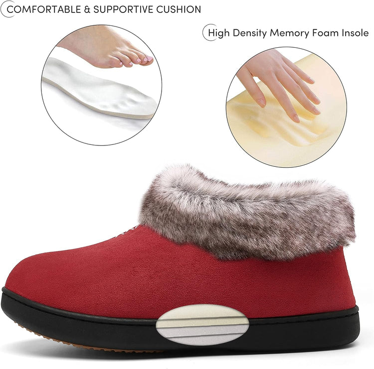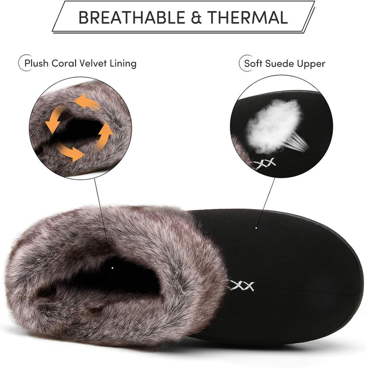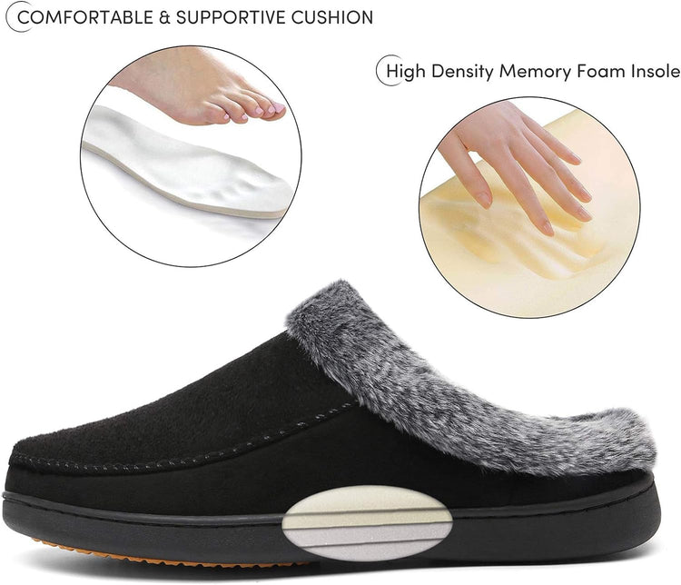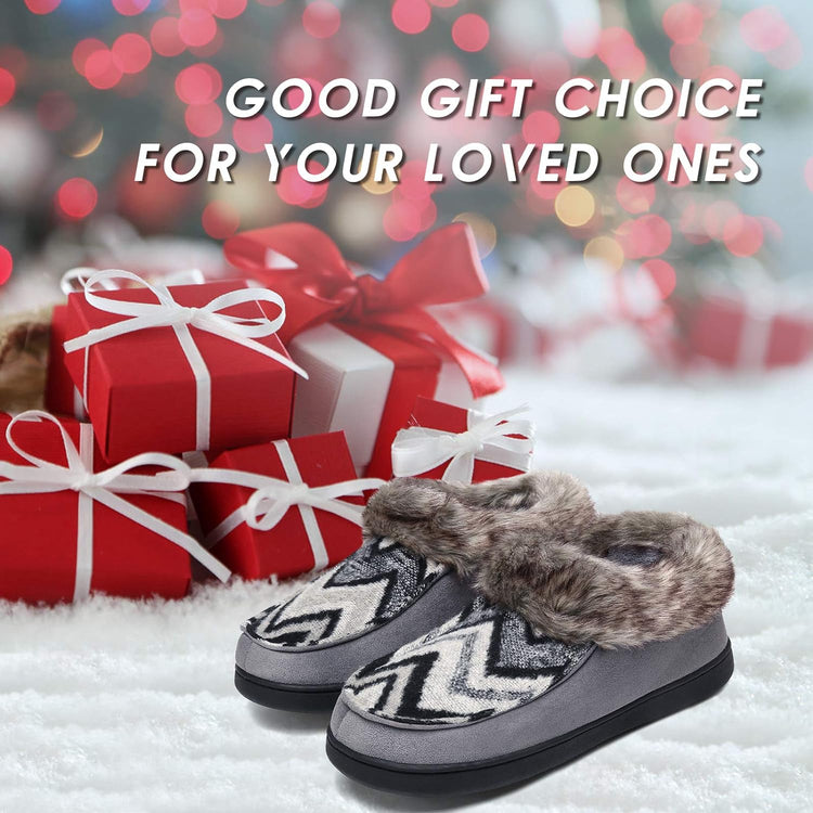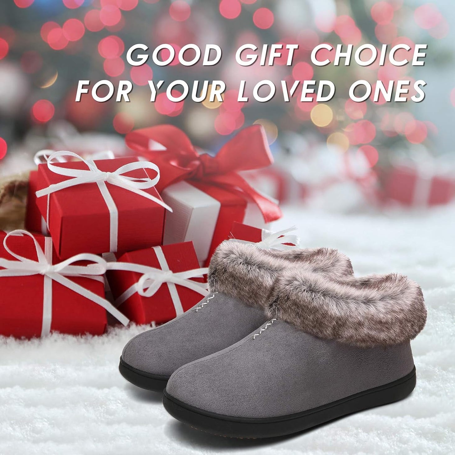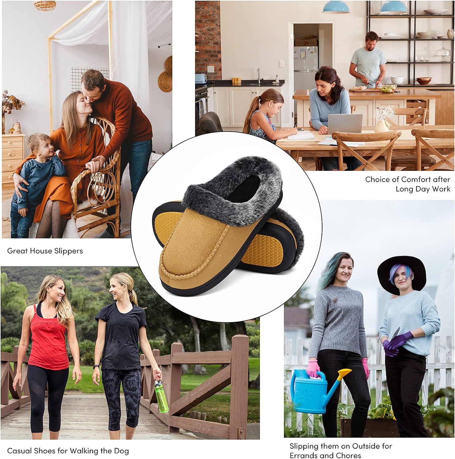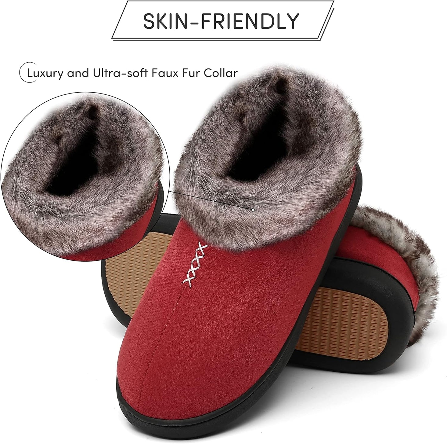 Mishansha Womens Comfy Moccasin Slippers Fuzzy Warm Fleece Lining House Shoes with Anti-Skid Indoor/Outdoor Rubber Sole