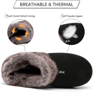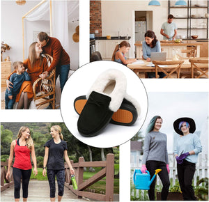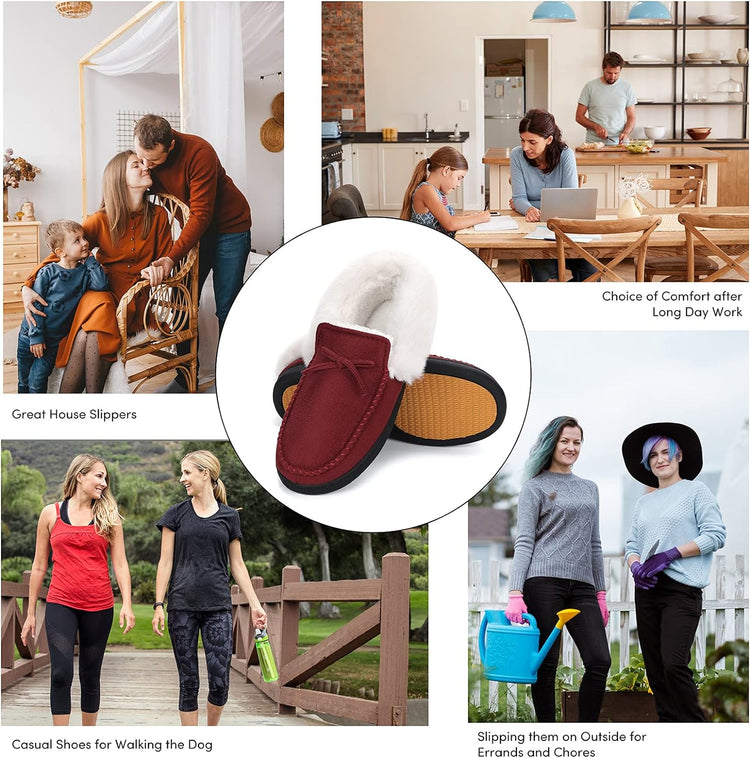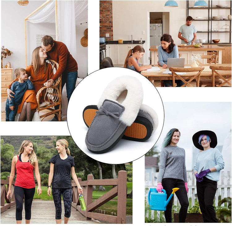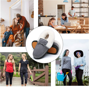 Being indoor and outdoor friendly, no matter you lay on sofa, go bathroom, cook, or garden the flower, go shopping, fetch the mail, walk with dog, these suede moccasin slippers keep you comfortable and warm.