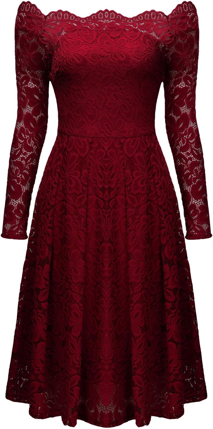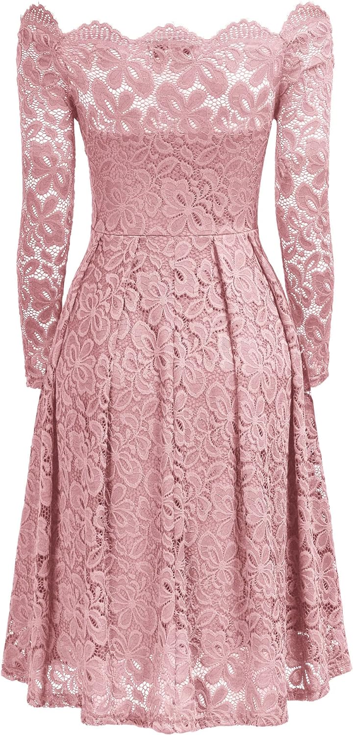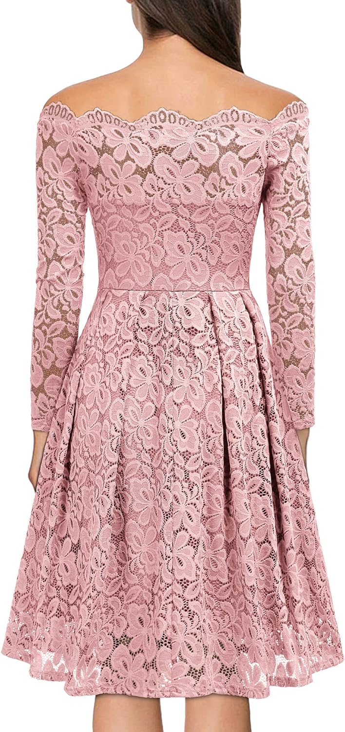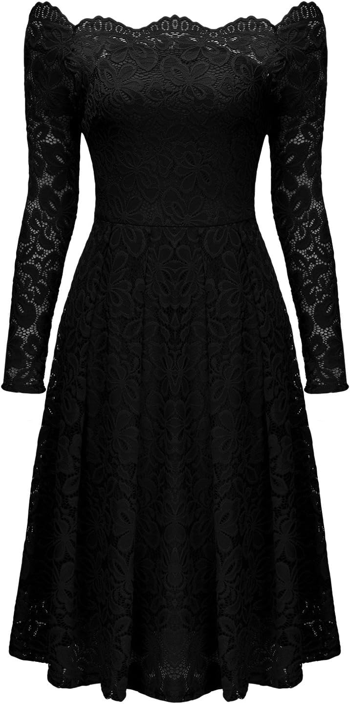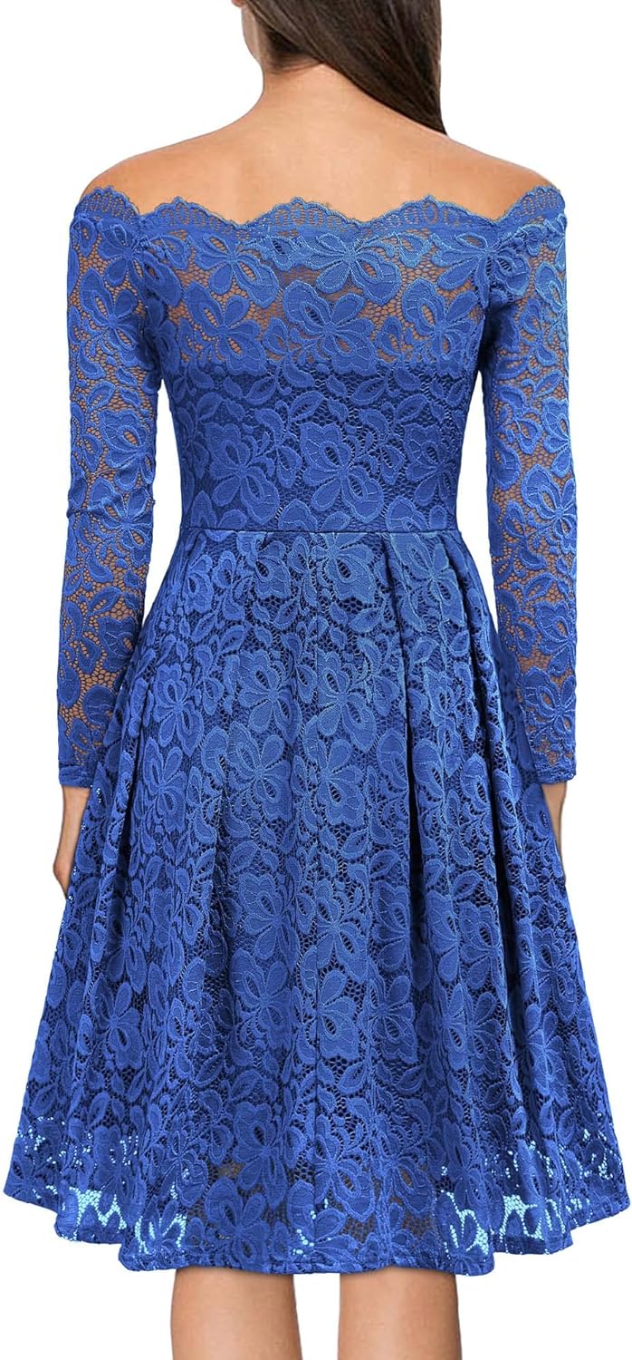 MISSMAY Women's Vintage Floral Lace Long Sleeve Boat Neck Cocktail Party Swing Dress