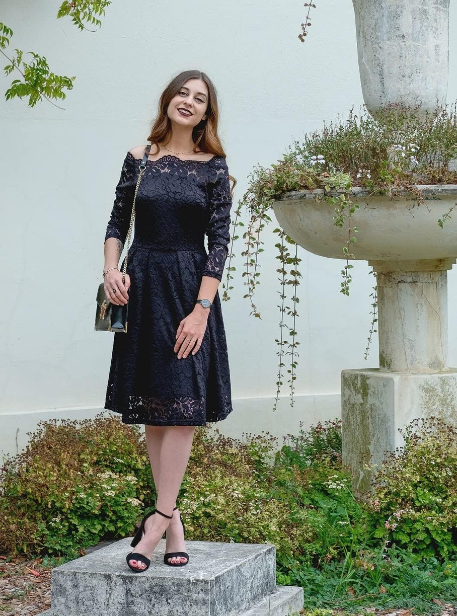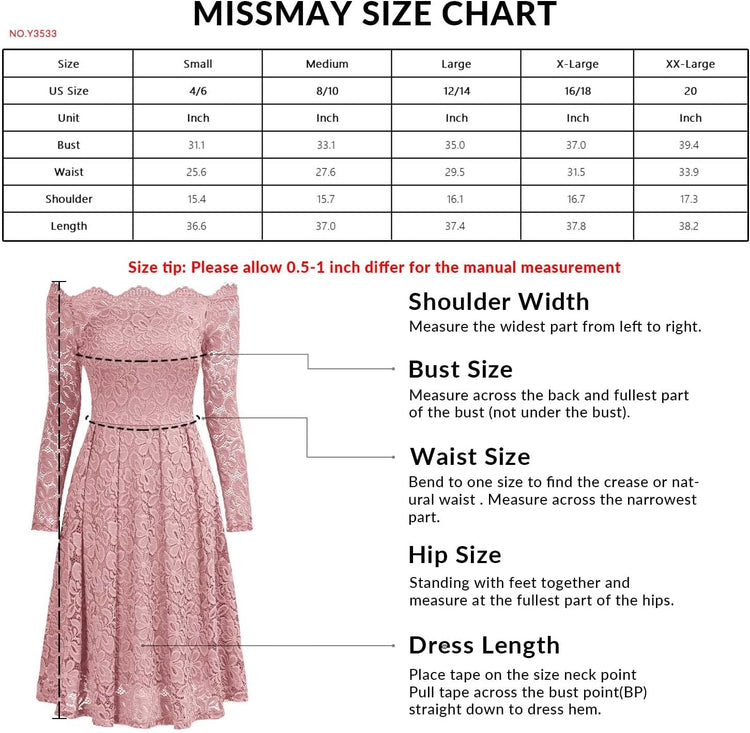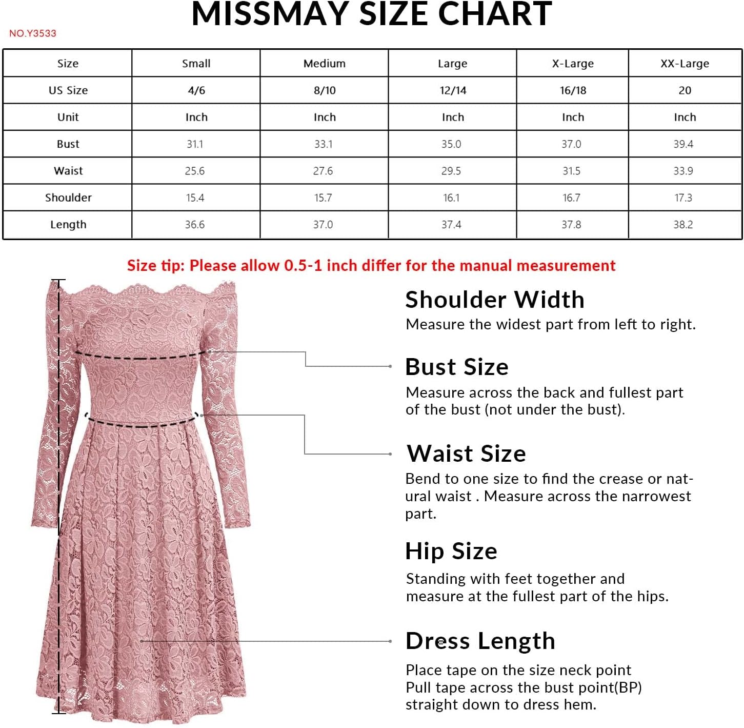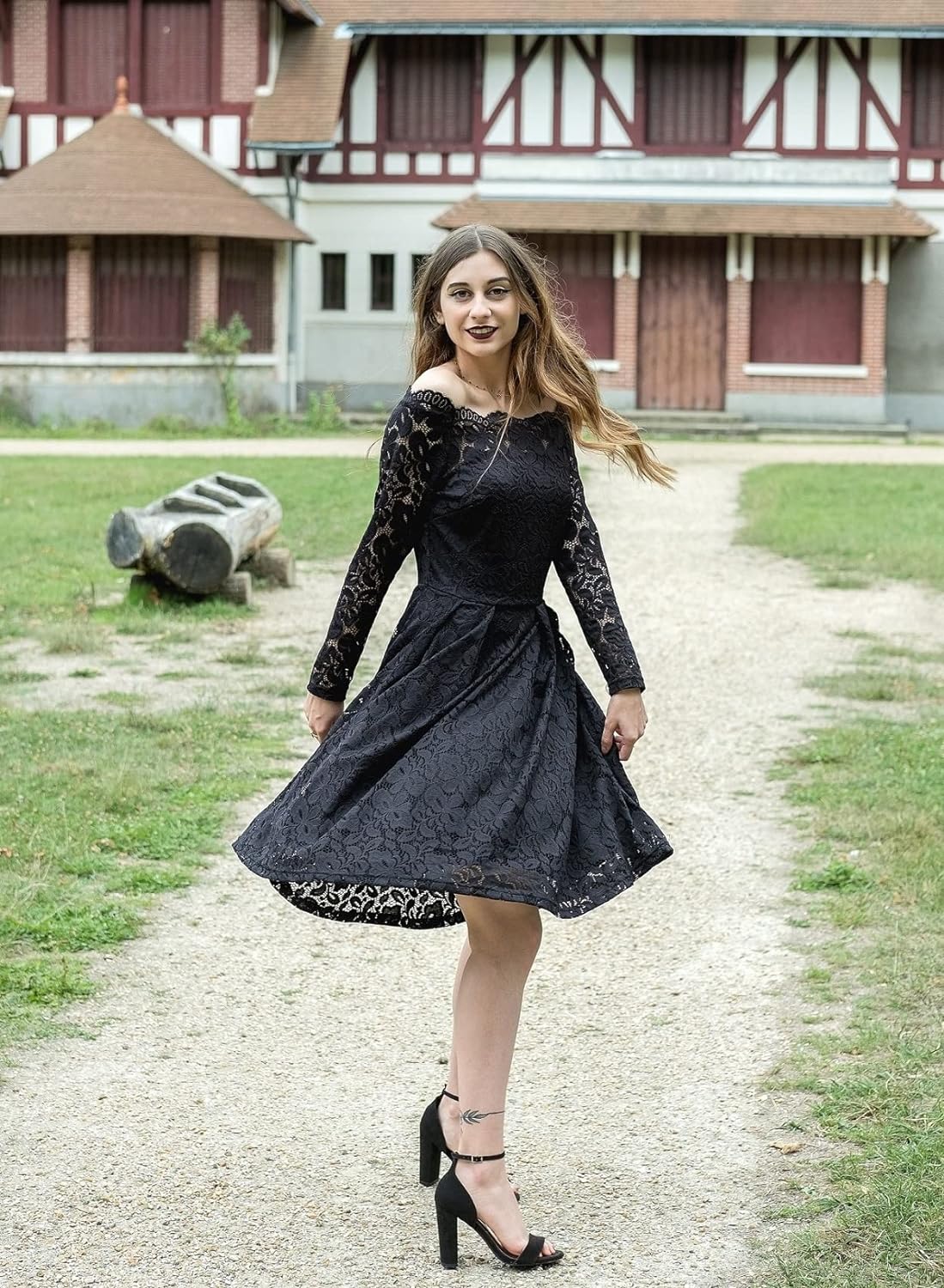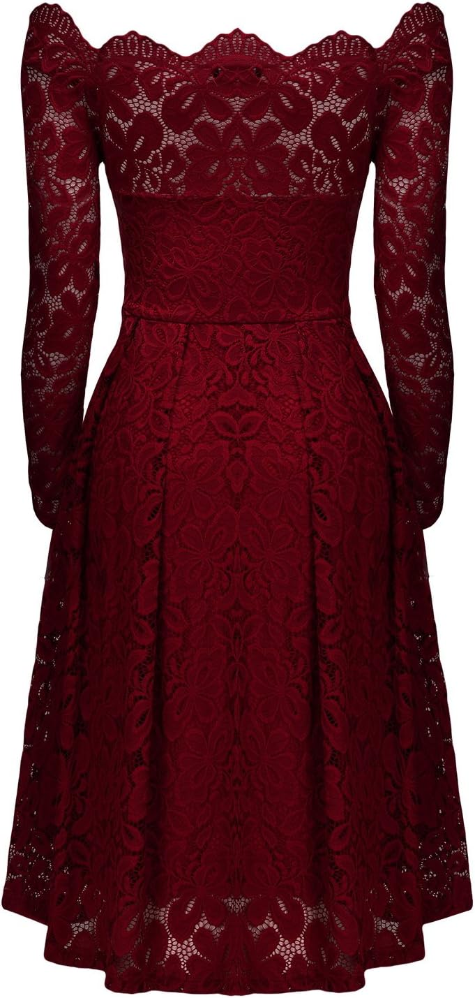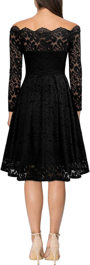 MISSMAY Women's Vintage Floral Lace Long Sleeve Boat Neck Cocktail Party Swing Dress