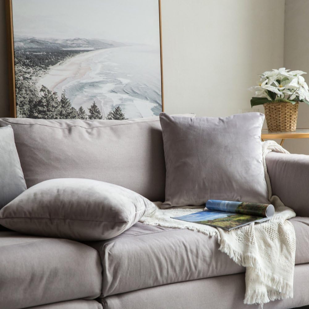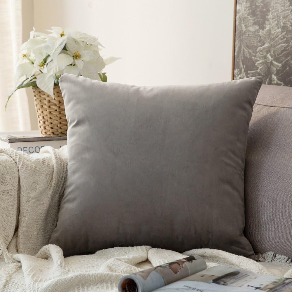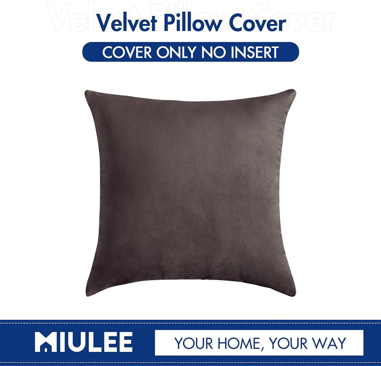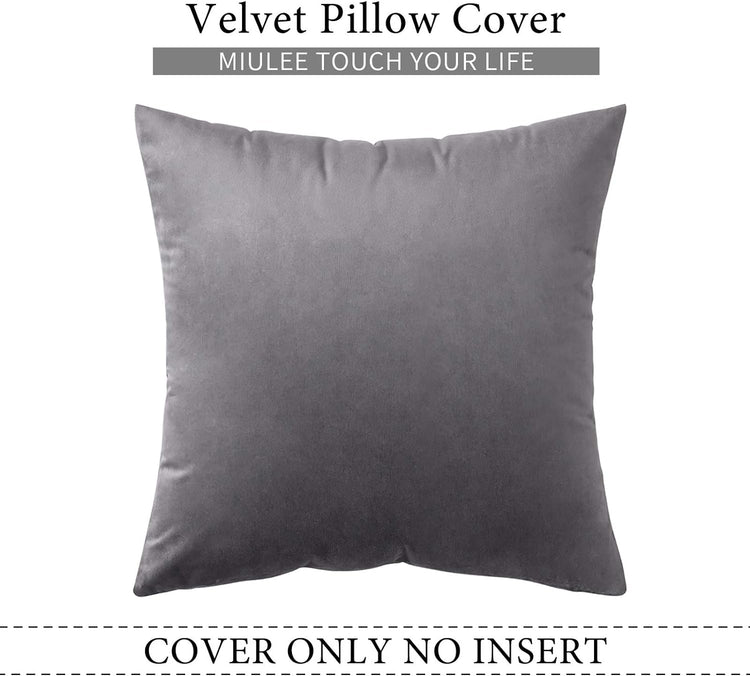 MIULEE Velvet Pillow Cover Decorative Square Pillowcase Soft Solid Cushion Case for Sofa Bedroom Car 16 x 16 Inch Dark Grey